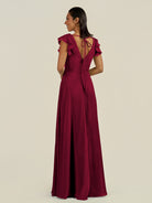 Orlina | Berry - A Line Chiffon V Neck Long Bridesmaid Dress with Flutter Sleeves