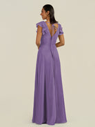 Orlina | Tahiti - A Line Chiffon V Neck Long Bridesmaid Dress with Flutter Sleeves