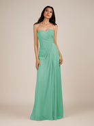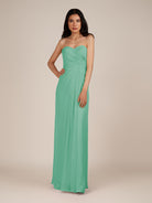 Wanlian | Turquoise - A Line Chiffon Sweetheart Long Bridesmaid Dress with Pleats