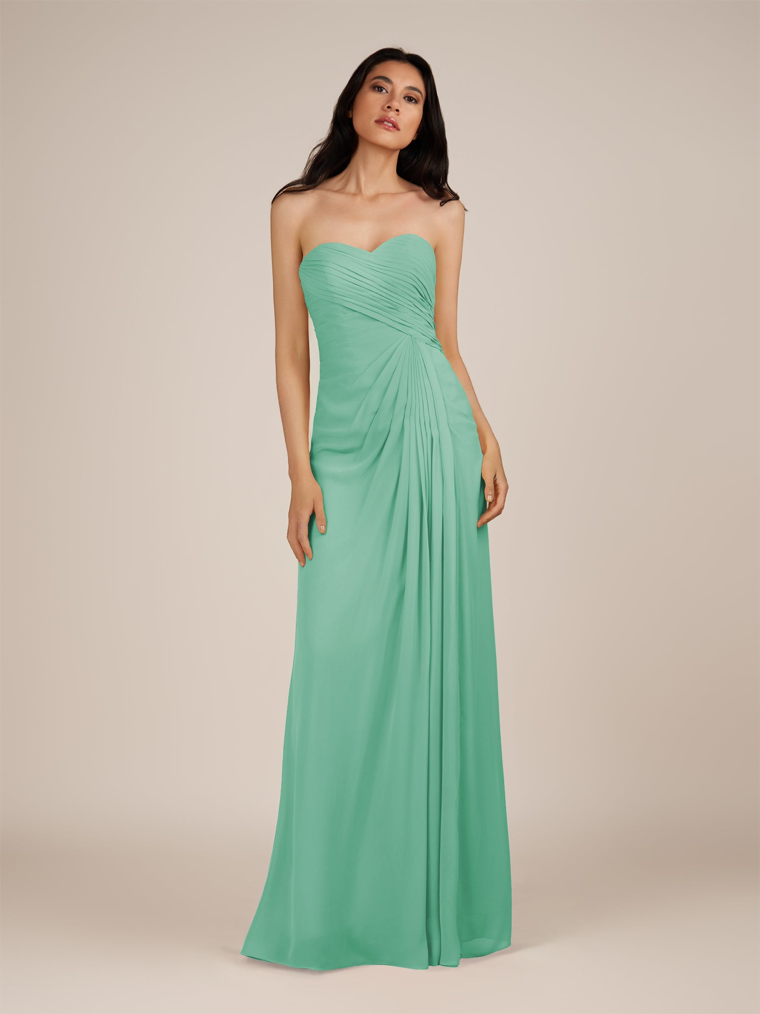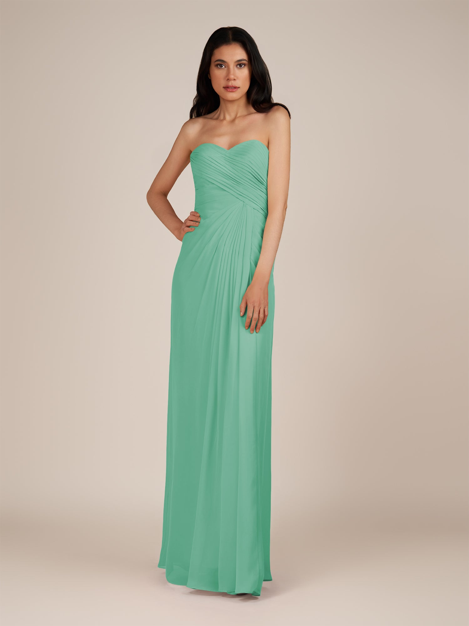 Wanlian is a vibrant and elegant choice for your bridal party. Crafted from soft chiffon, she features a flattering sweetheart neckline and a sleeveless bodice for a timeless, feminine silhouette. Her floor-length A-line skirt flows gracefully with every step, enhanced by delicate pleats that add texture and sophistication. Finished with a smooth zipper back, Wanlian combines classic elegance with modern charm, perfect for weddings and special occasions
