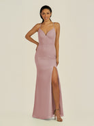 Zeryn | Dusty Rose - Sheath V Neck Chiffon Long Bridesmaid Dress with Slit