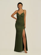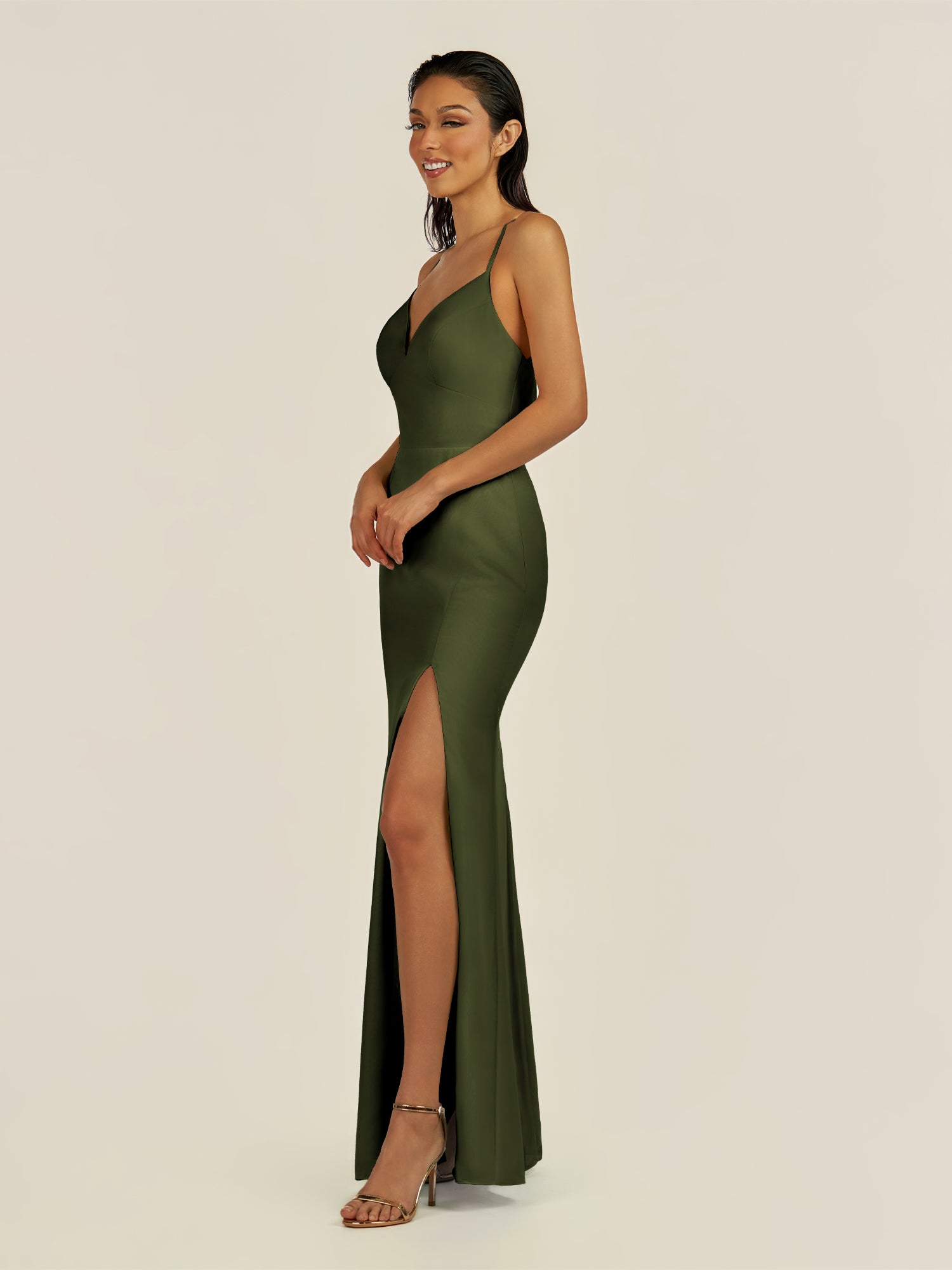 Zeryn | Olive - Sheath V Neck Chiffon Long Bridesmaid Dress with Slit