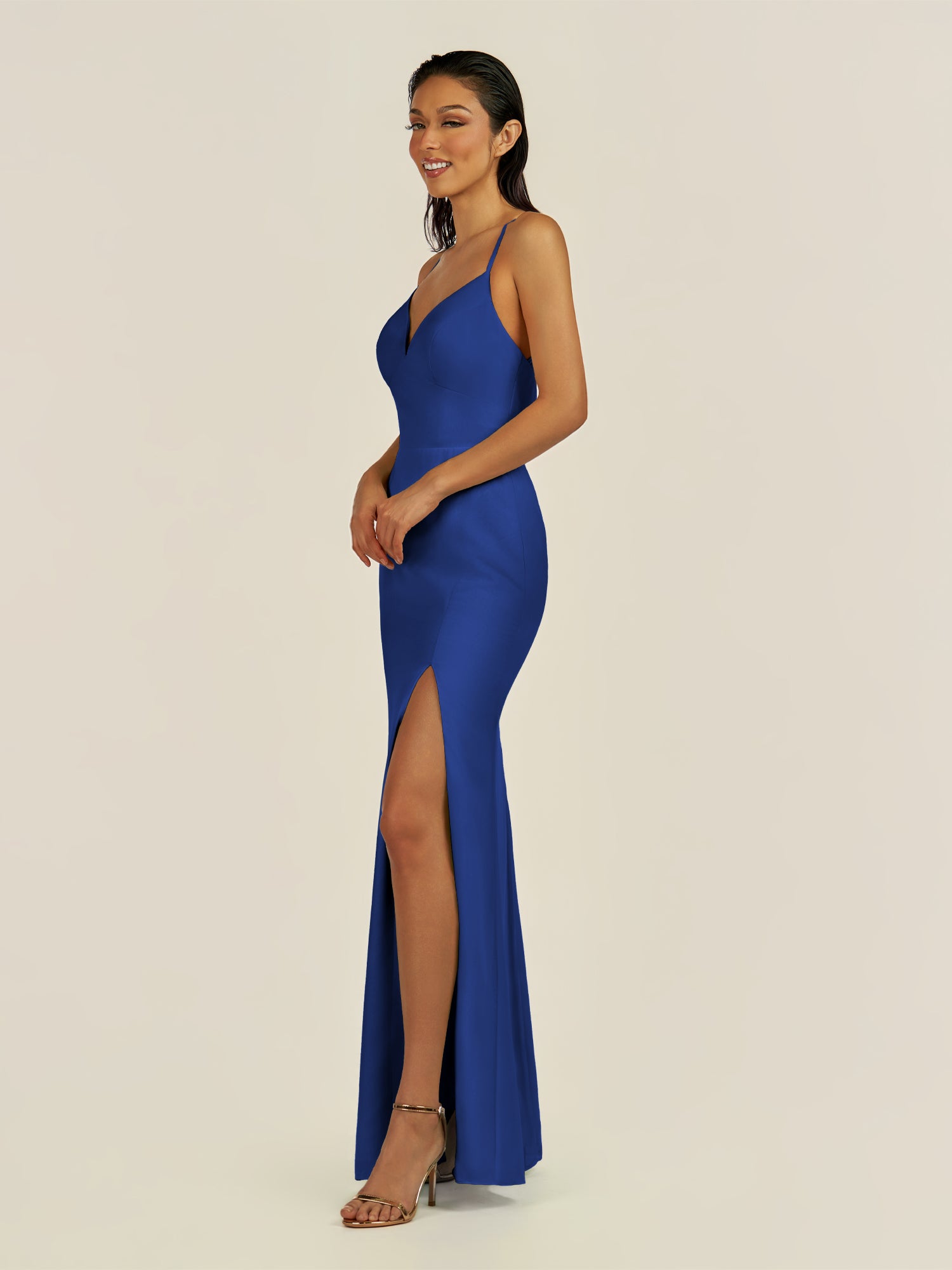 Zeryn is a sleek and elegant choice for your bridal party. Crafted from soft chiffon, she features a flattering V-neckline and a sleeveless bodice that highlights the shoulders with grace. Her floor-length sheath silhouette flows smoothly, enhanced by a subtle side slit for movement and modern sophistication. Finished with a smooth zipper back, Zeryn blends timeless style with contemporary elegance—perfect for weddings and special occasions.