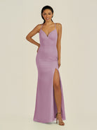 Zeryn | Wisteria - Sheath V Neck Chiffon Long Bridesmaid Dress with Slit