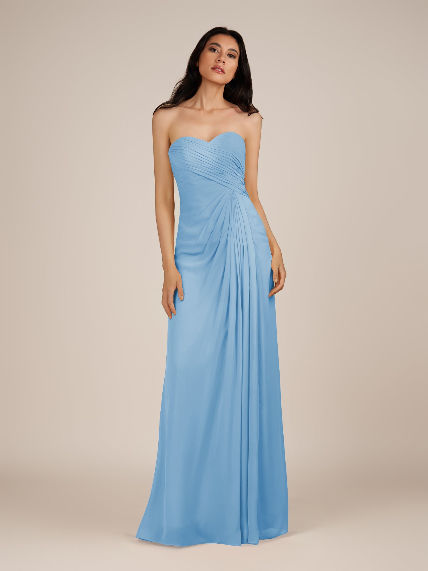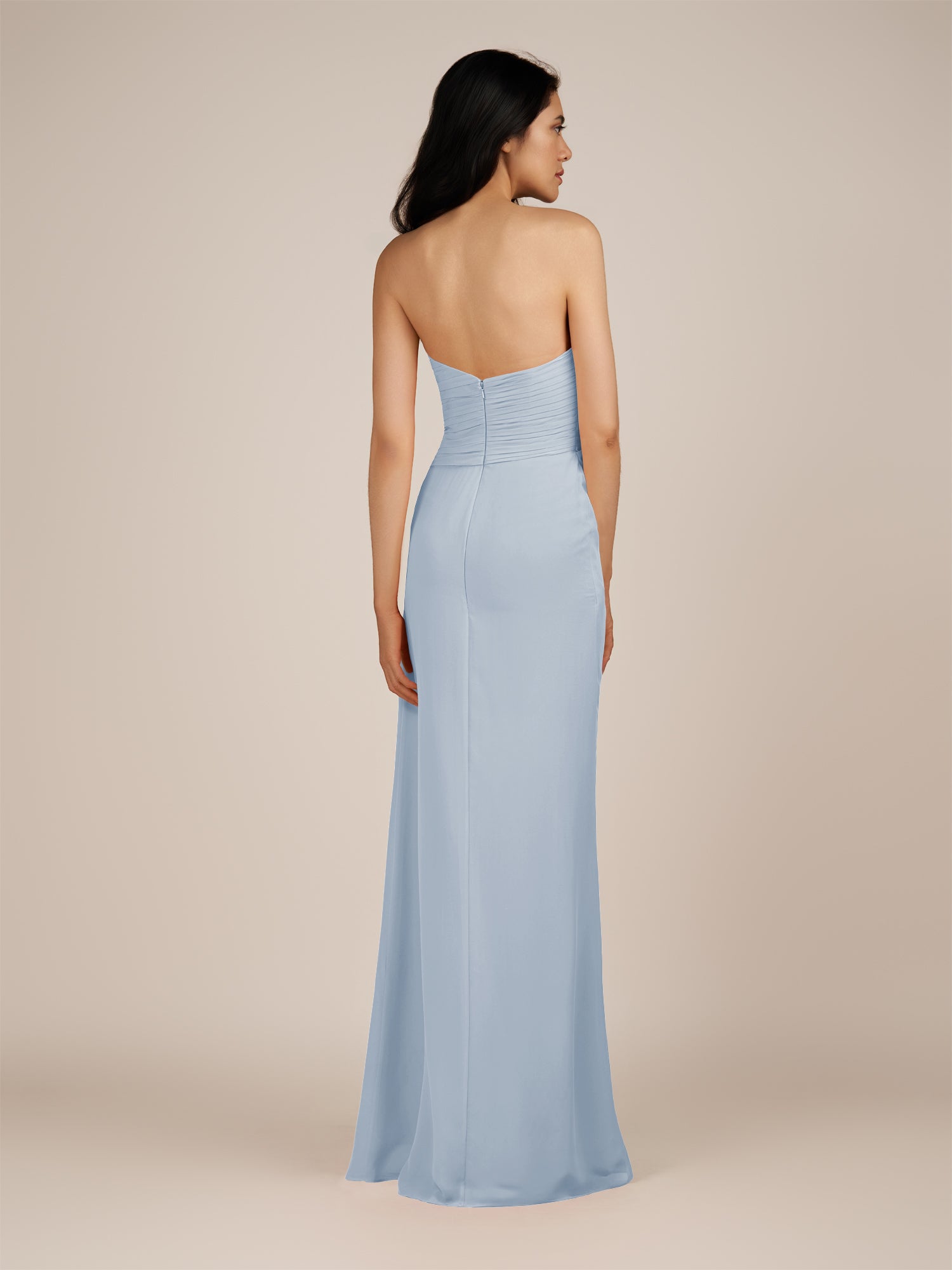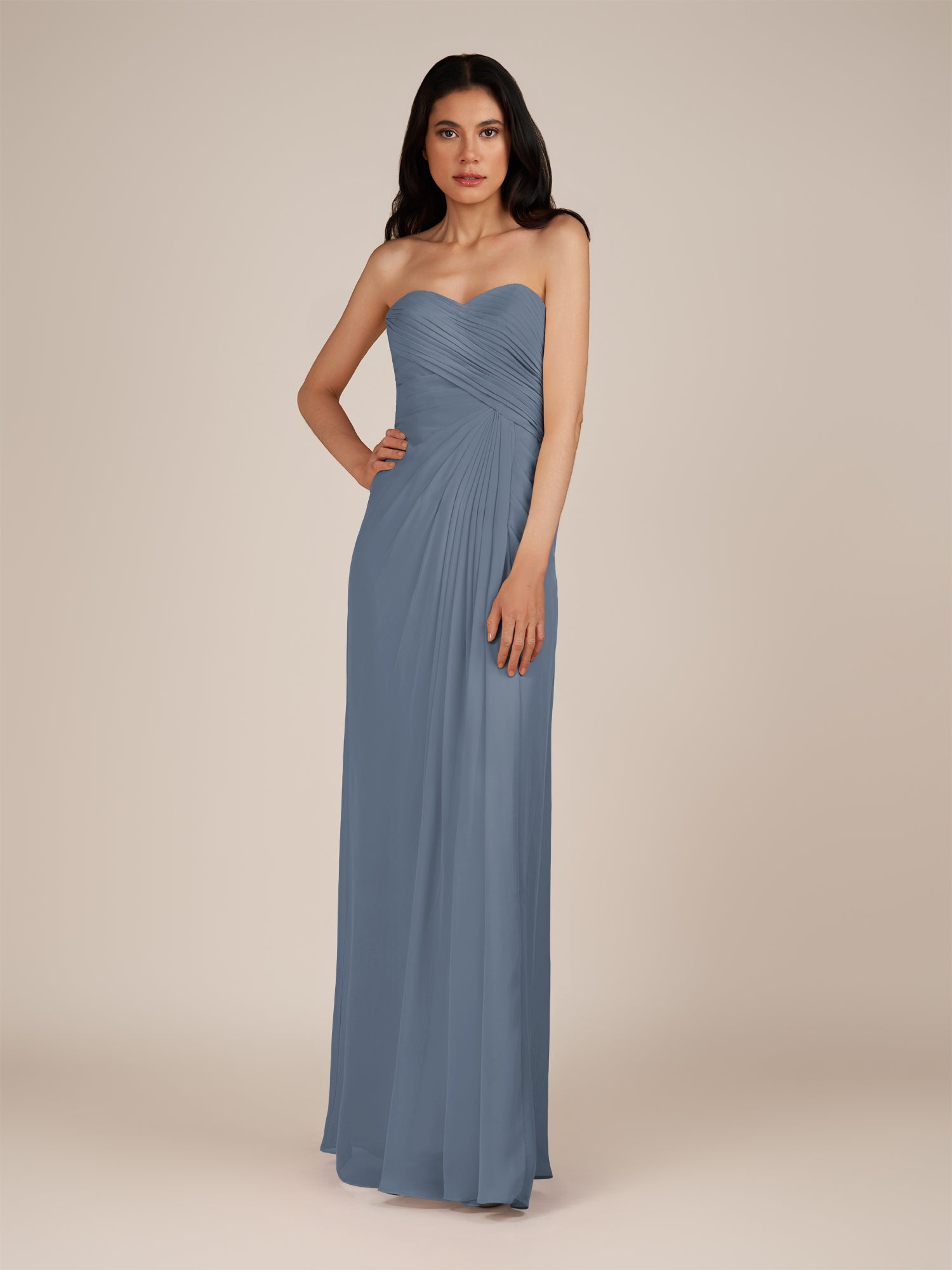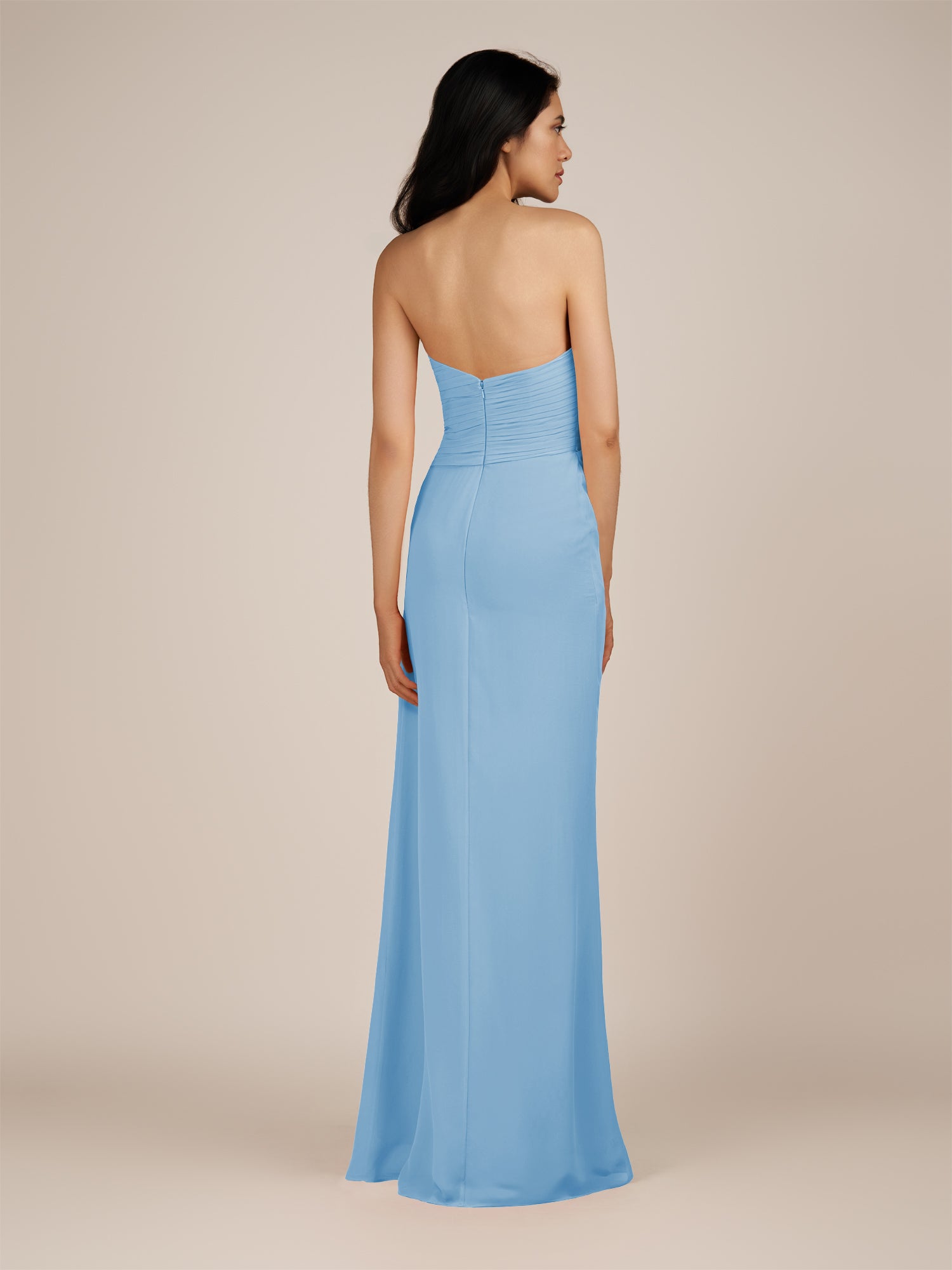 Wanlian | Blue Jay - A Line Chiffon Sweetheart Long Bridesmaid Dress with Pleats