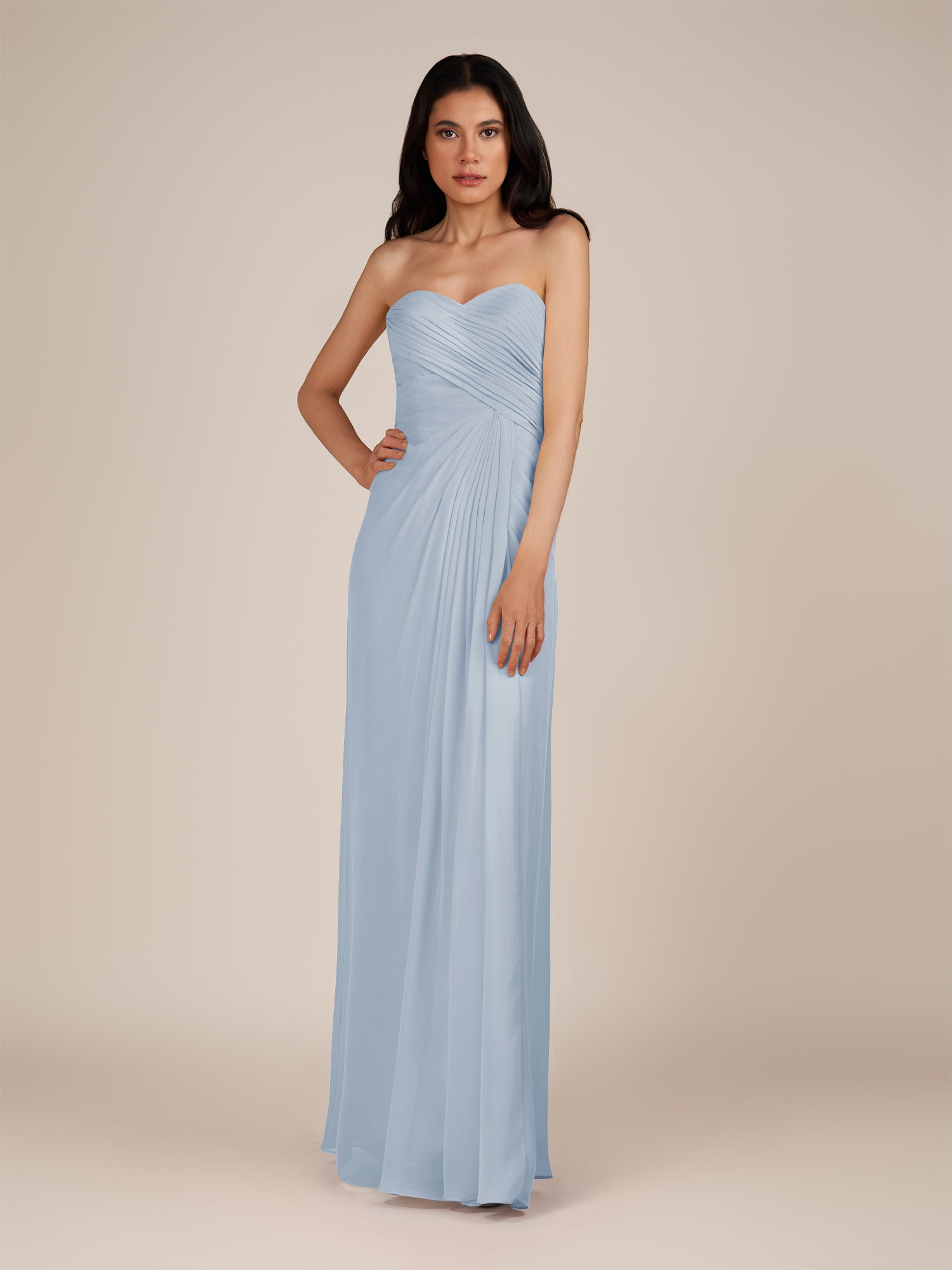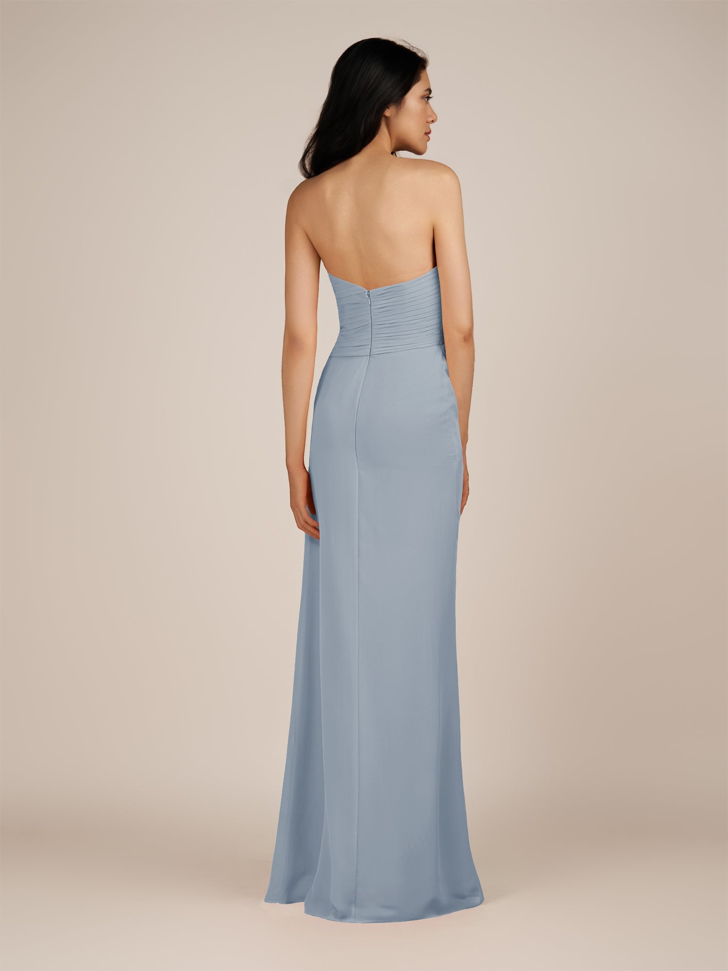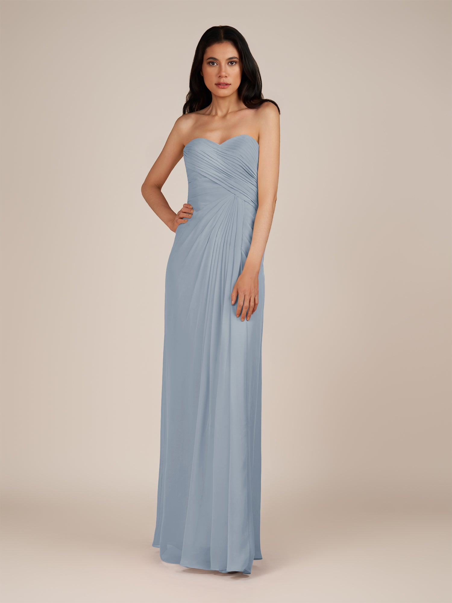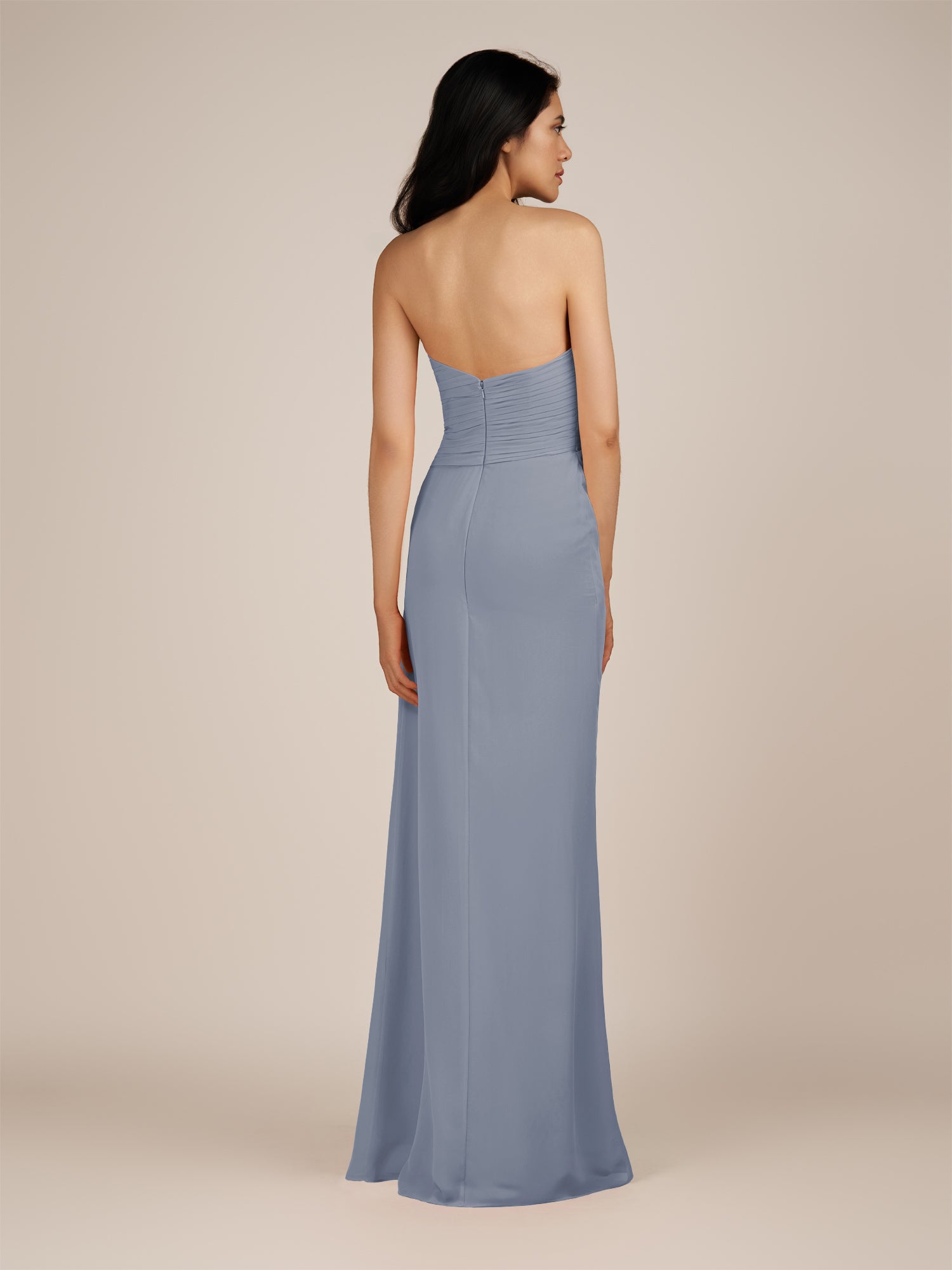 Wanlian | Blue Jay - A Line Chiffon Sweetheart Long Bridesmaid Dress with Pleats