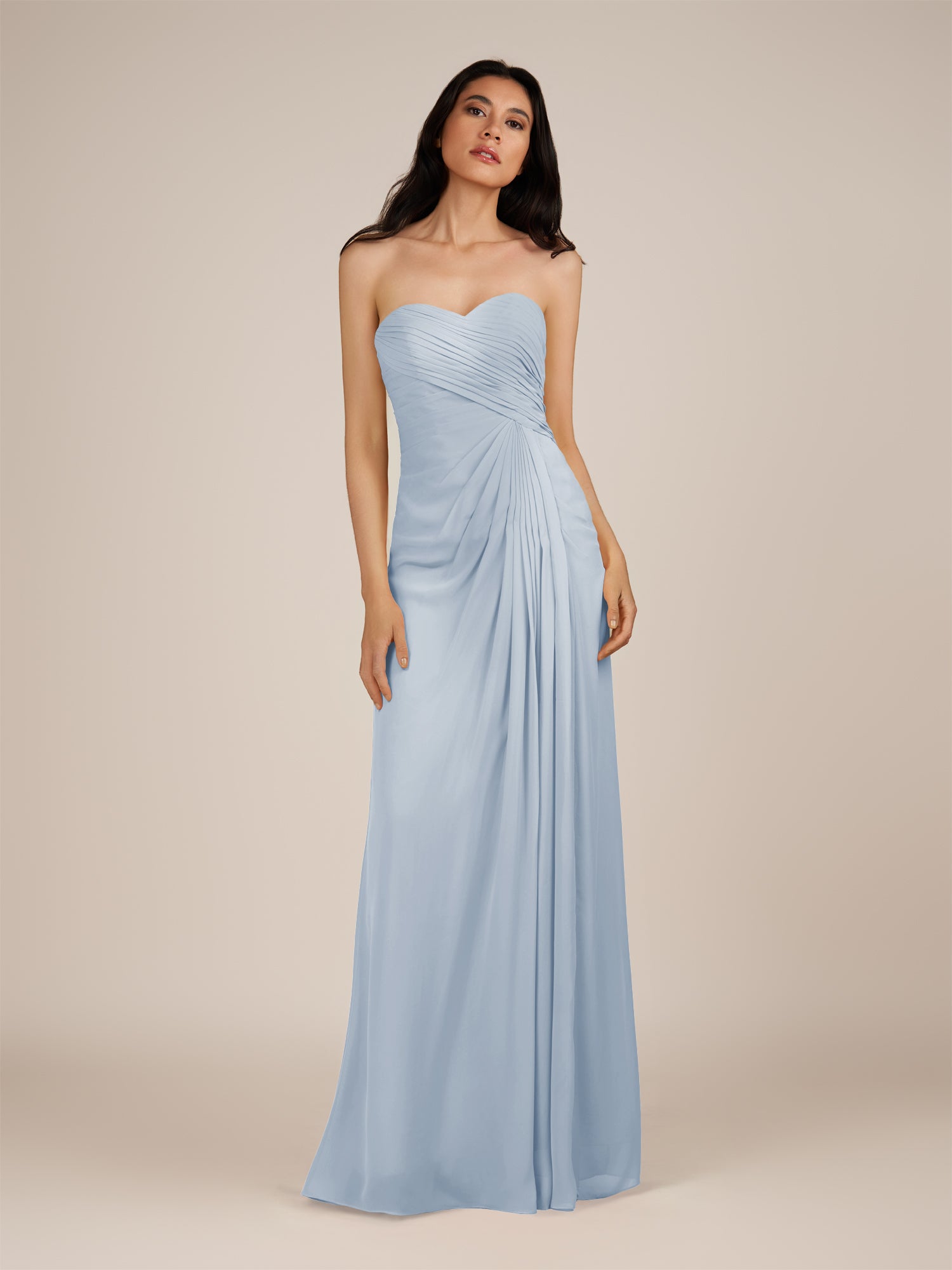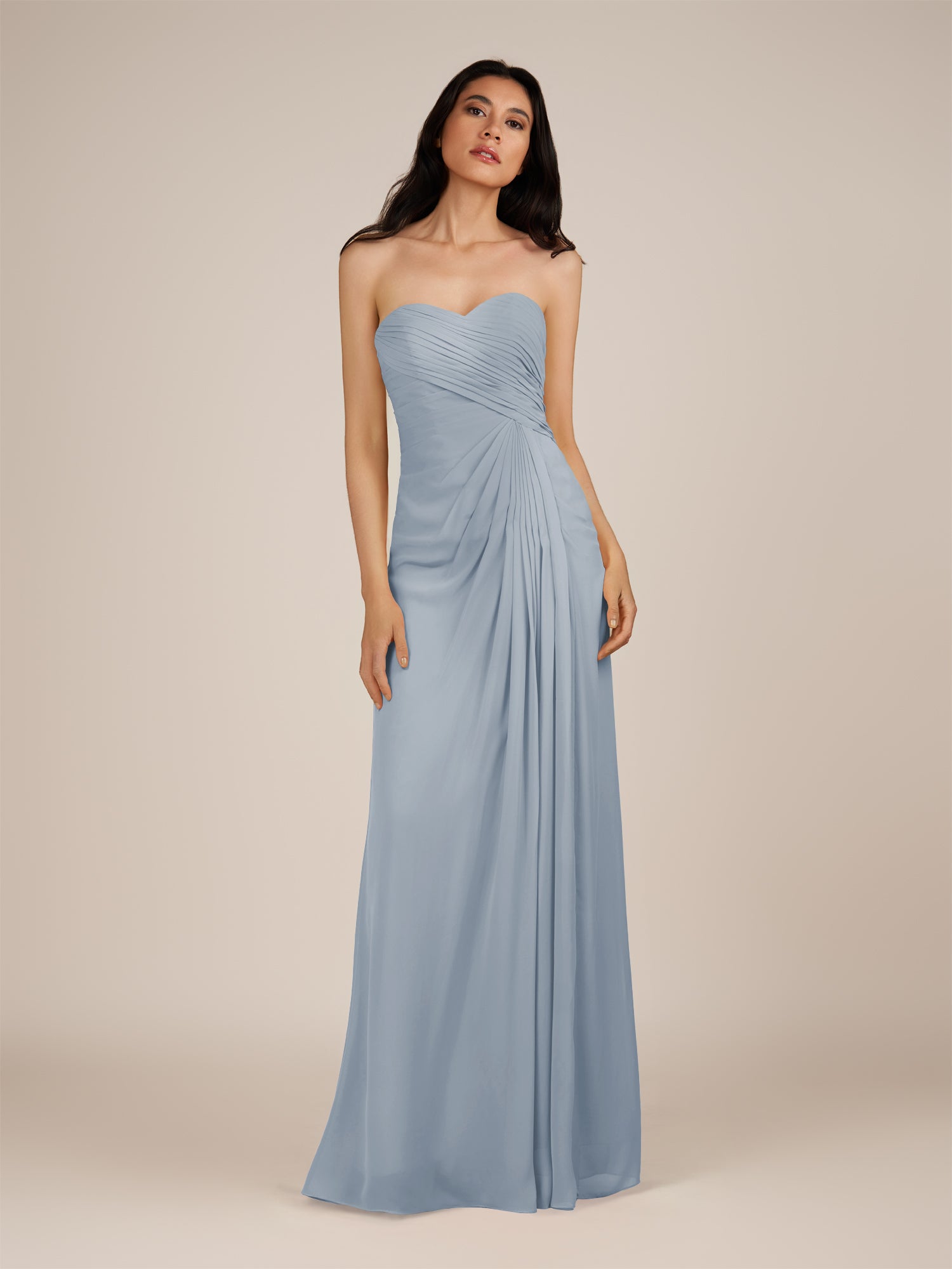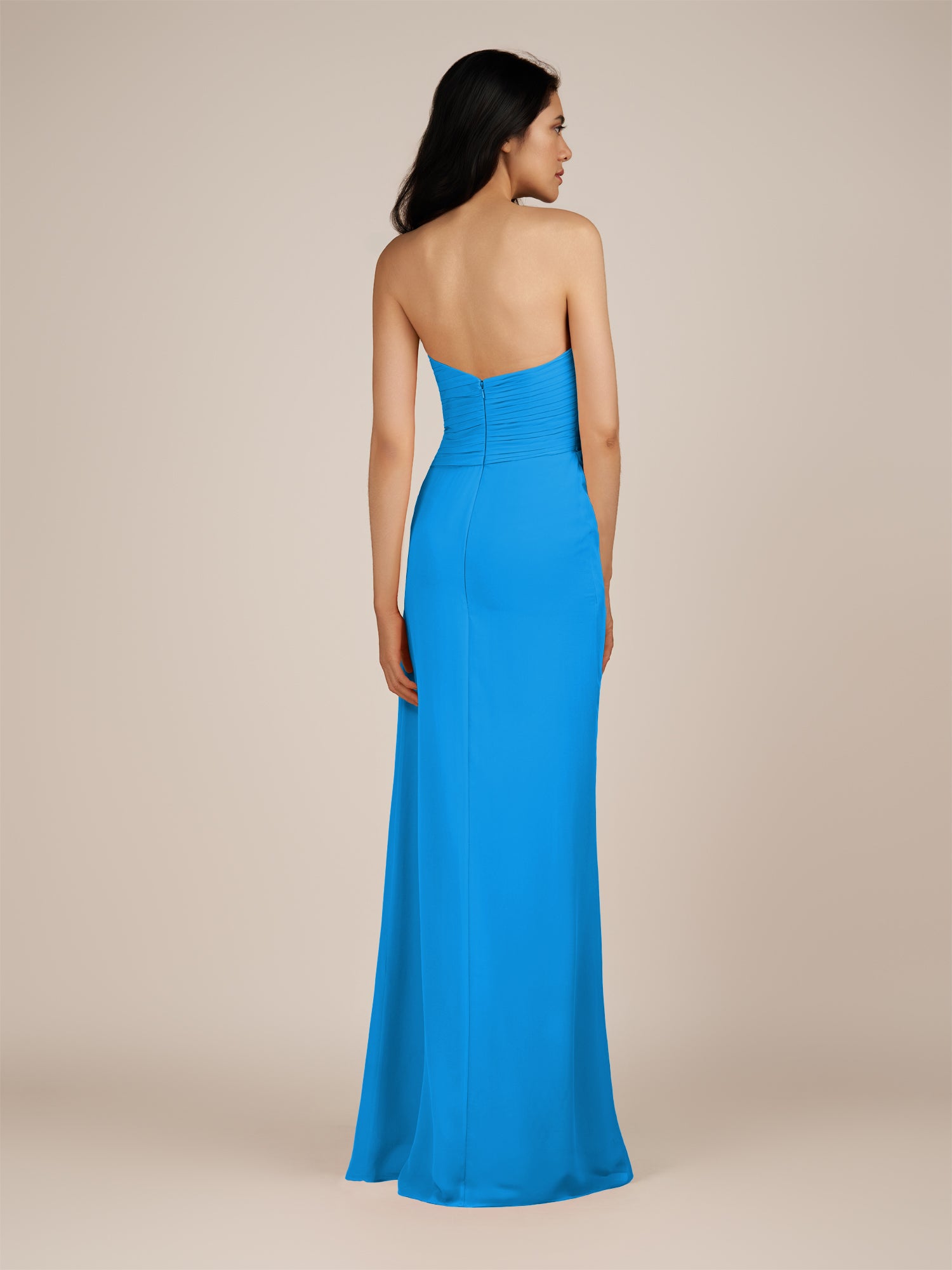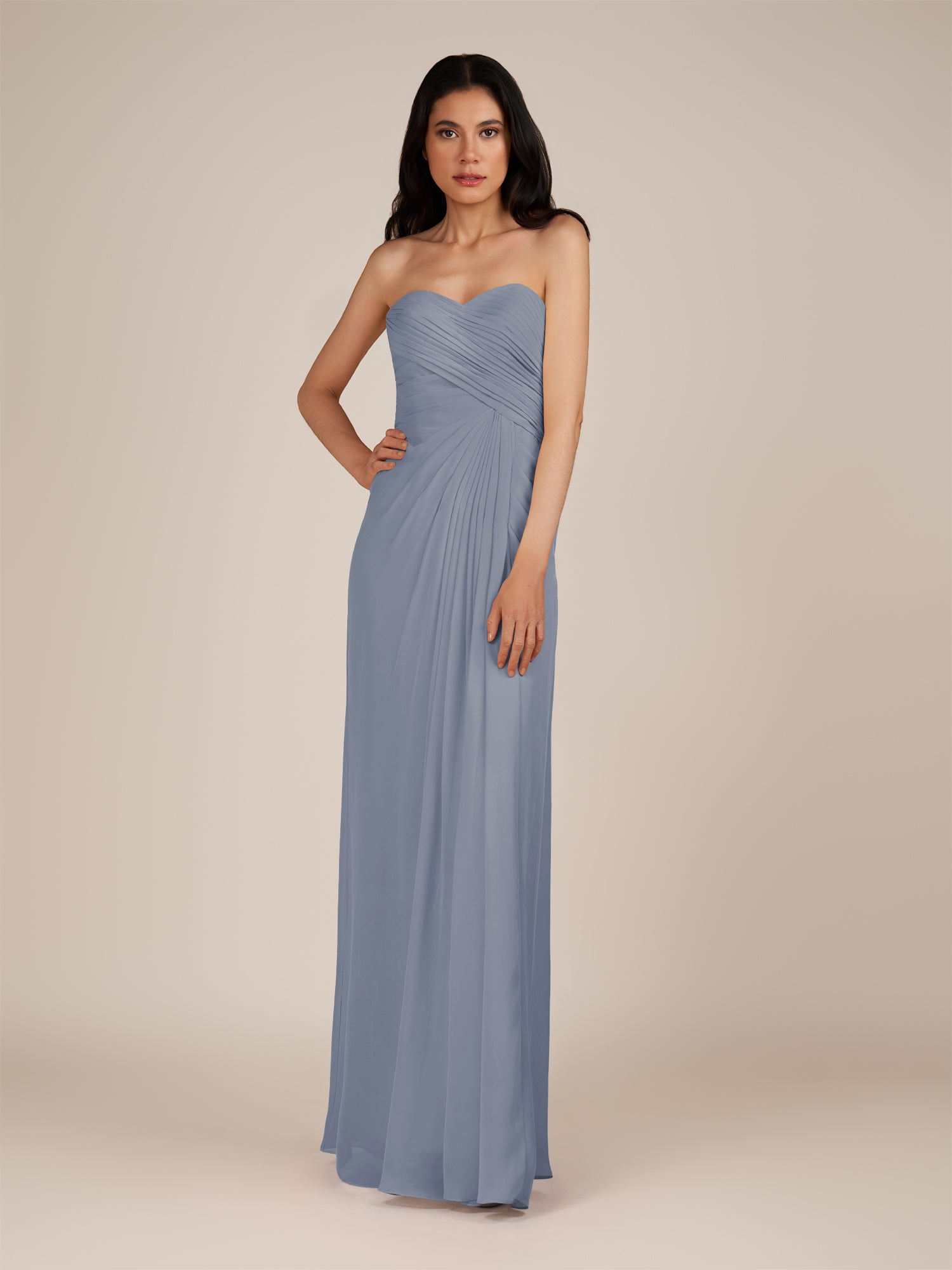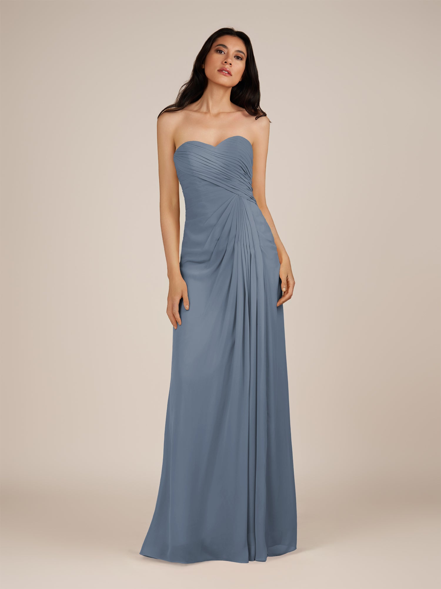 Wanlian | Blue Jay - A Line Chiffon Sweetheart Long Bridesmaid Dress with Pleats