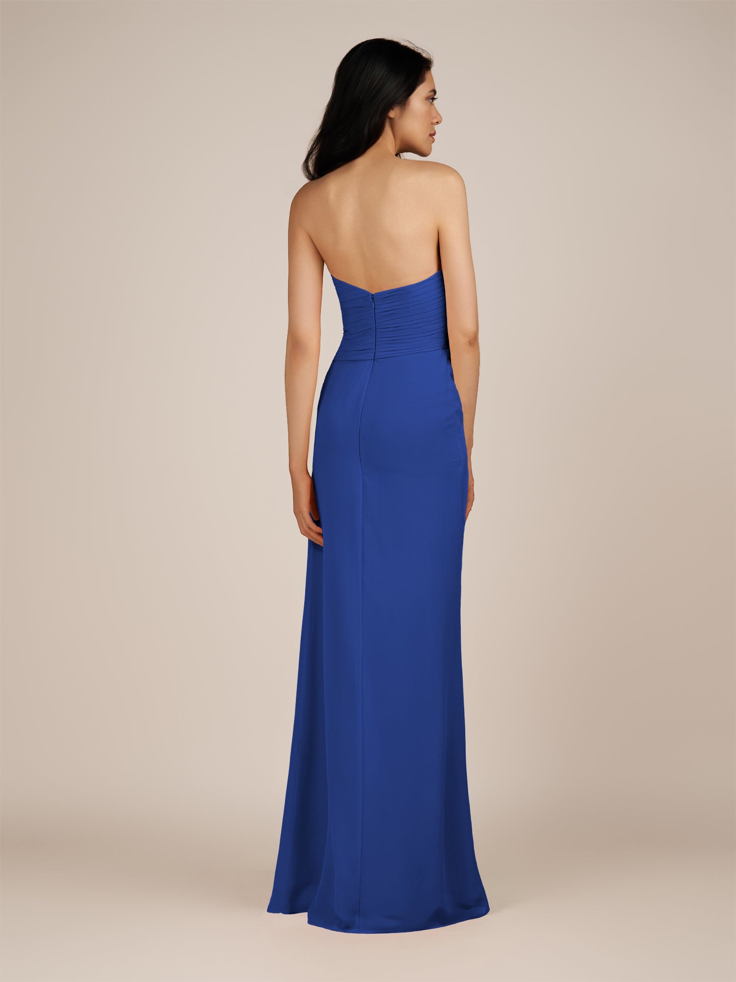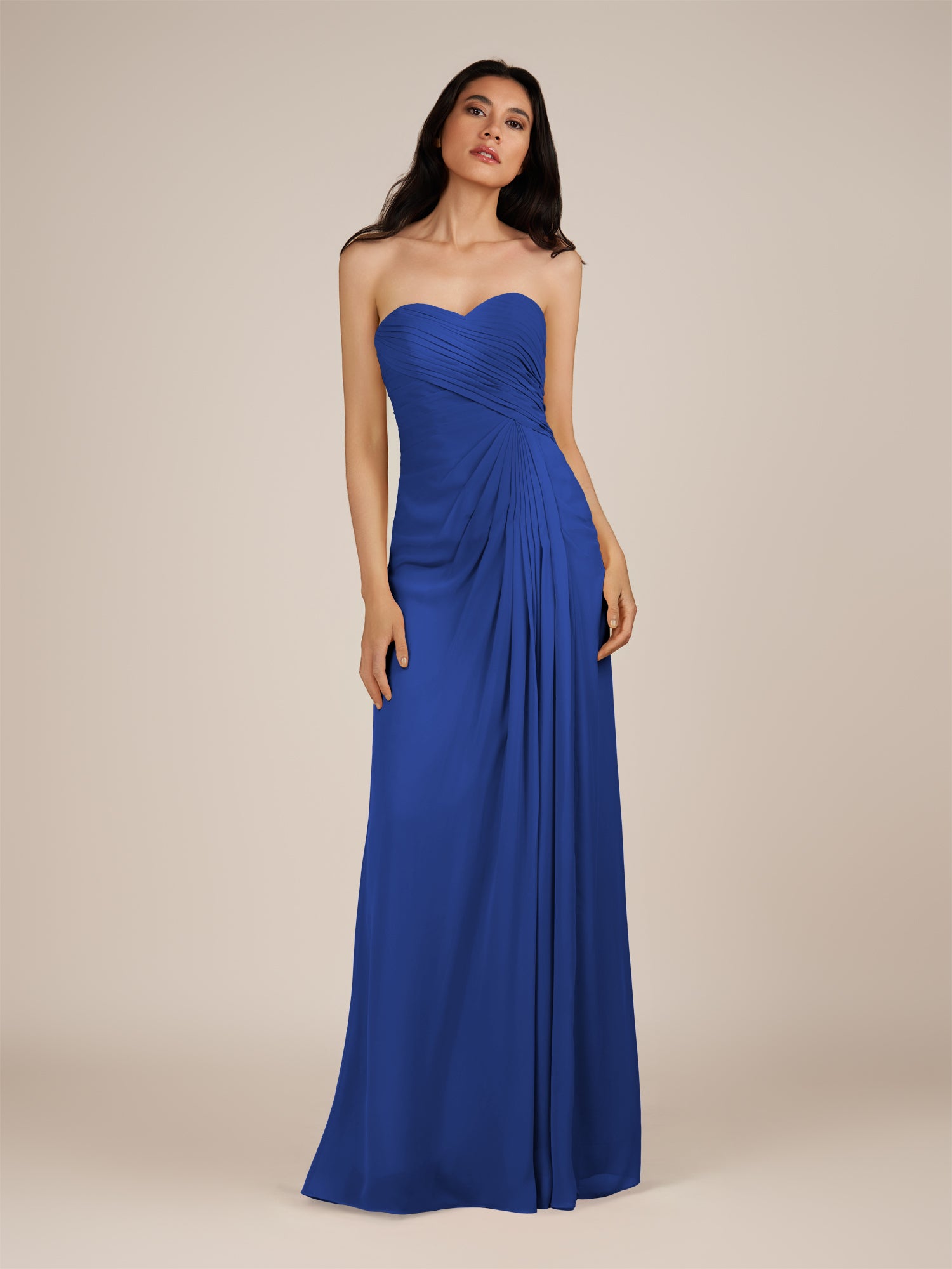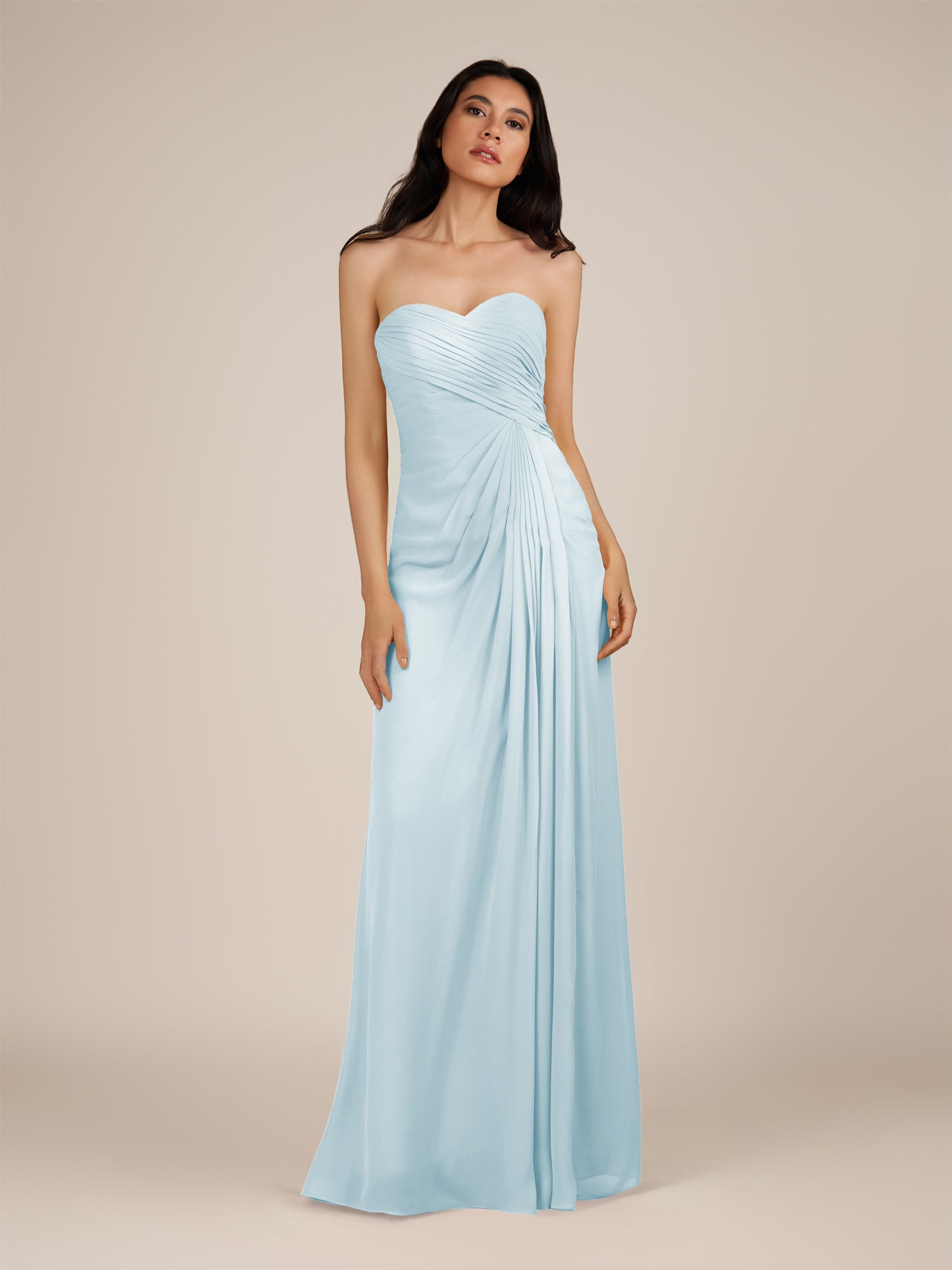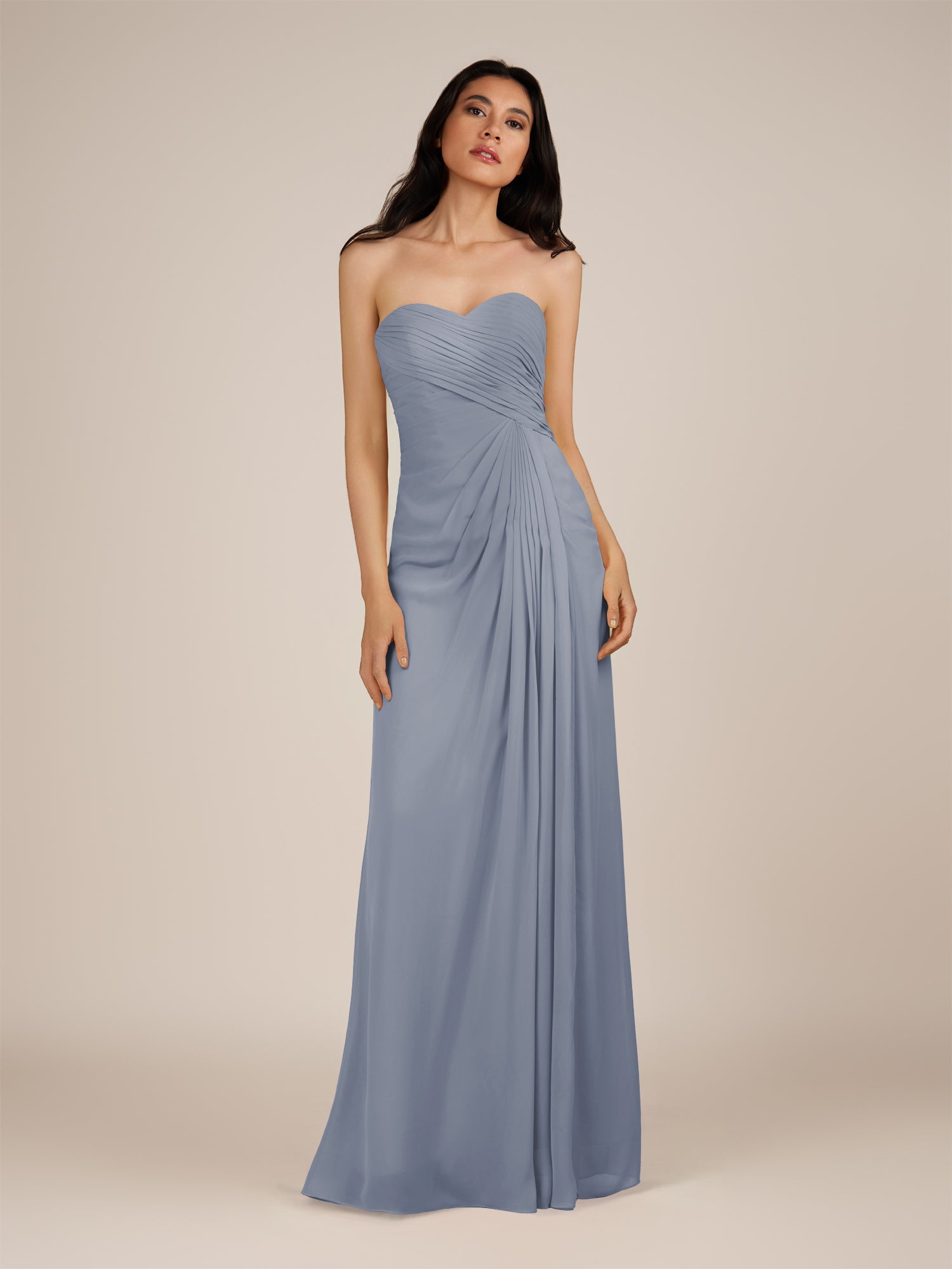 Wanlian | Blue Jay - A Line Chiffon Sweetheart Long Bridesmaid Dress with Pleats