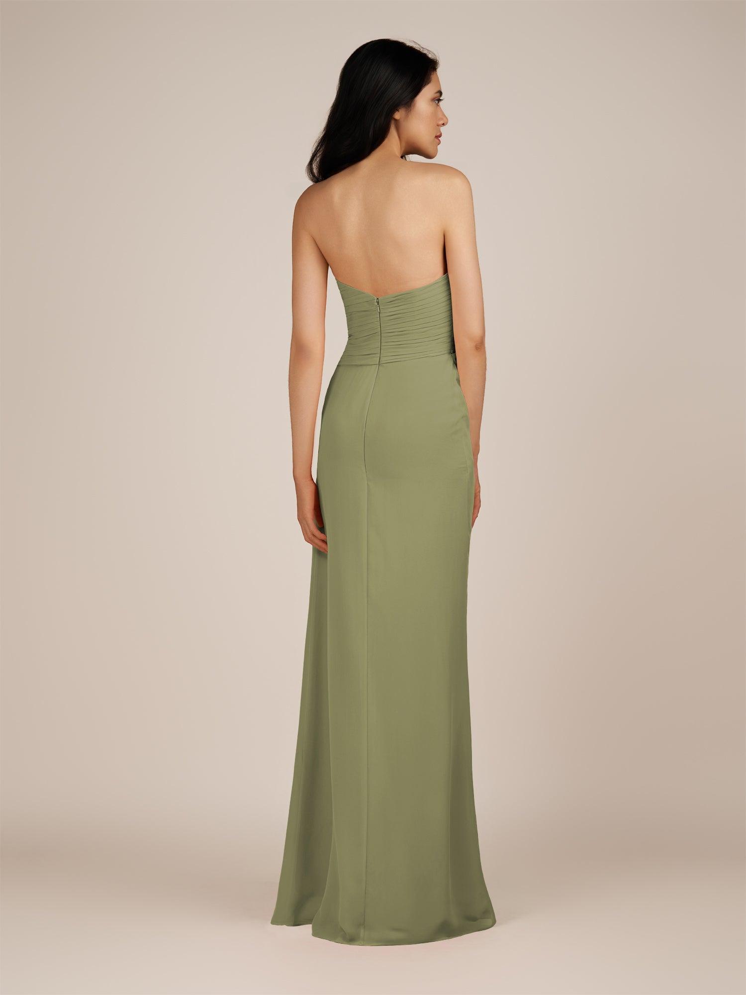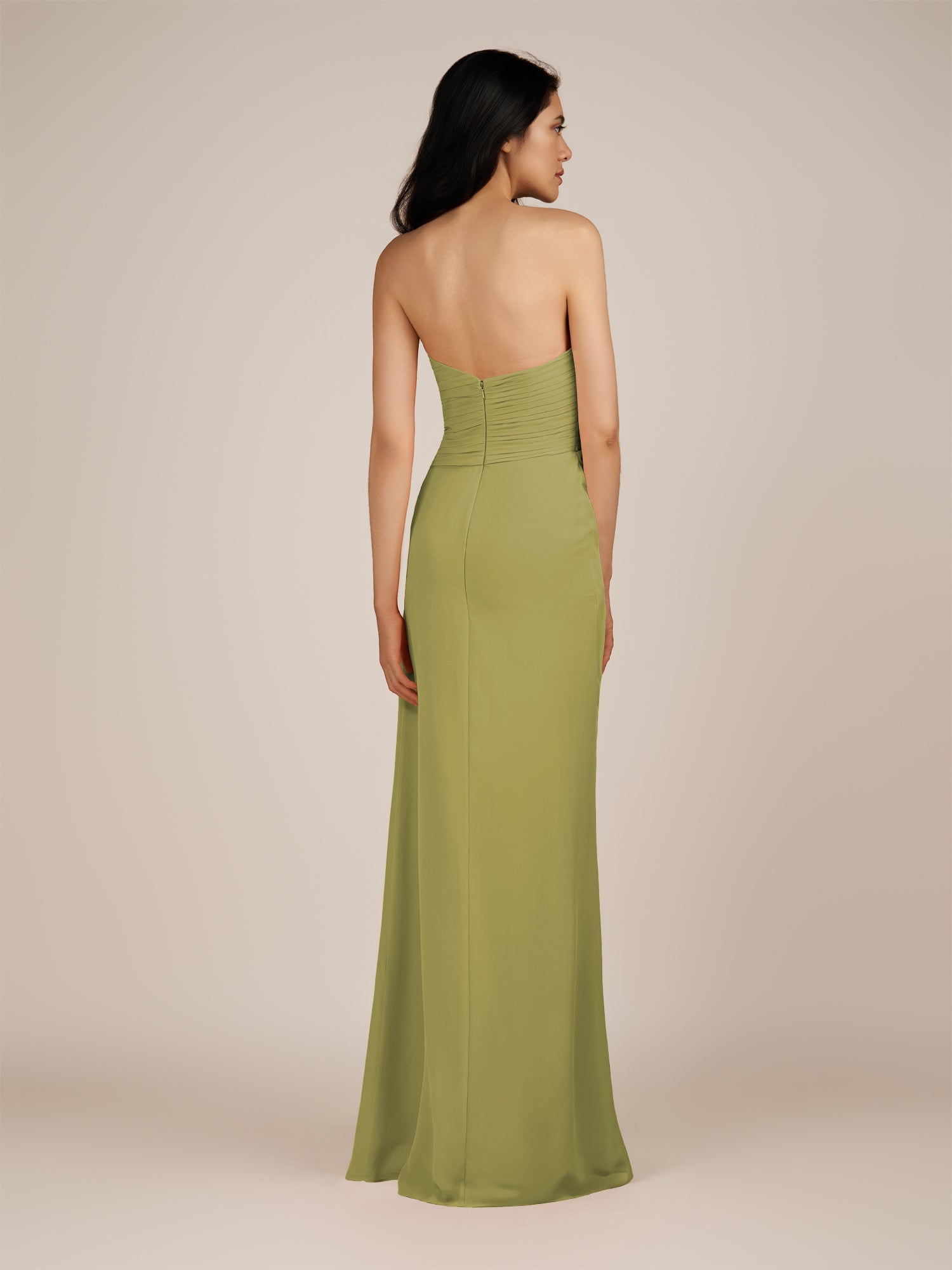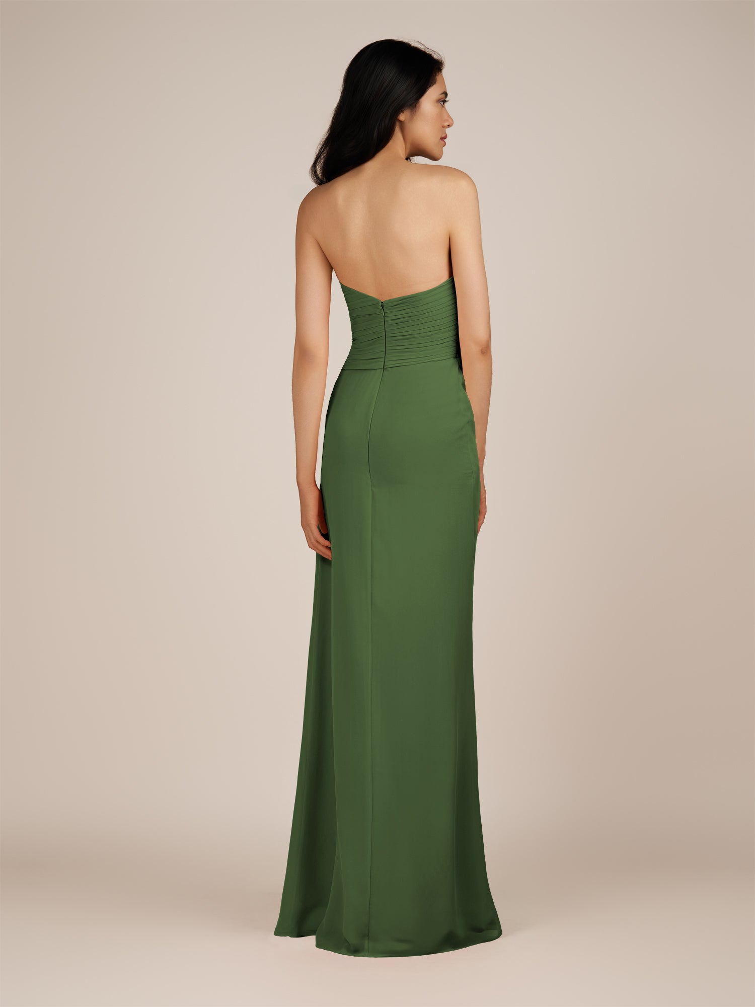 Wanlian | Moss - A Line Chiffon Sweetheart Long Bridesmaid Dress with Pleats