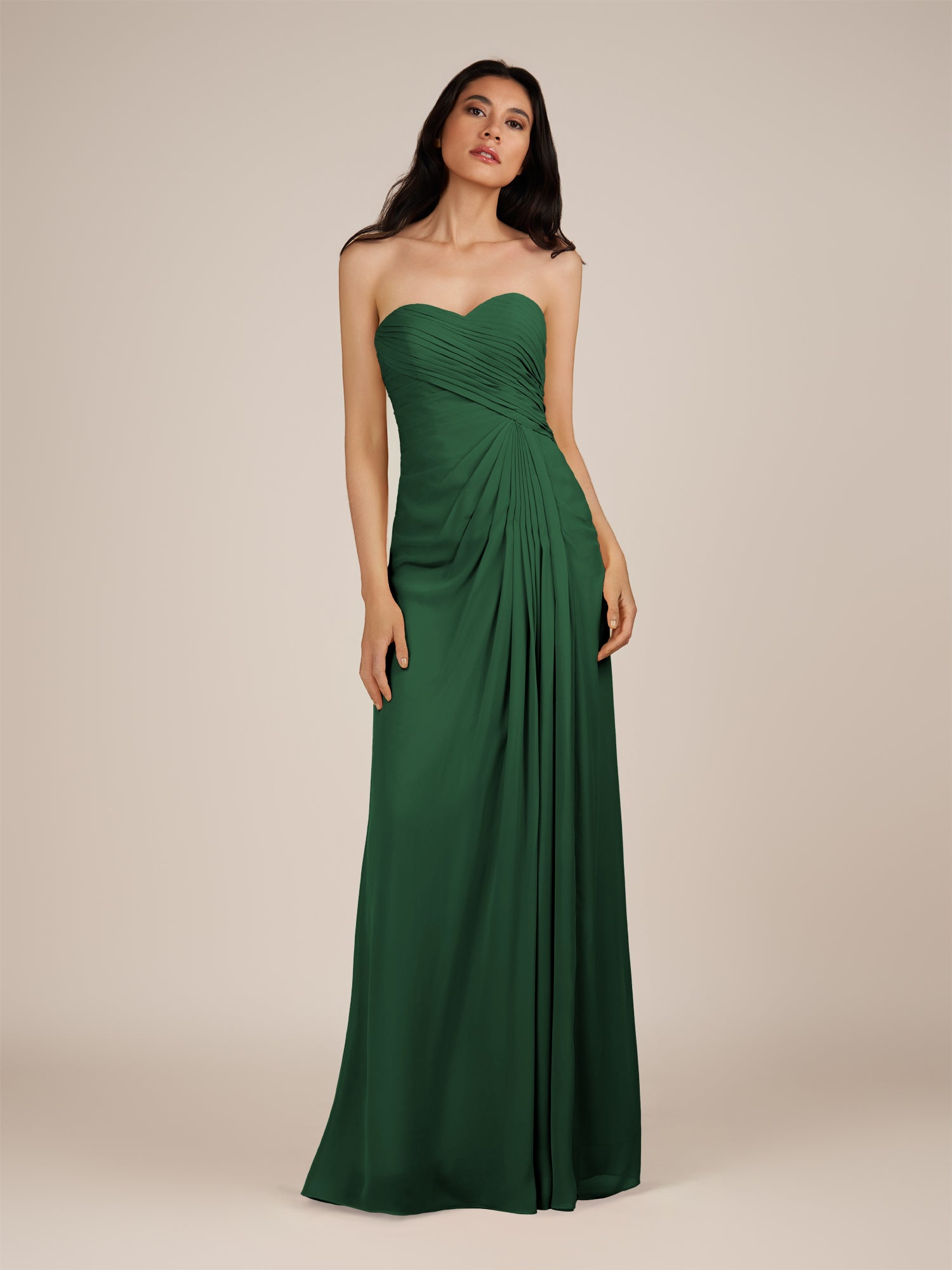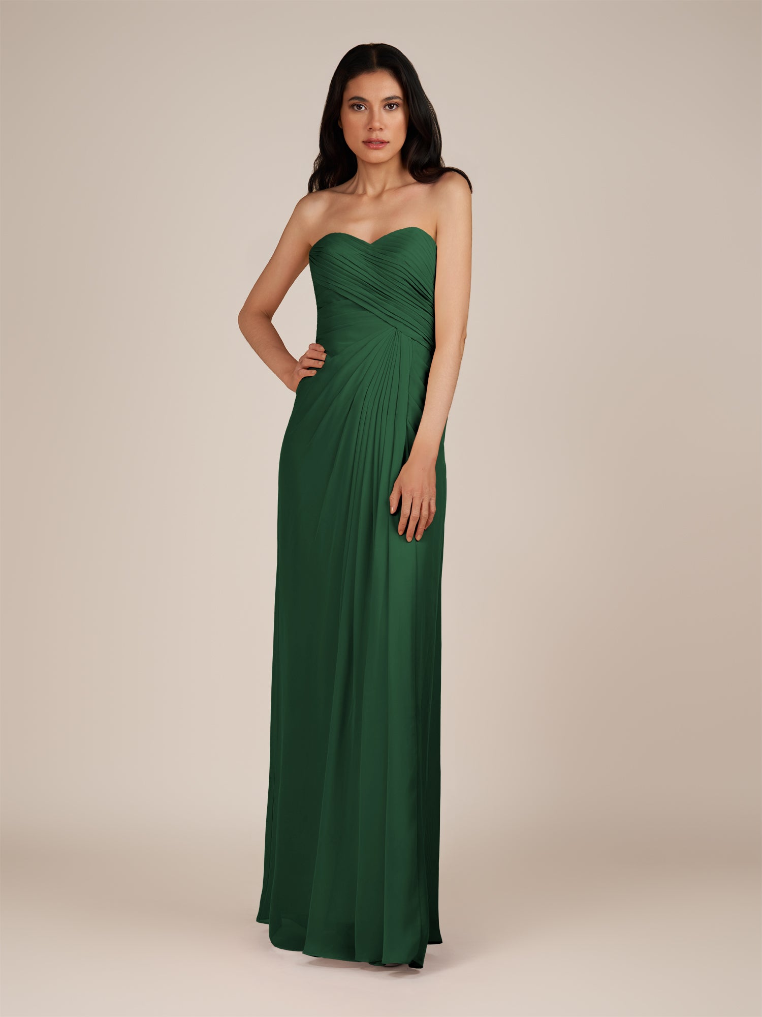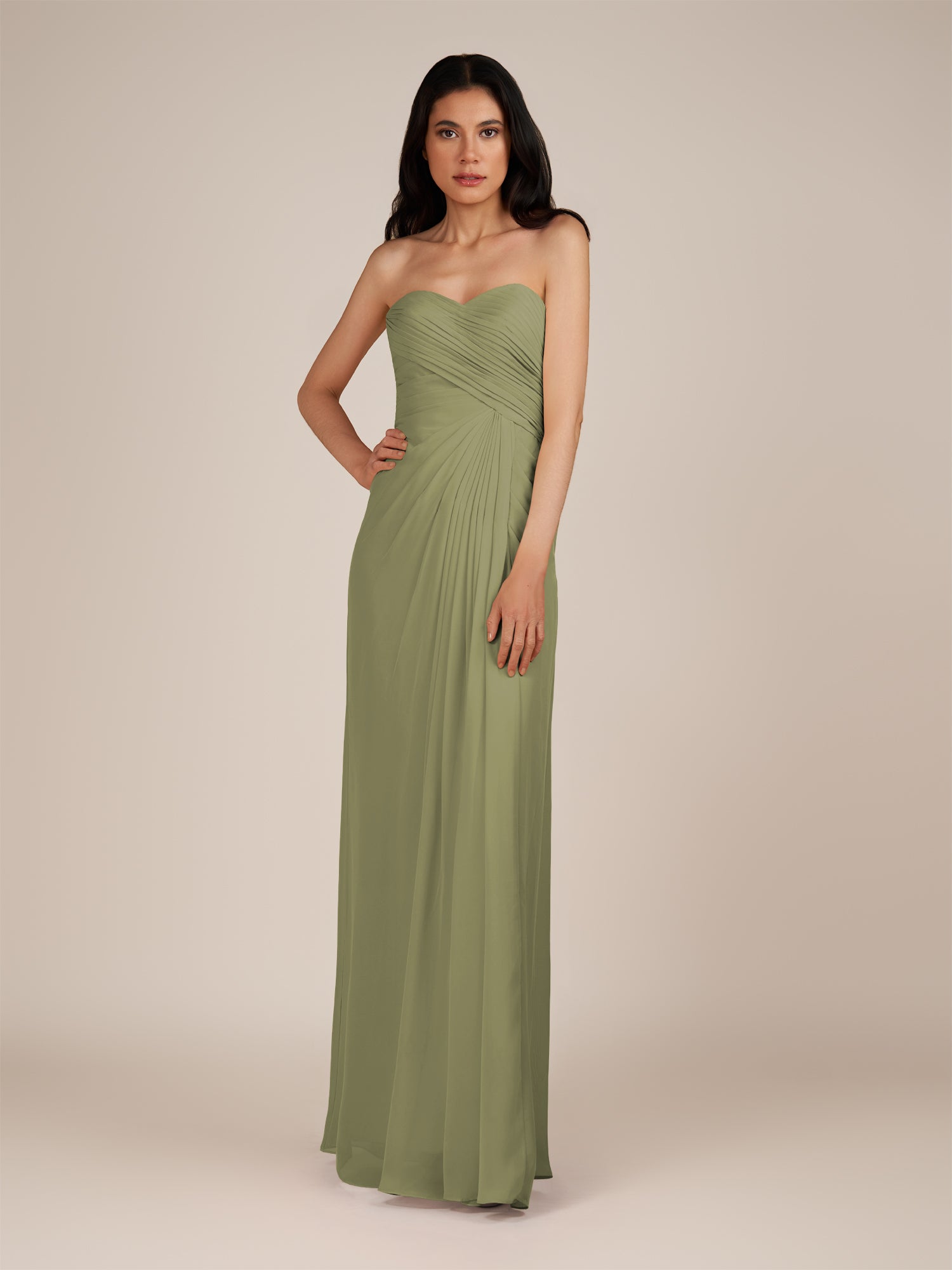 Wanlian | Moss - A Line Chiffon Sweetheart Long Bridesmaid Dress with Pleats