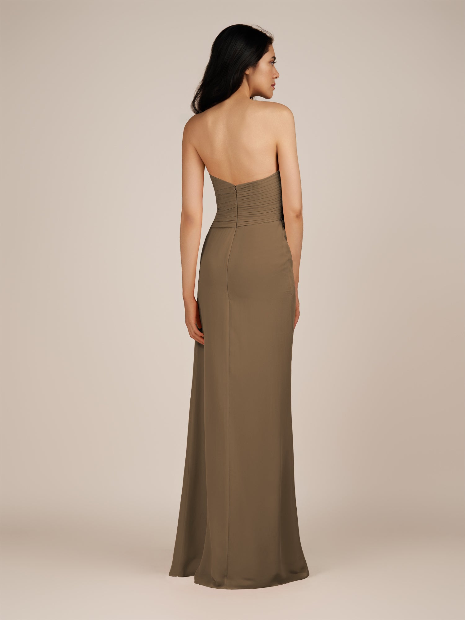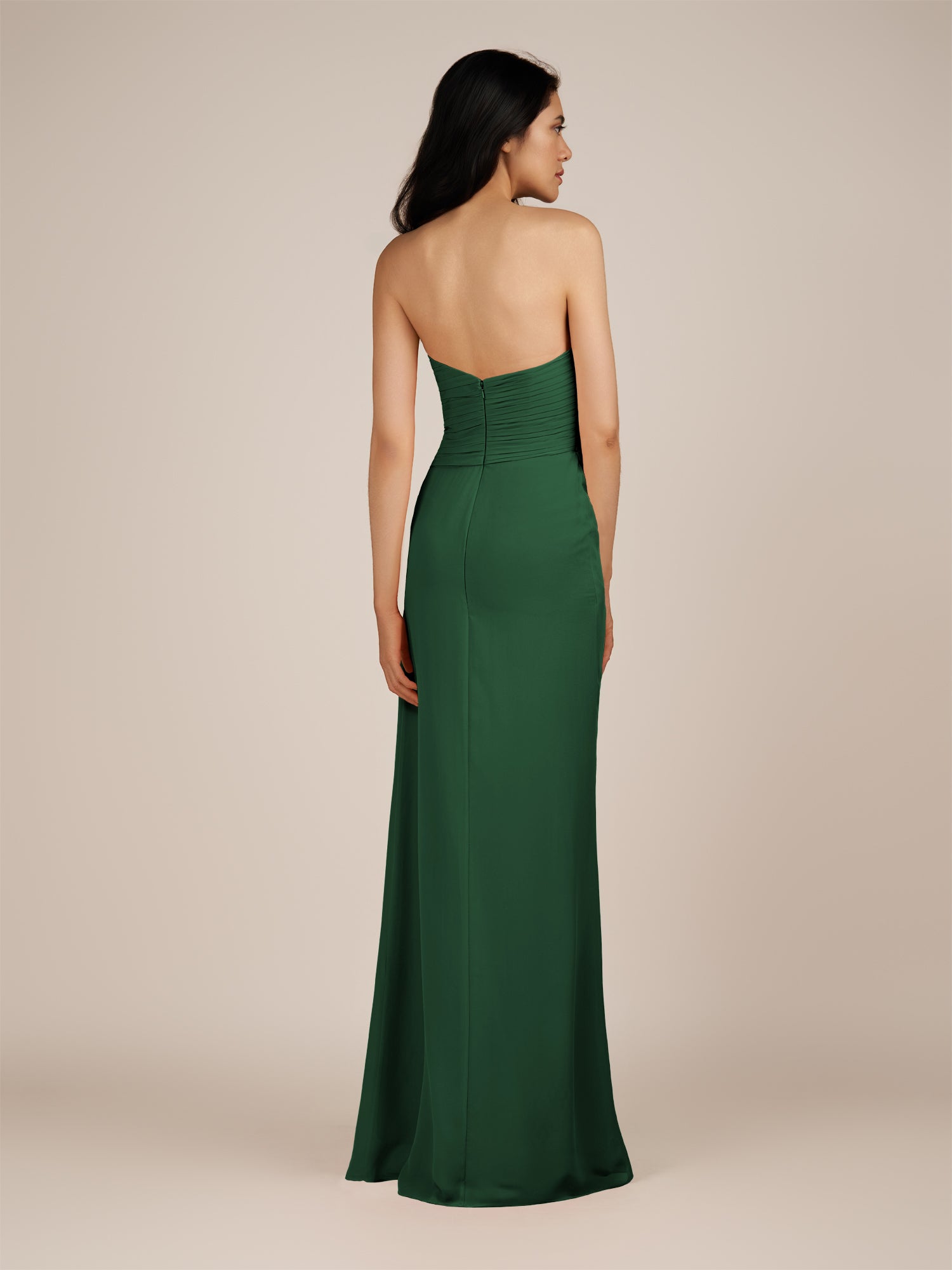 Wanlian | Pine - A Line Chiffon Sweetheart Long Bridesmaid Dress with Pleats