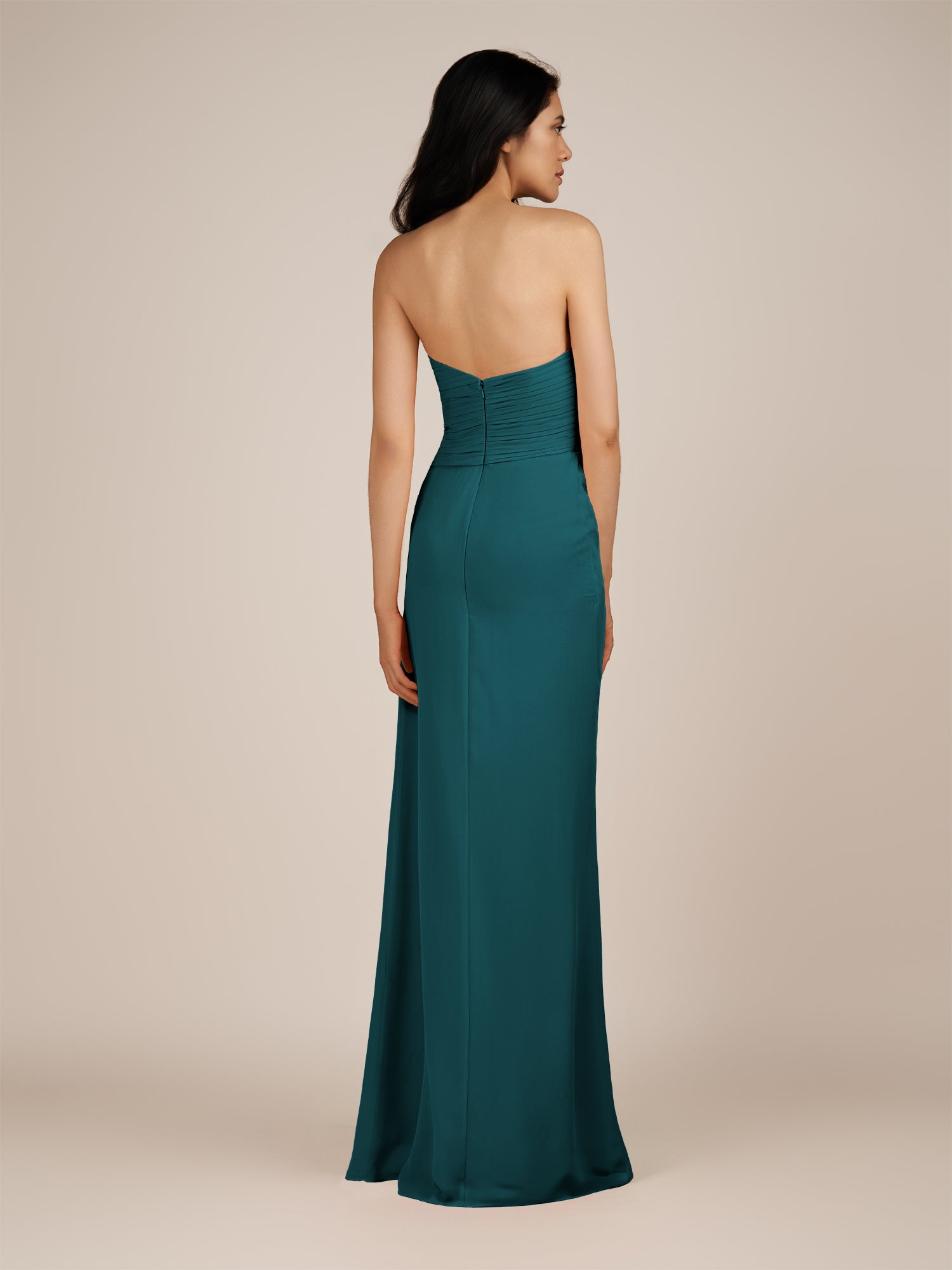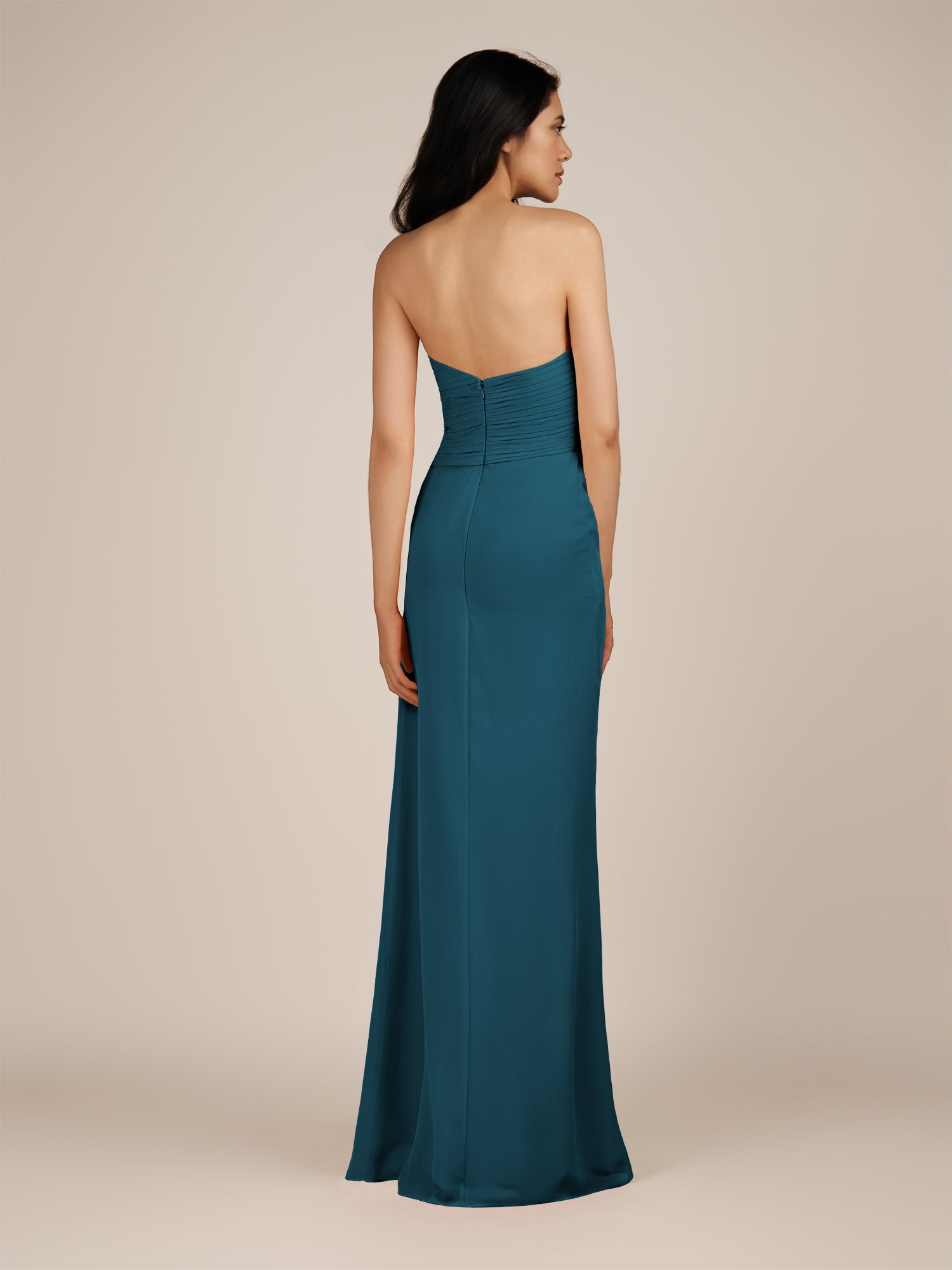 Wanlian | Neptune - A Line Chiffon Sweetheart Long Bridesmaid Dress with Pleats