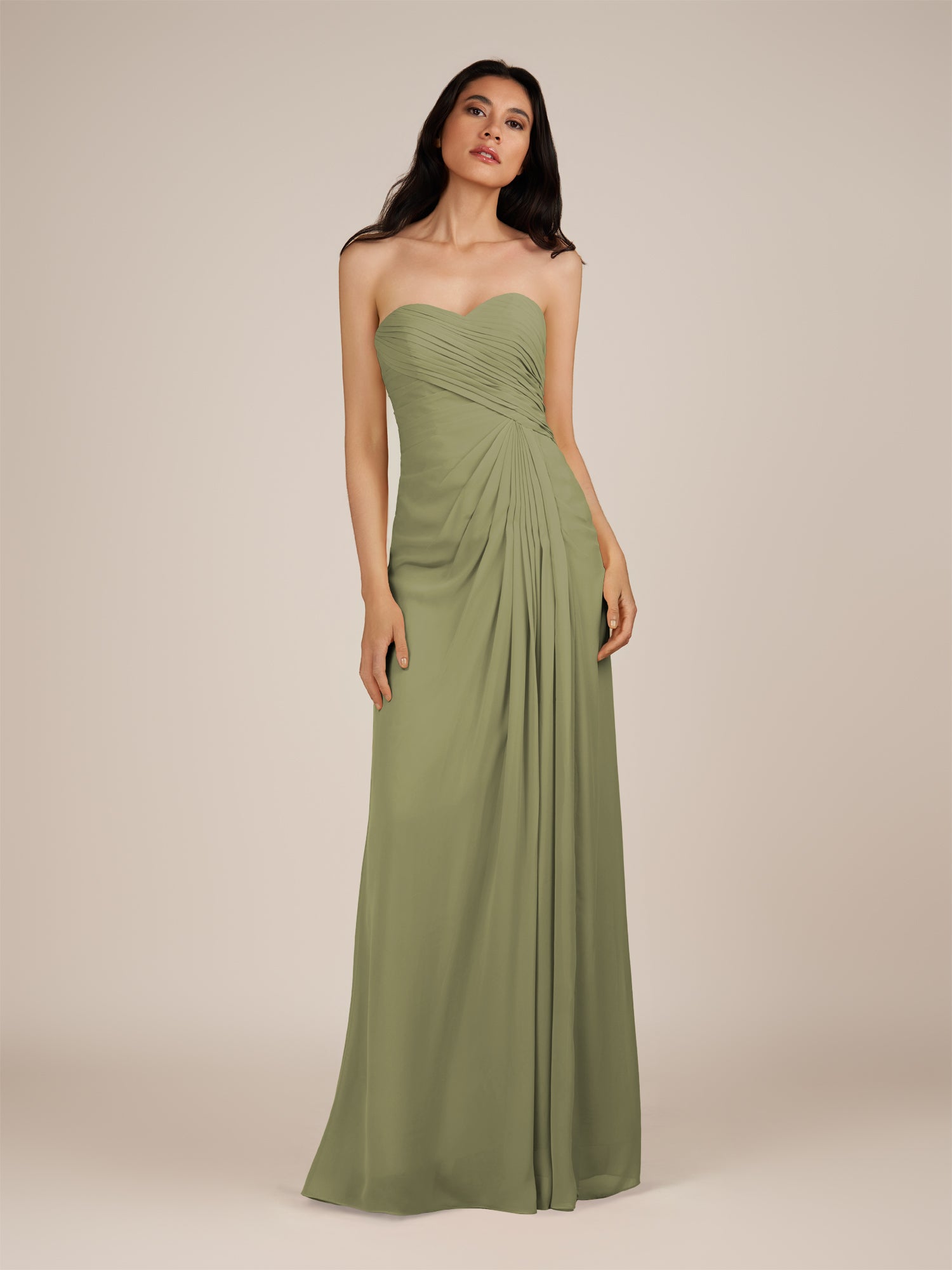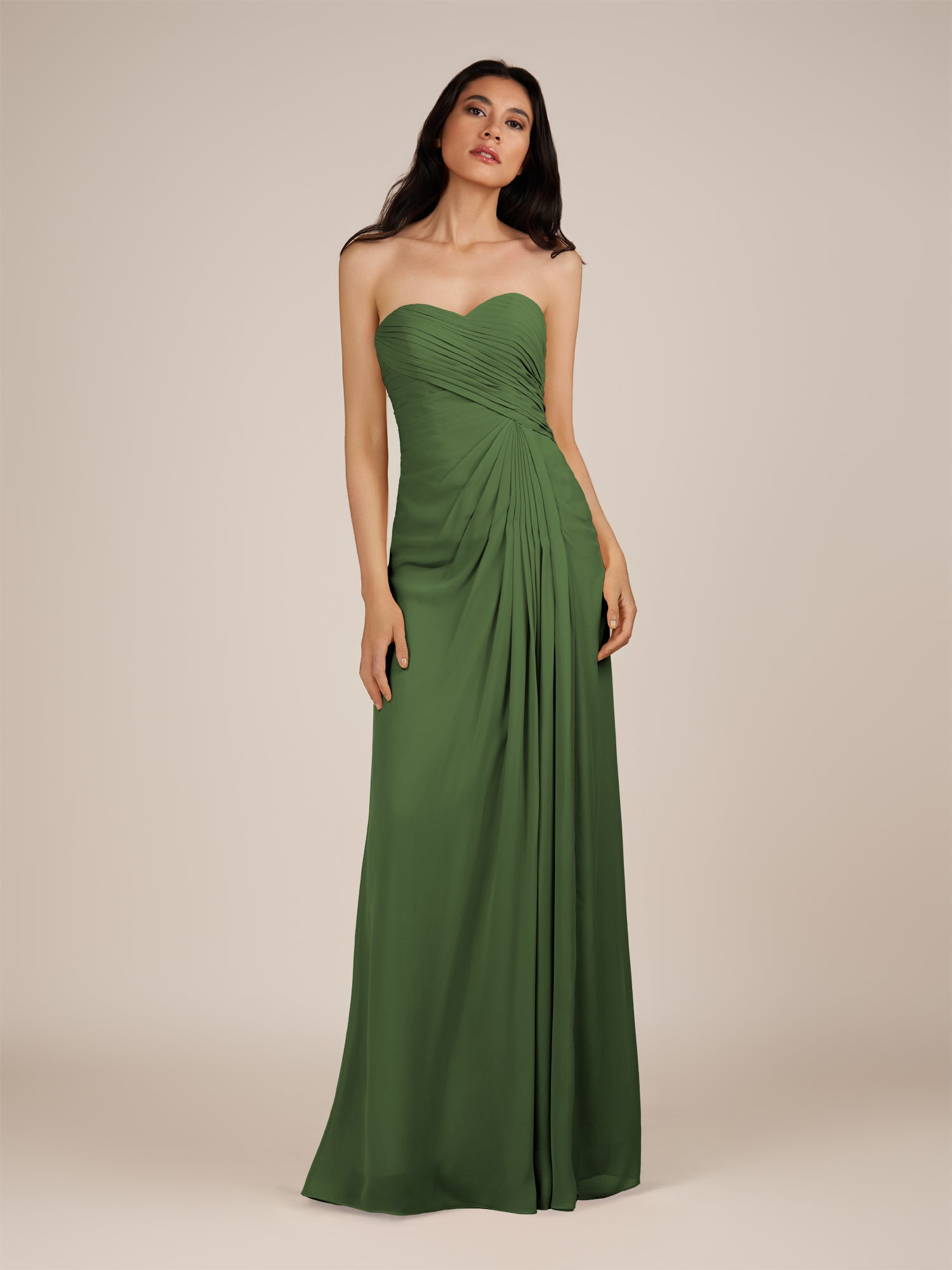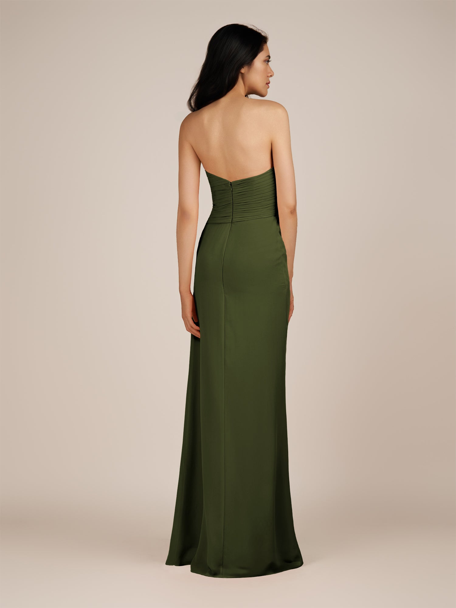 Wanlian | Olive - A Line Chiffon Sweetheart Long Bridesmaid Dress with Pleats