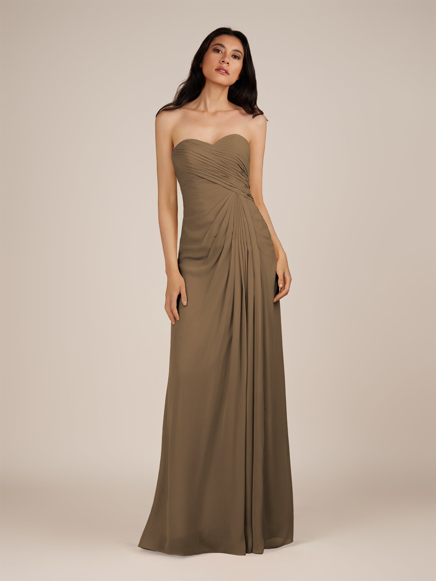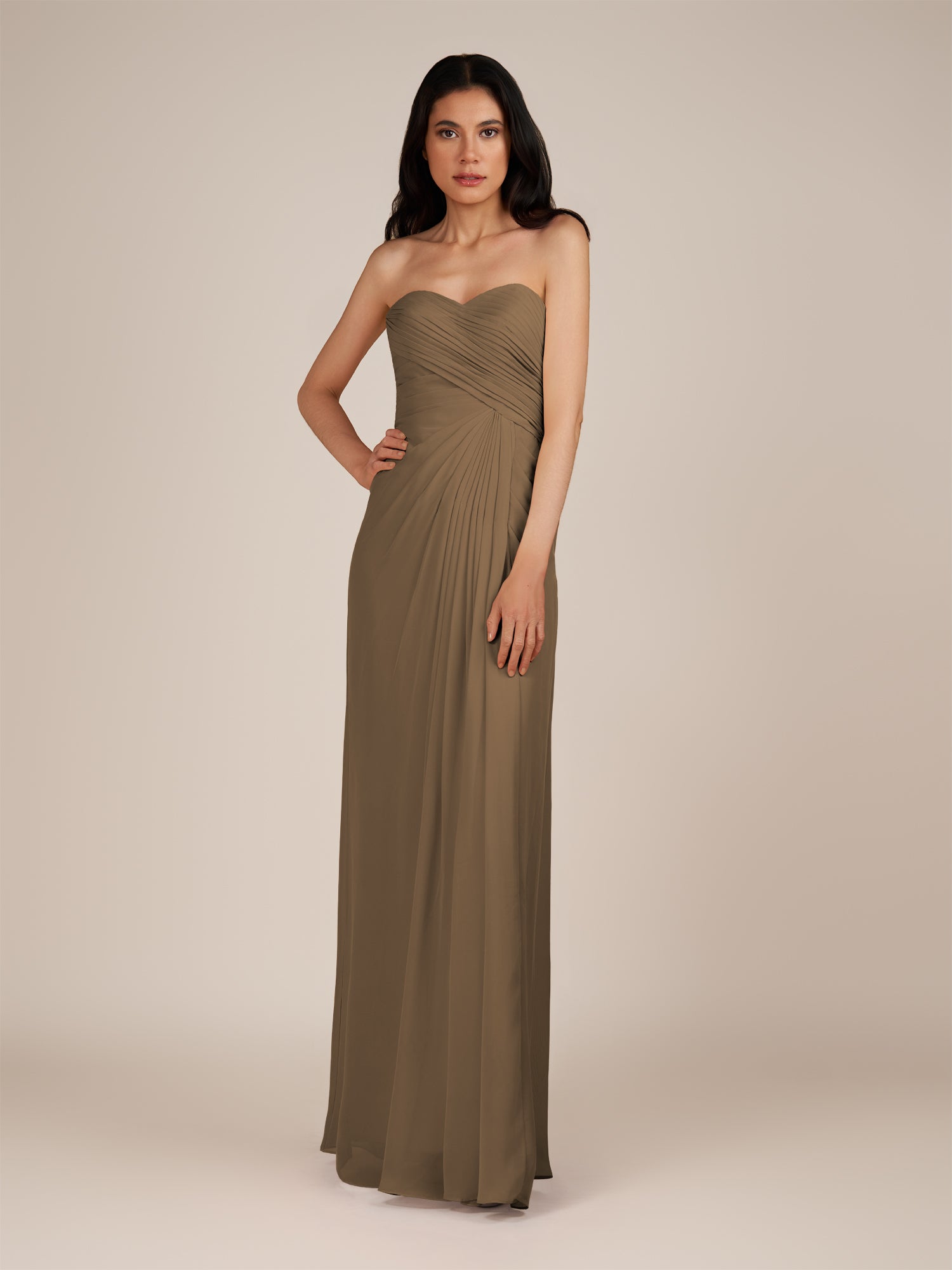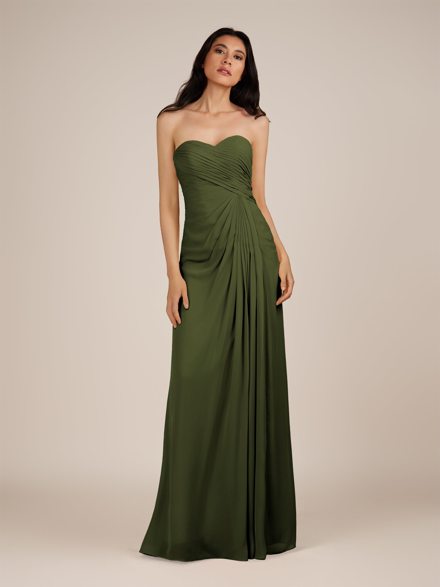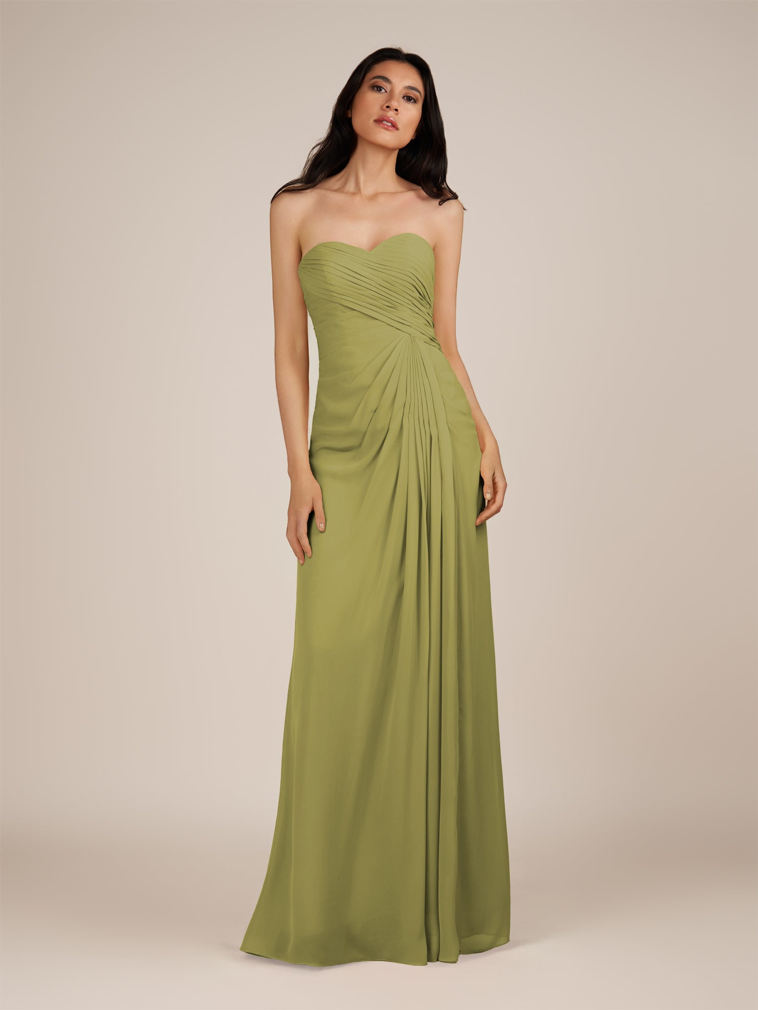 Wanlian | Olive - A Line Chiffon Sweetheart Long Bridesmaid Dress with Pleats
