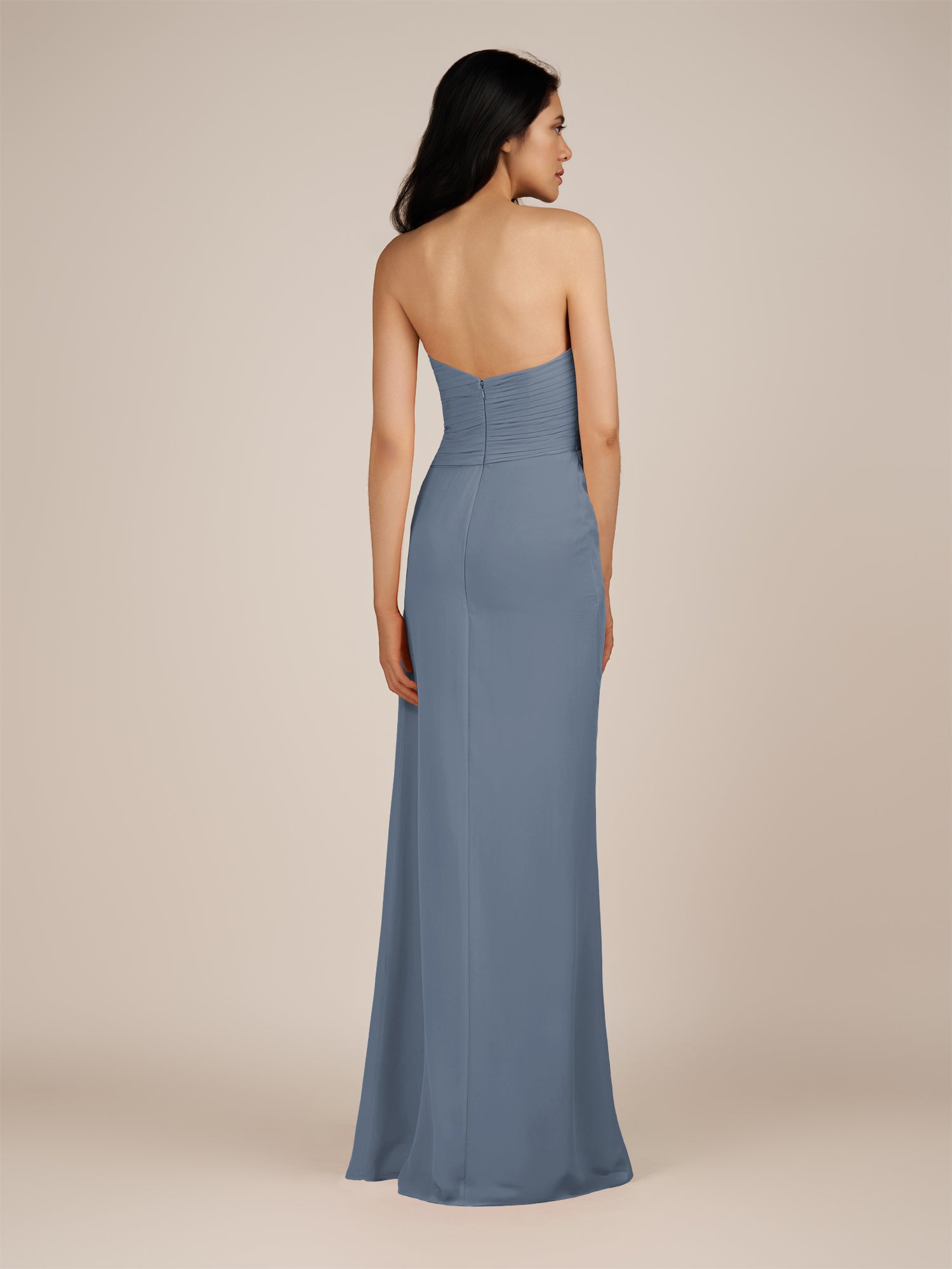 Wanlian | Steel Blue - A Line Chiffon Sweetheart Long Bridesmaid Dress with Pleats