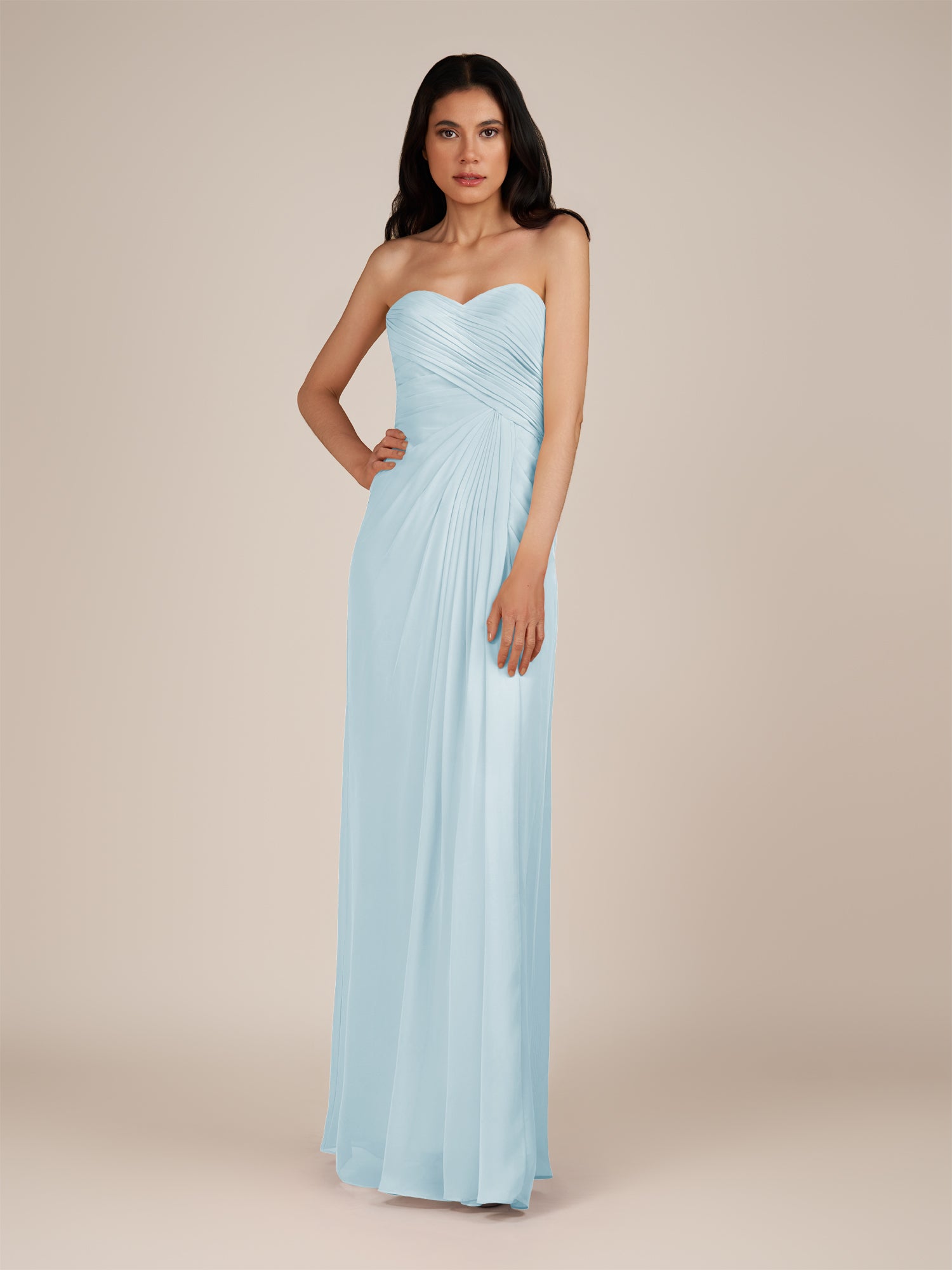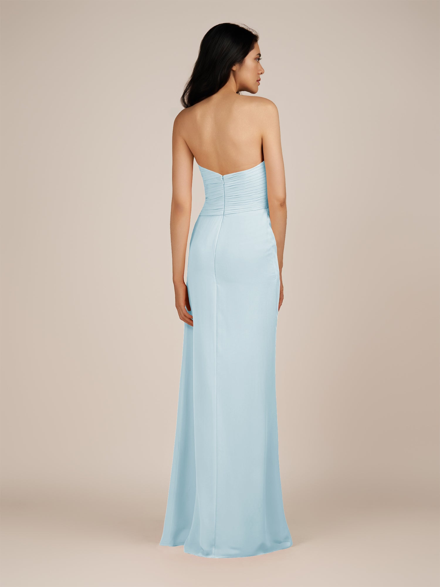 Wanlian | Sky Blue - A Line Chiffon Sweetheart Long Bridesmaid Dress with Pleats