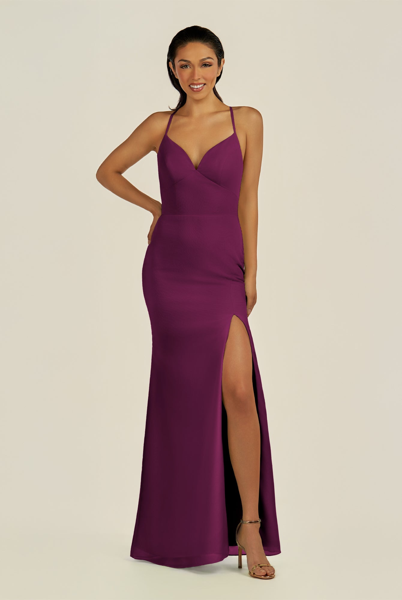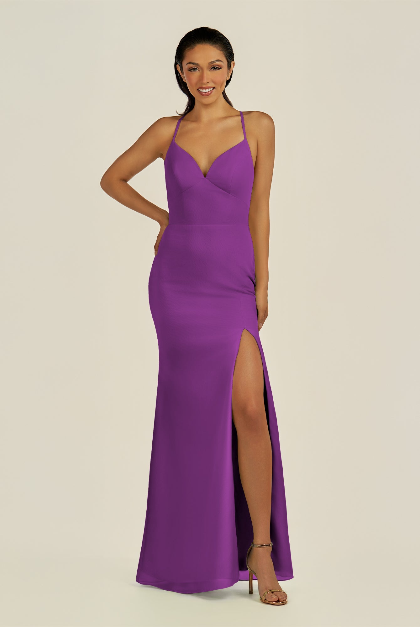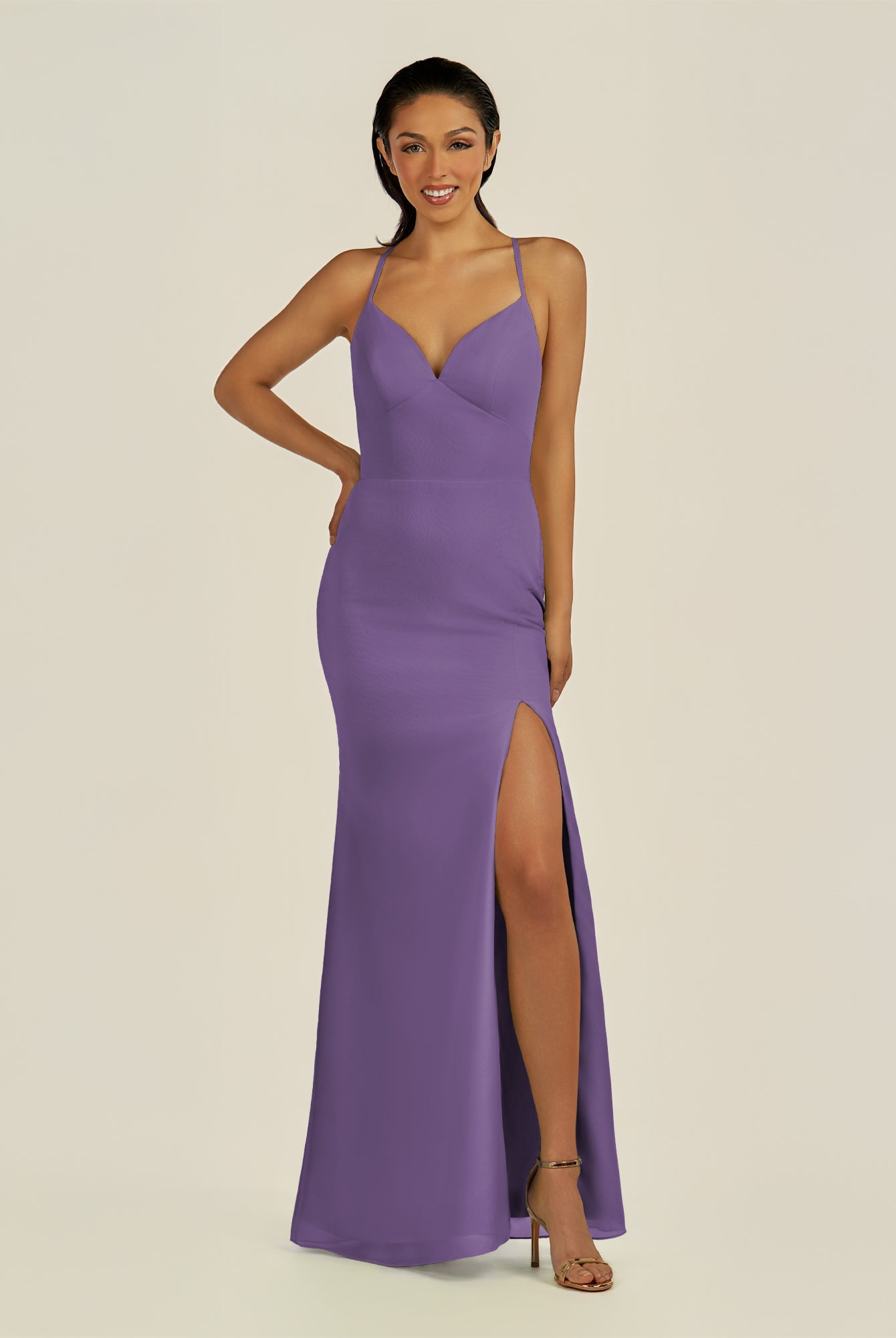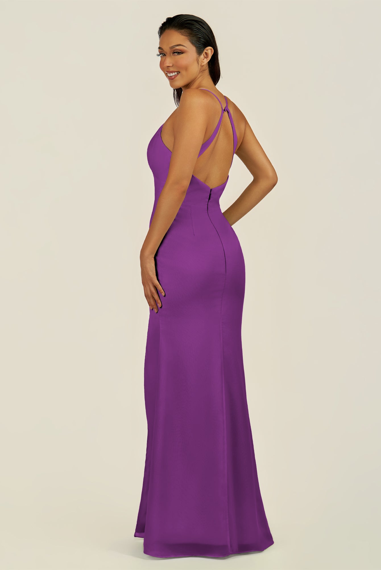 Zeryn | Amethyst - Sheath V Neck Chiffon Long Bridesmaid Dress with Slit