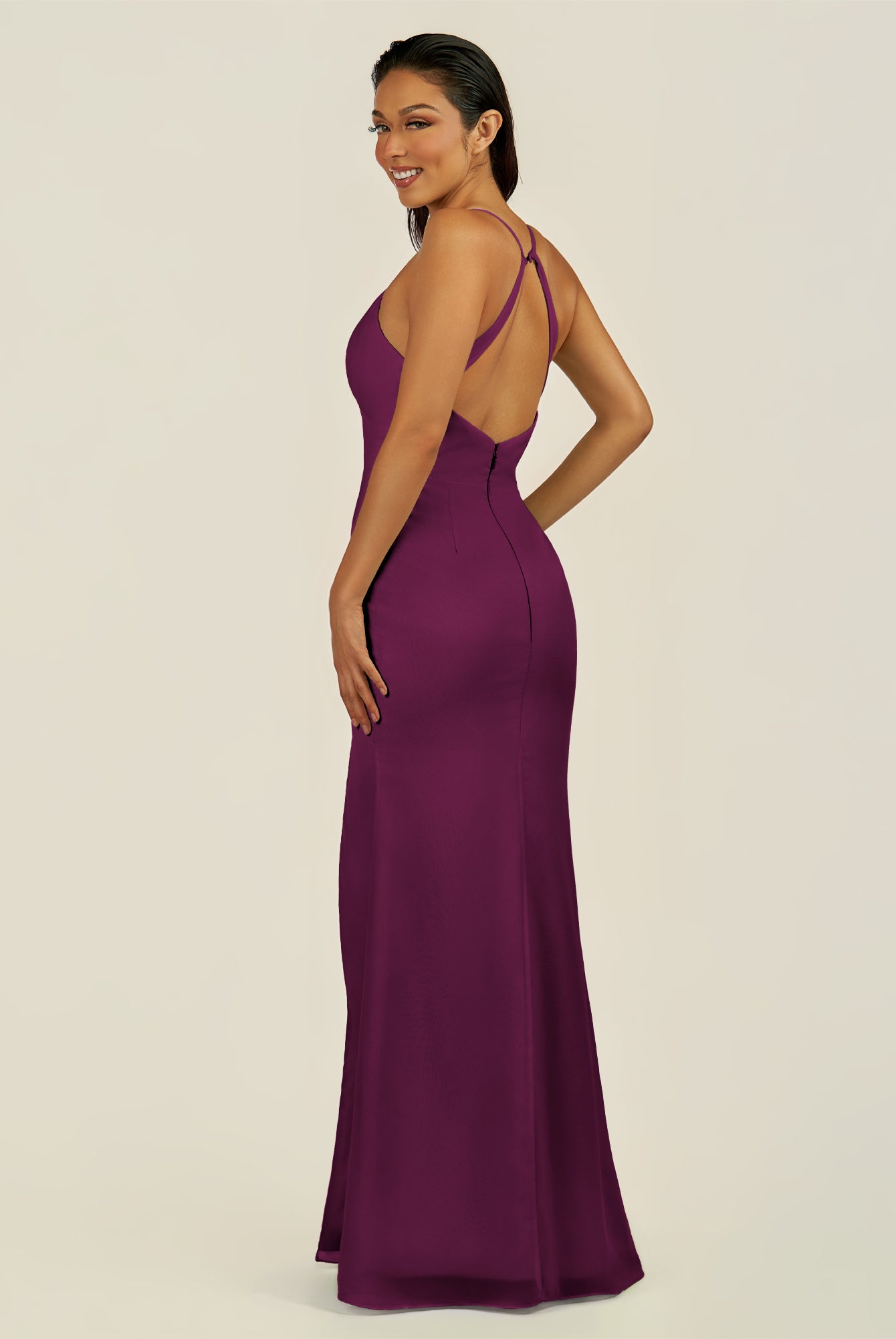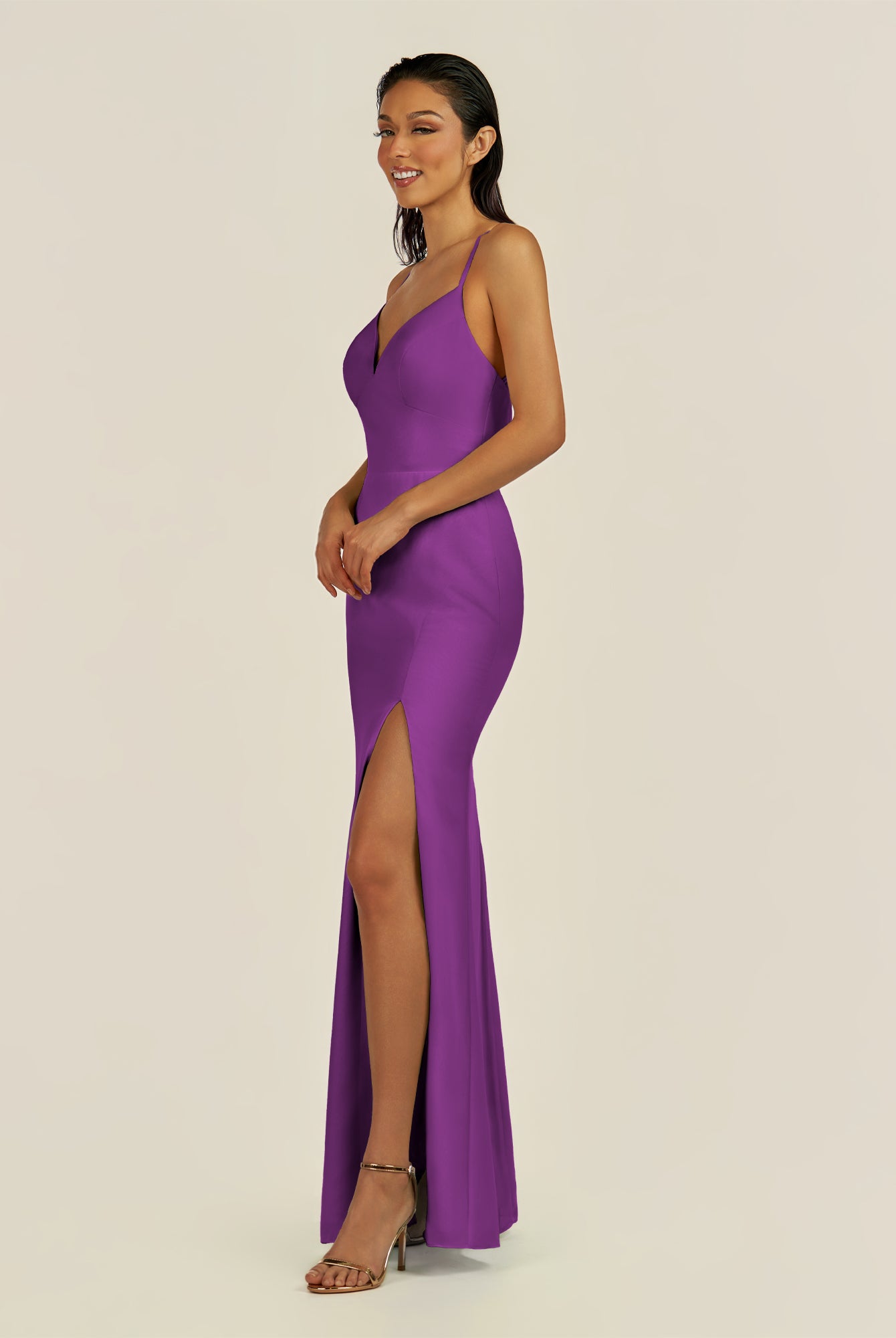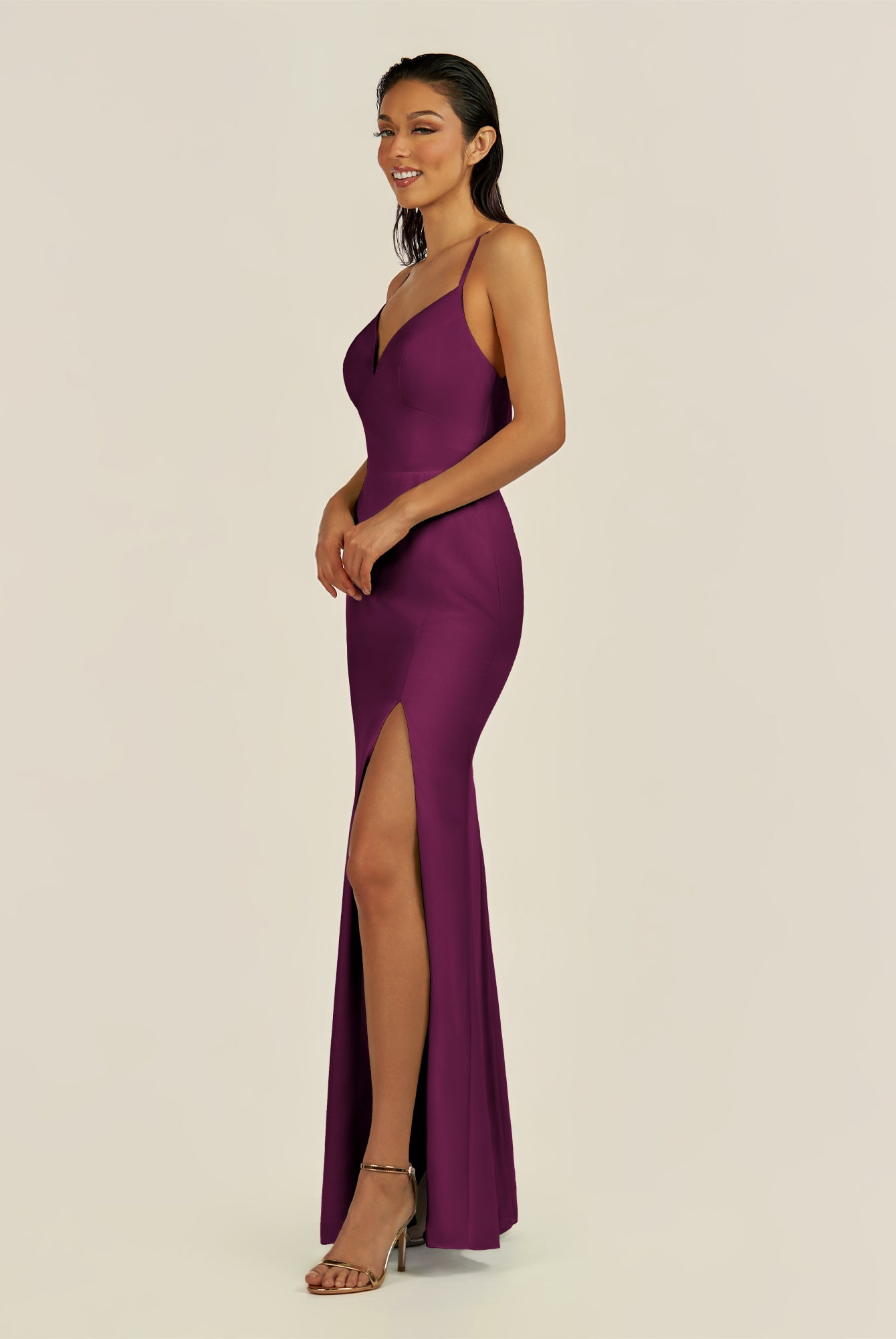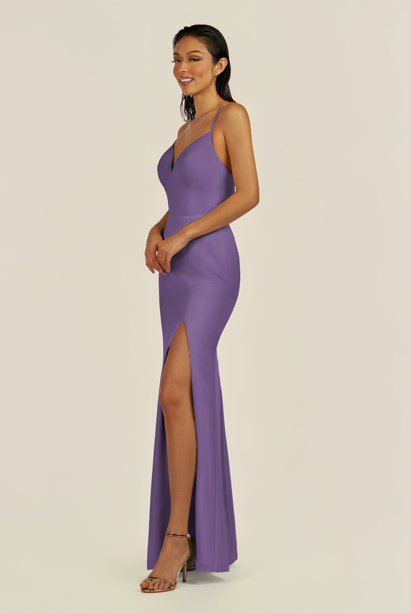 Zeryn | Amethyst - Sheath V Neck Chiffon Long Bridesmaid Dress with Slit