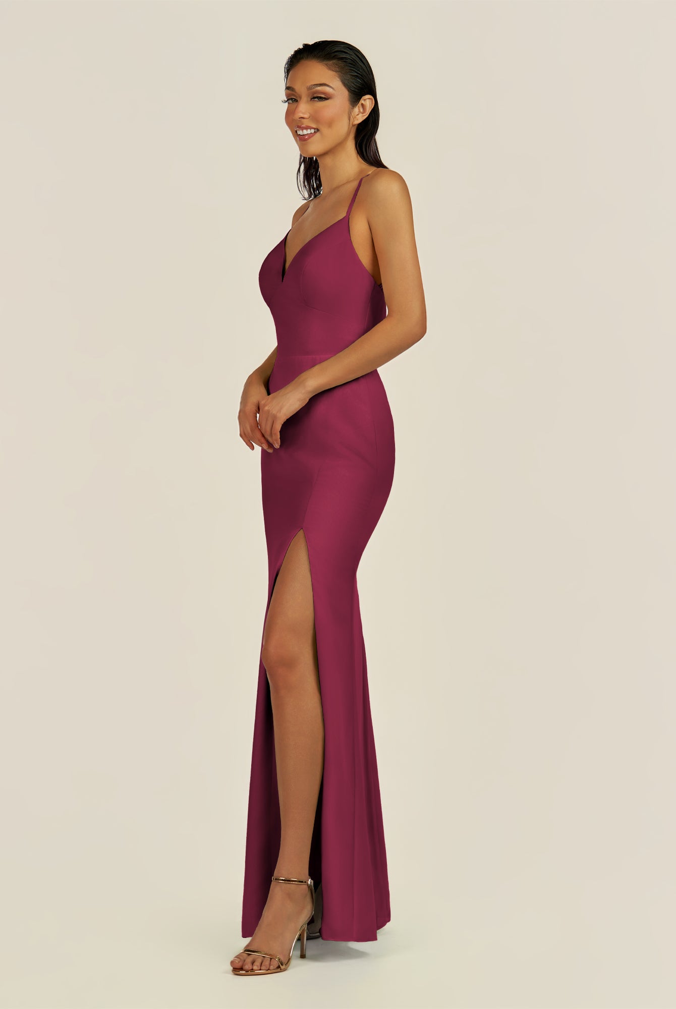 Zeryn | Fig - Sheath V Neck Chiffon Long Bridesmaid Dress with Slit