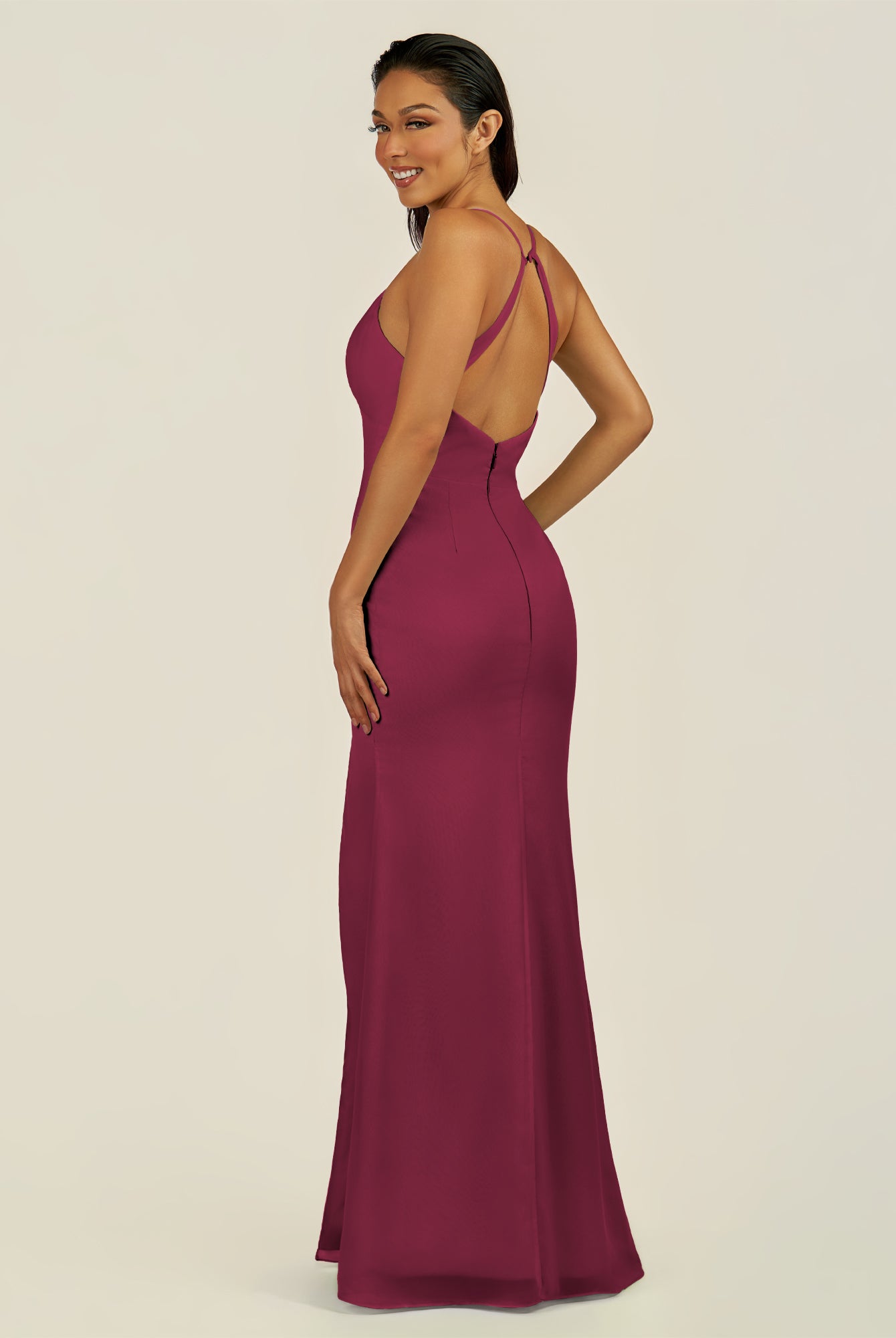 Zeryn | Tahiti - Sheath V Neck Chiffon Long Bridesmaid Dress with Slit