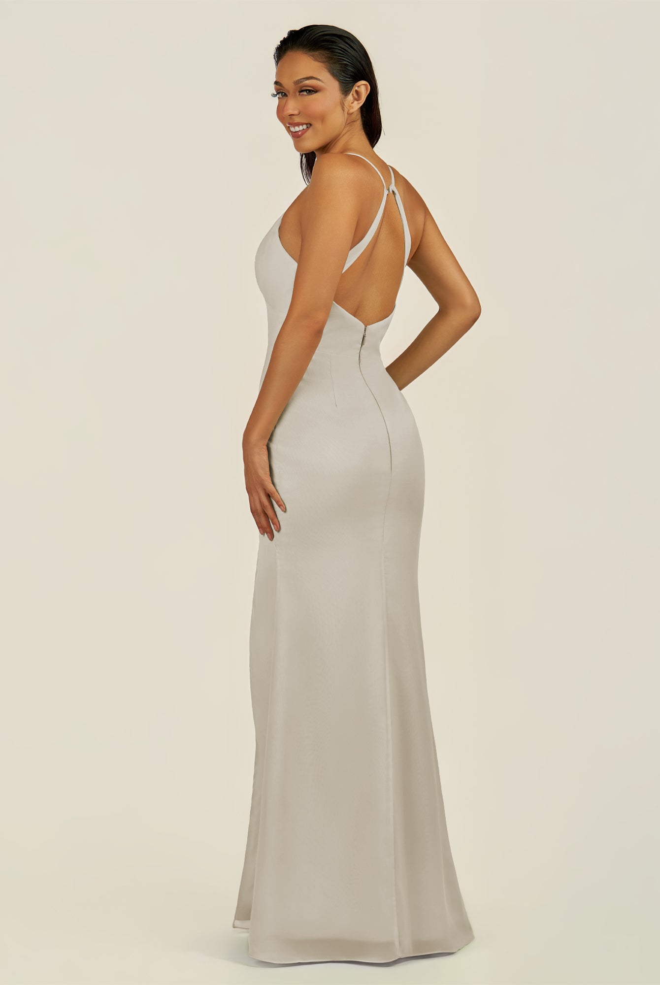 Zeryn | Dove Gray - Sheath V Neck Chiffon Long Bridesmaid Dress with Slit