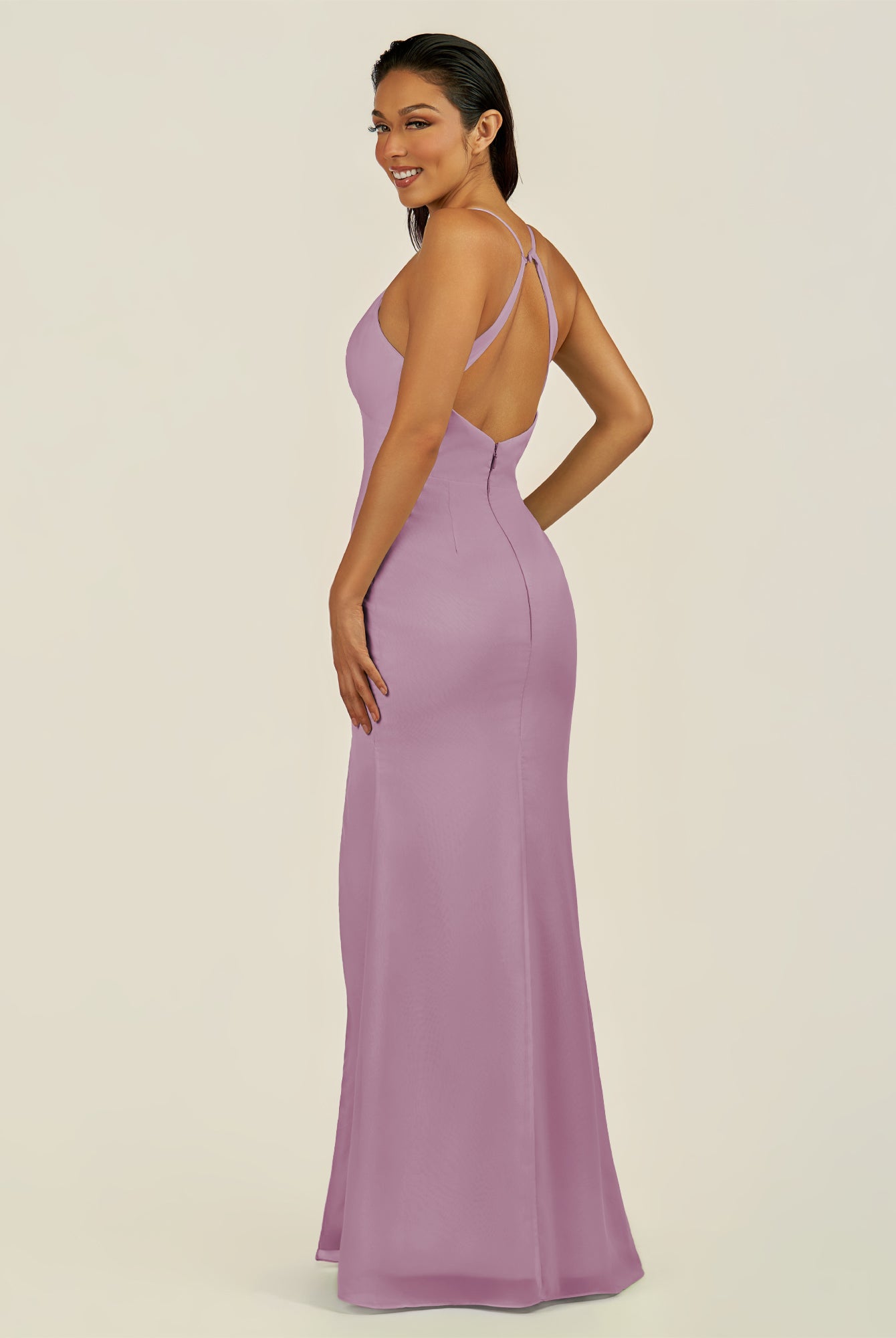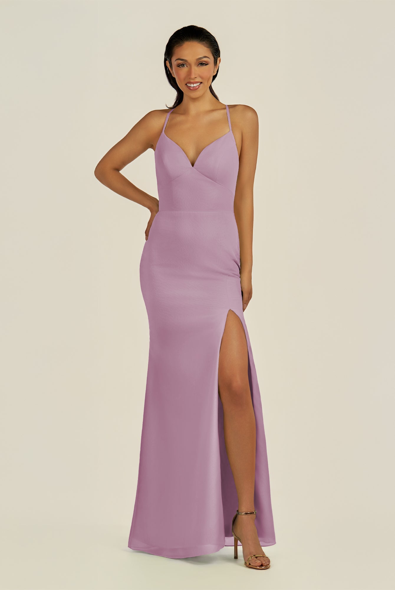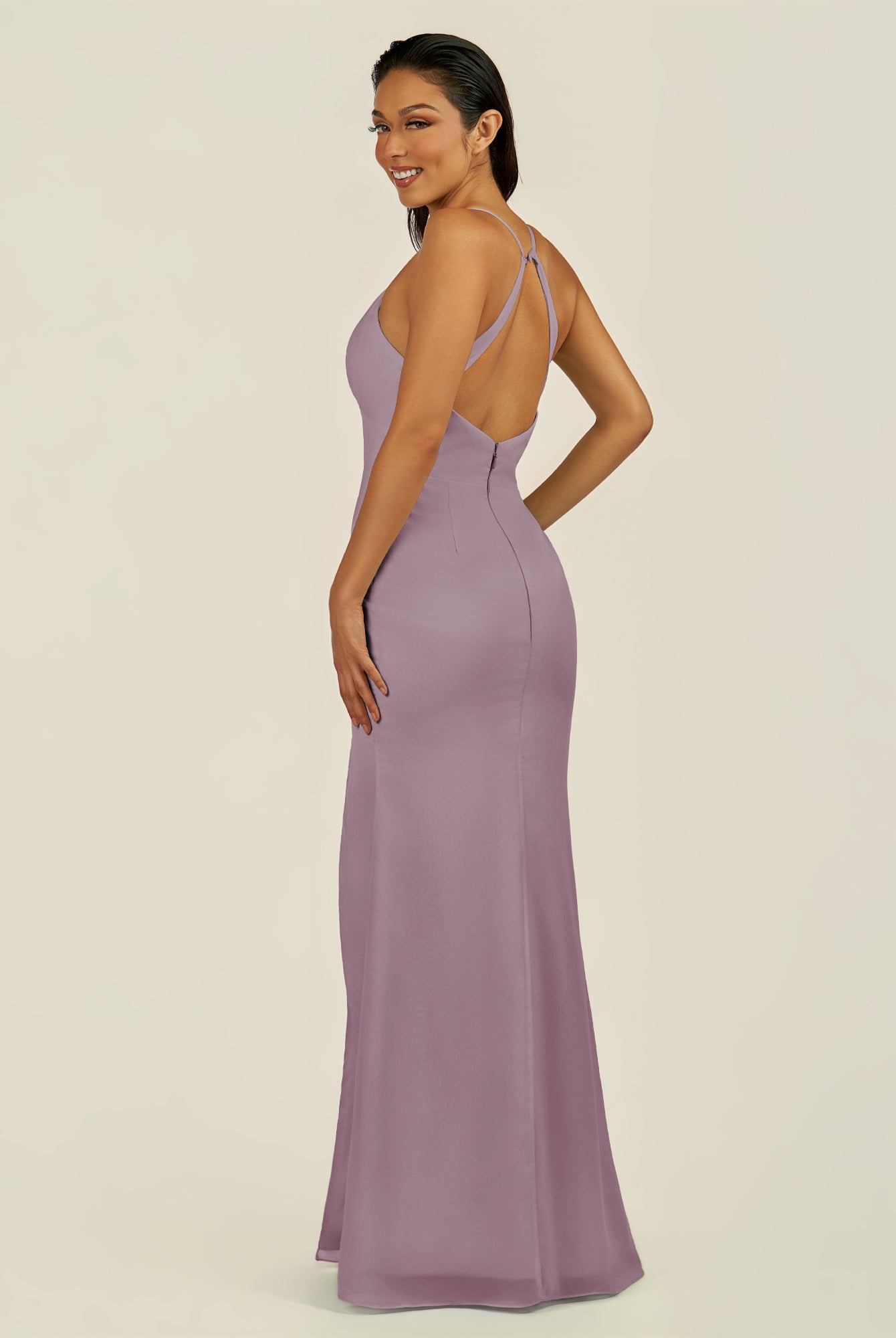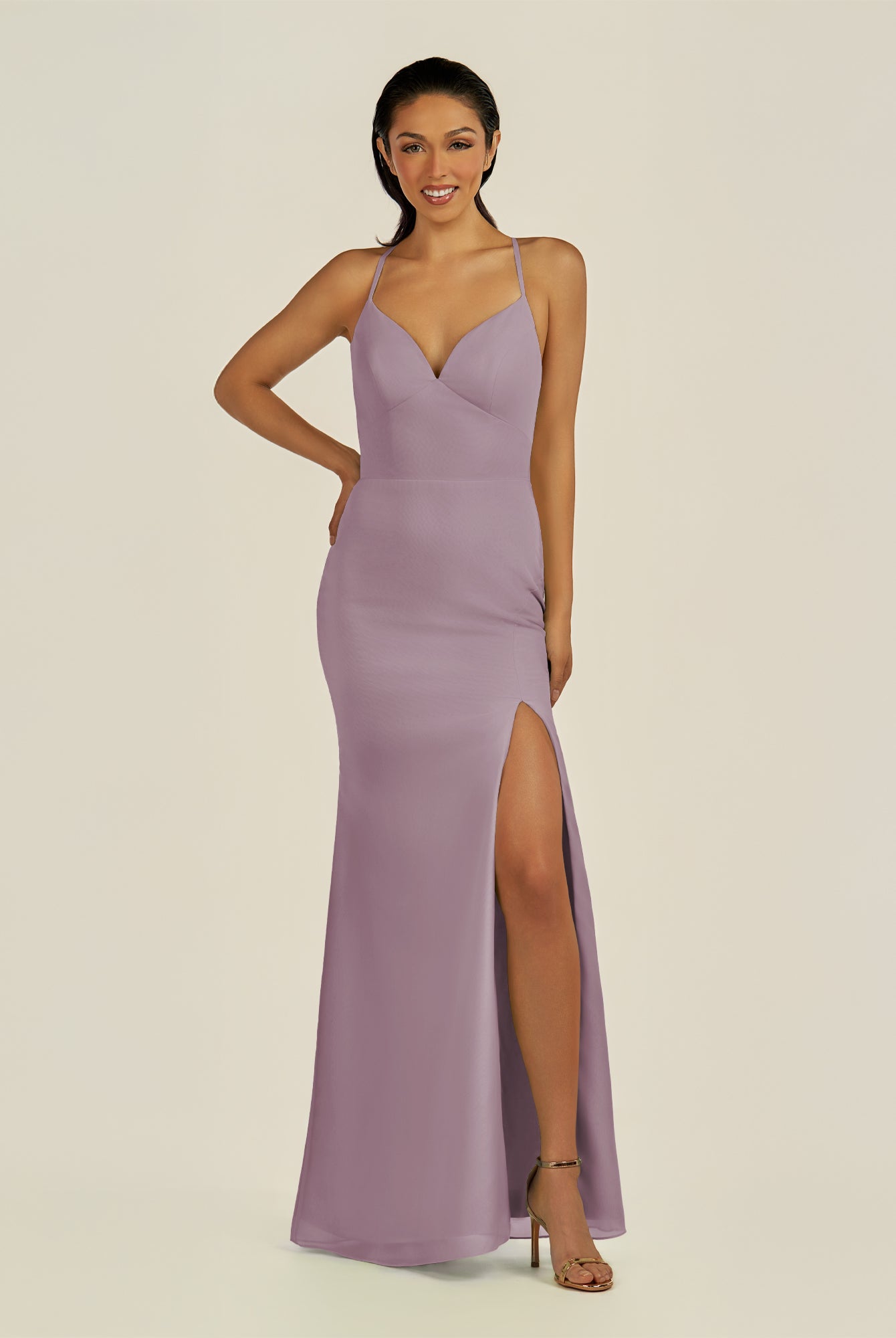 Zeryn | Wisteria - Sheath V Neck Chiffon Long Bridesmaid Dress with Slit