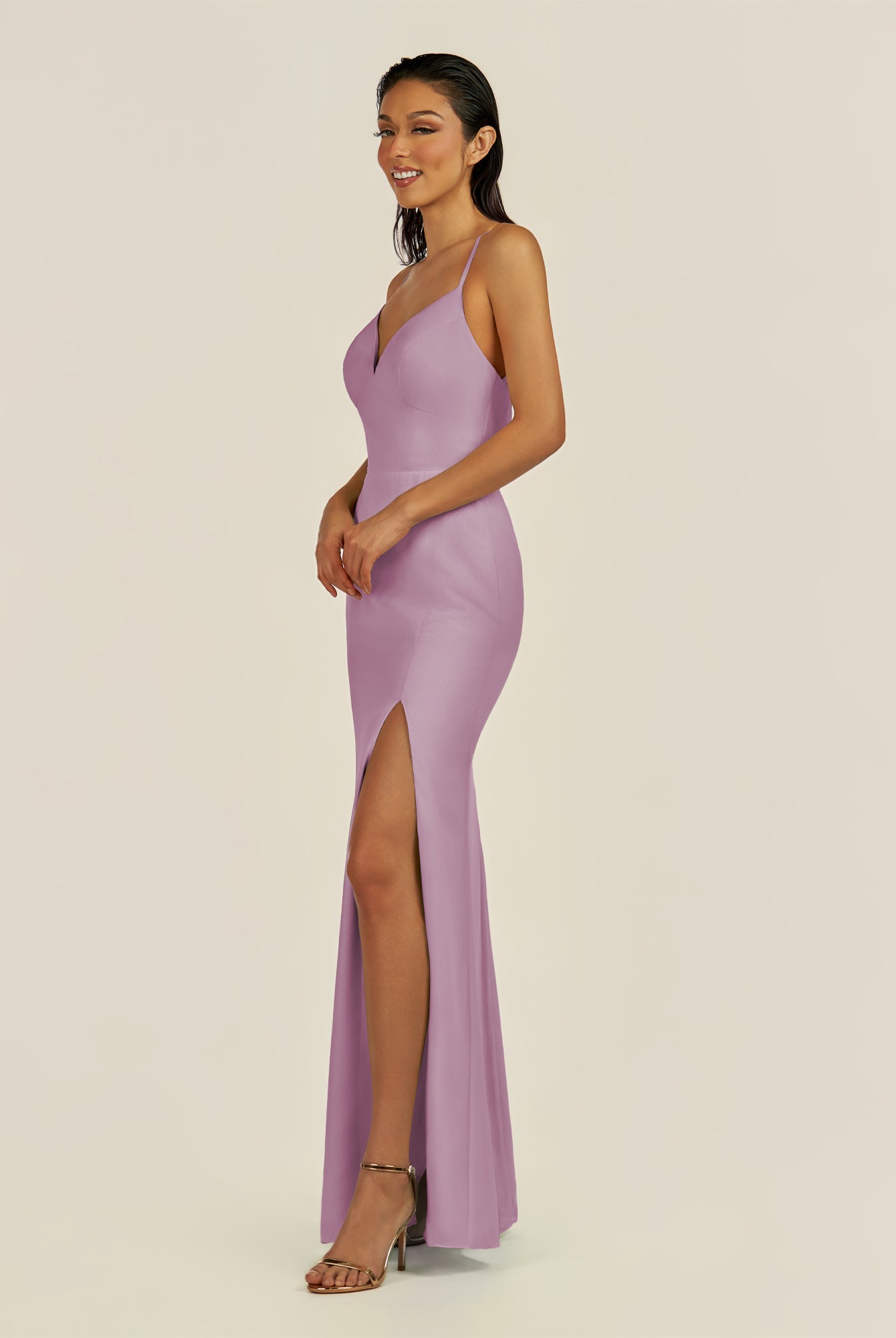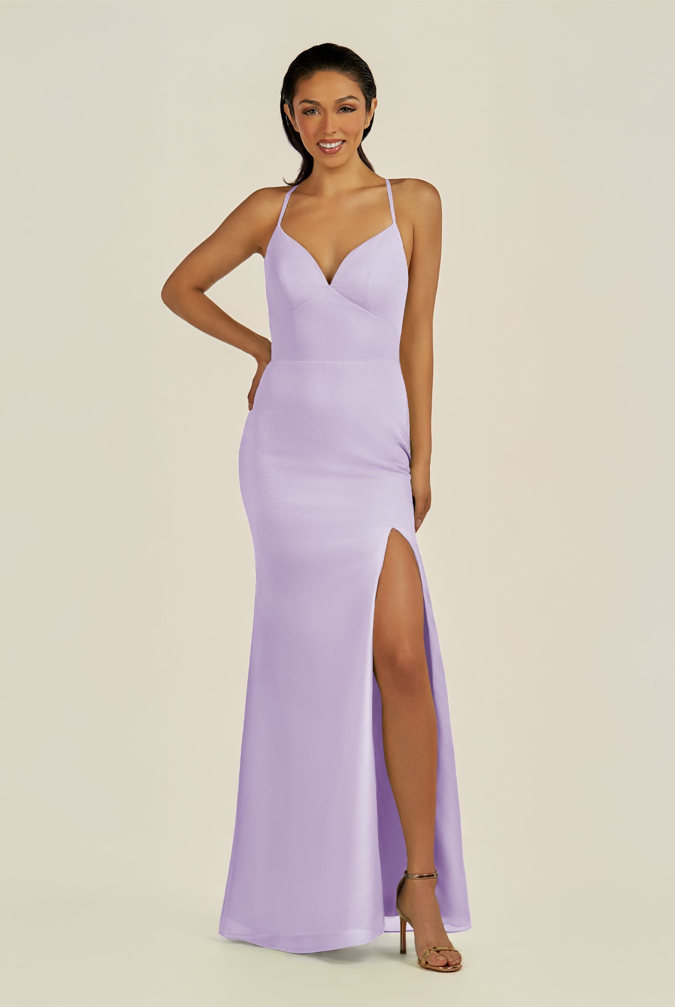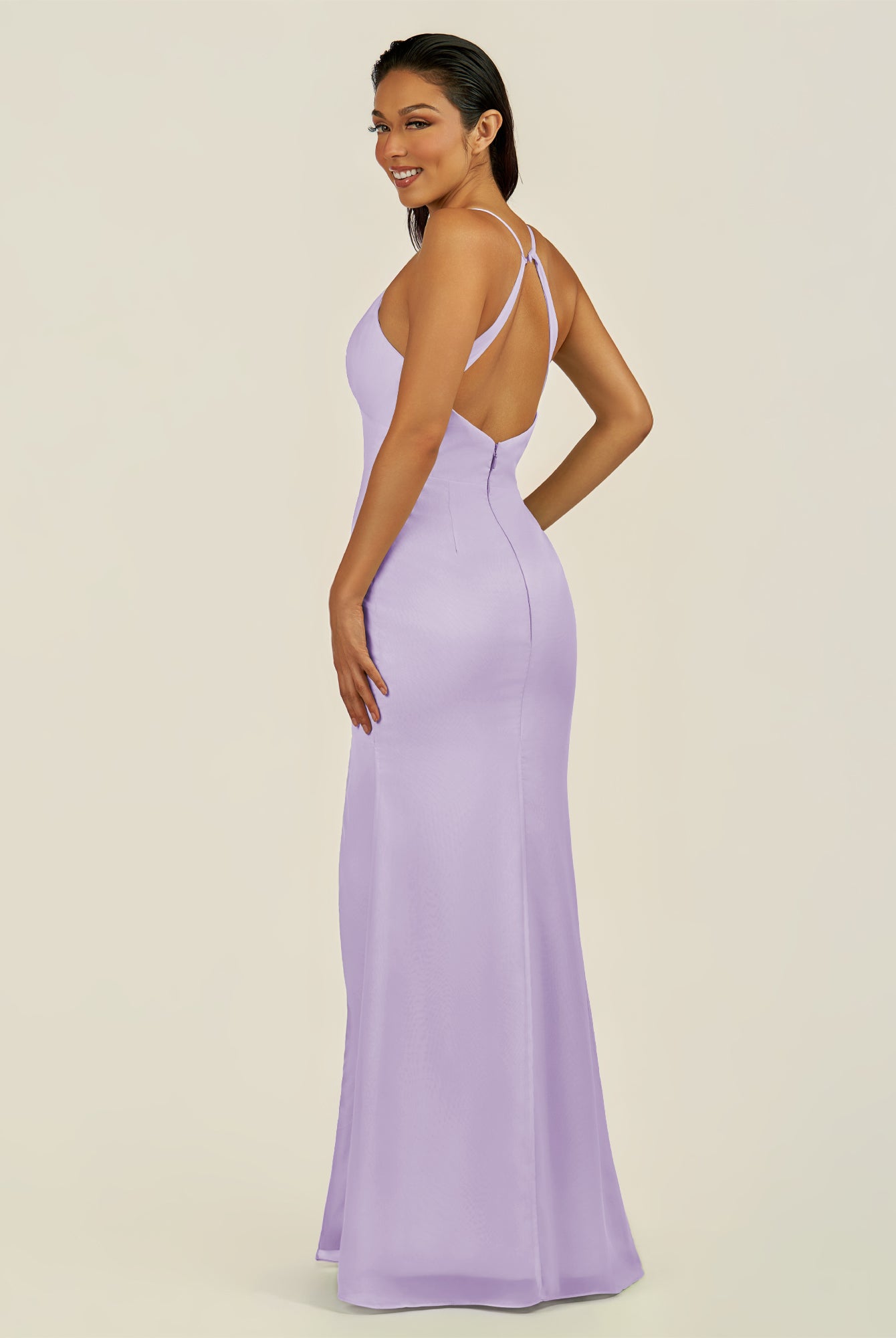 Zeryn | Lavender - Sheath V Neck Chiffon Long Bridesmaid Dress with Slit