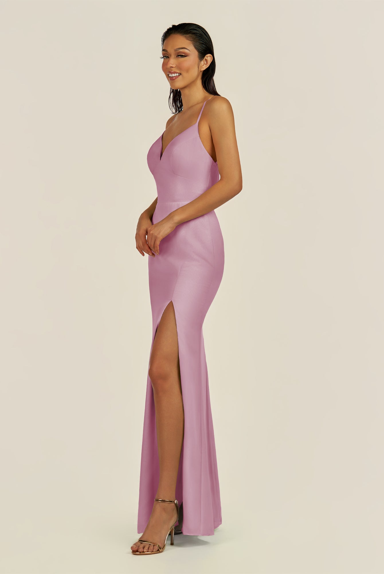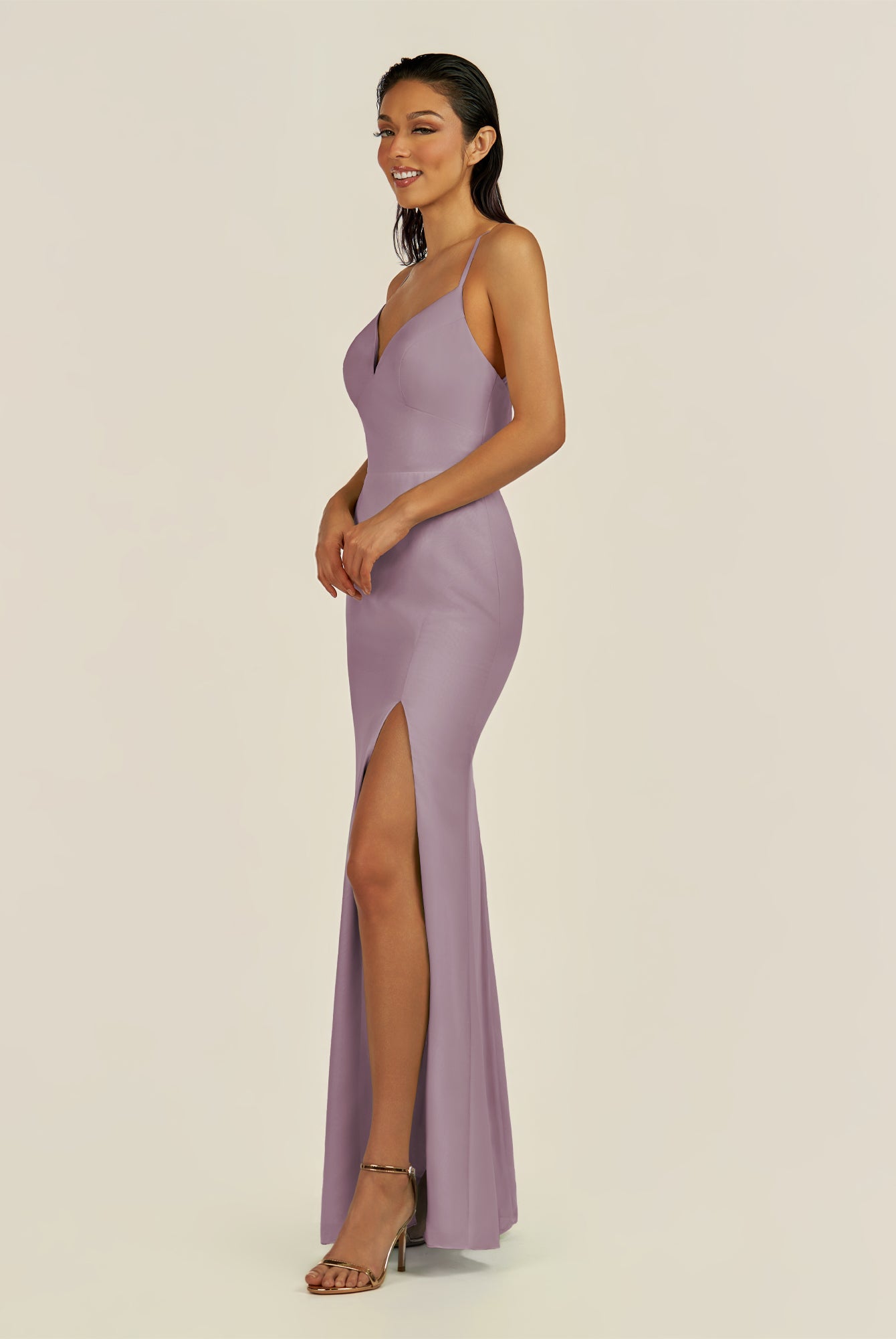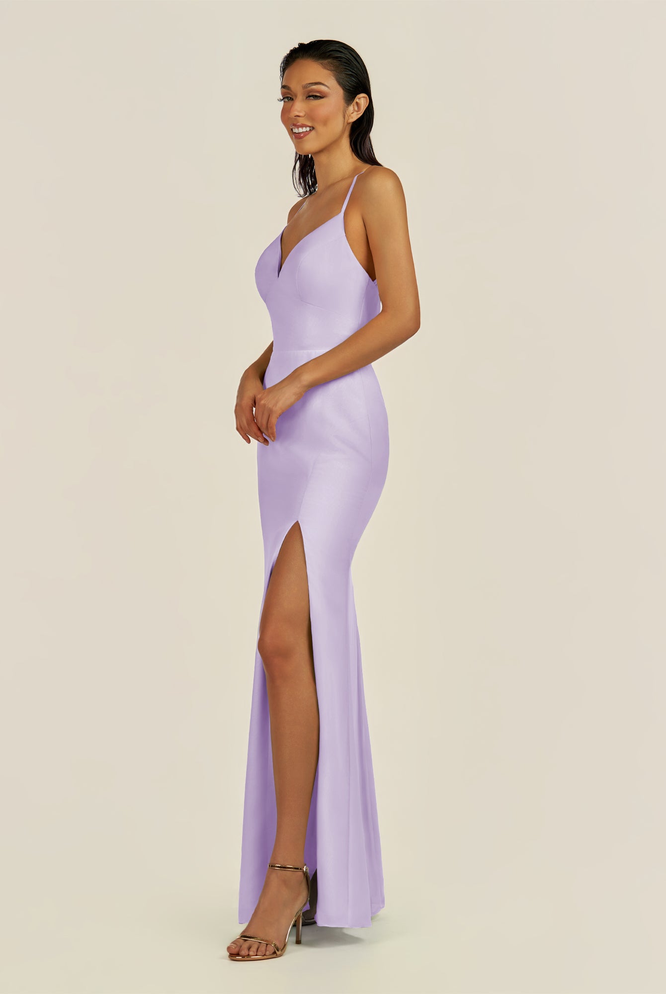 Zeryn | Lavender - Sheath V Neck Chiffon Long Bridesmaid Dress with Slit