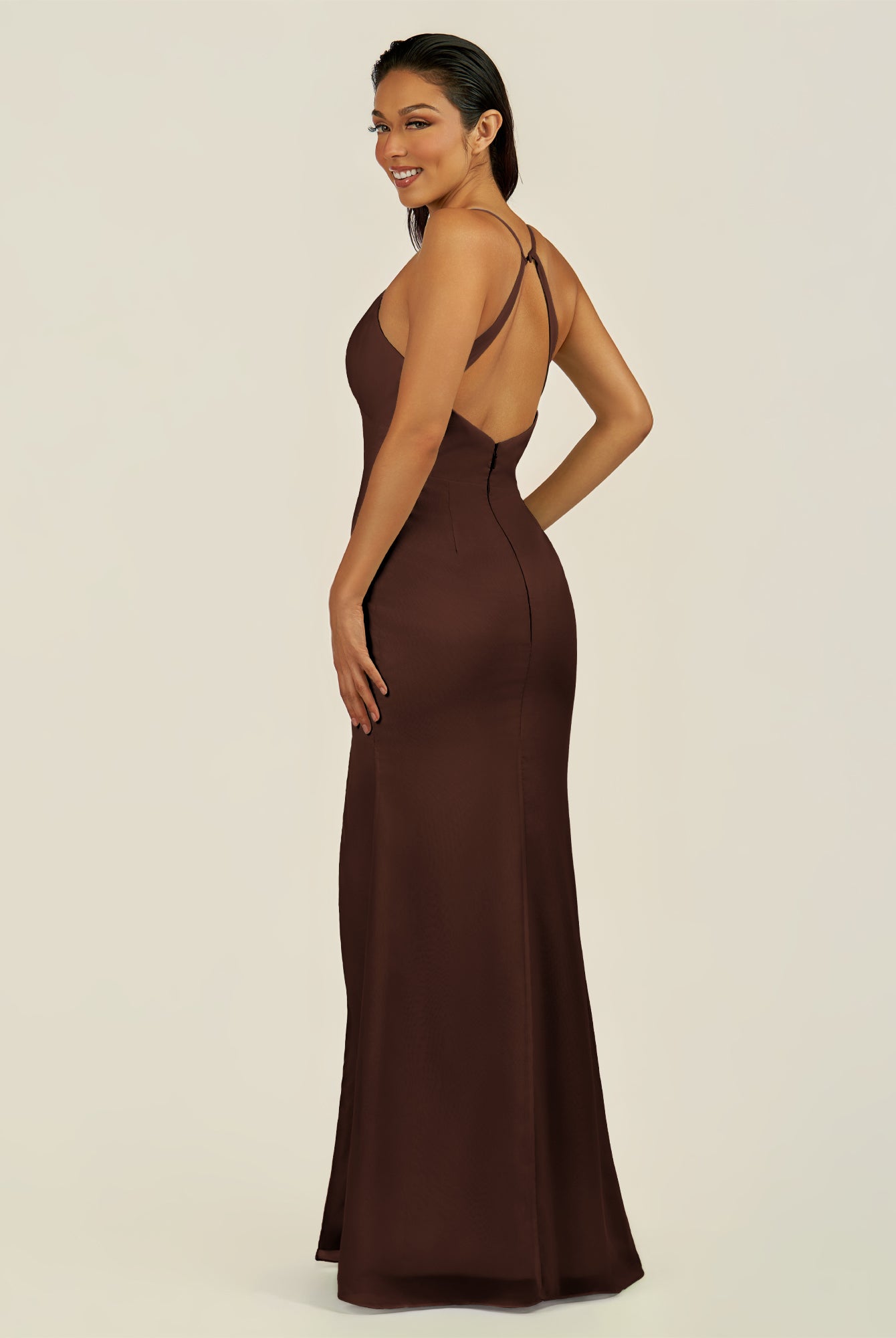 Zeryn | Espresso - Sheath V Neck Chiffon Long Bridesmaid Dress with Slit