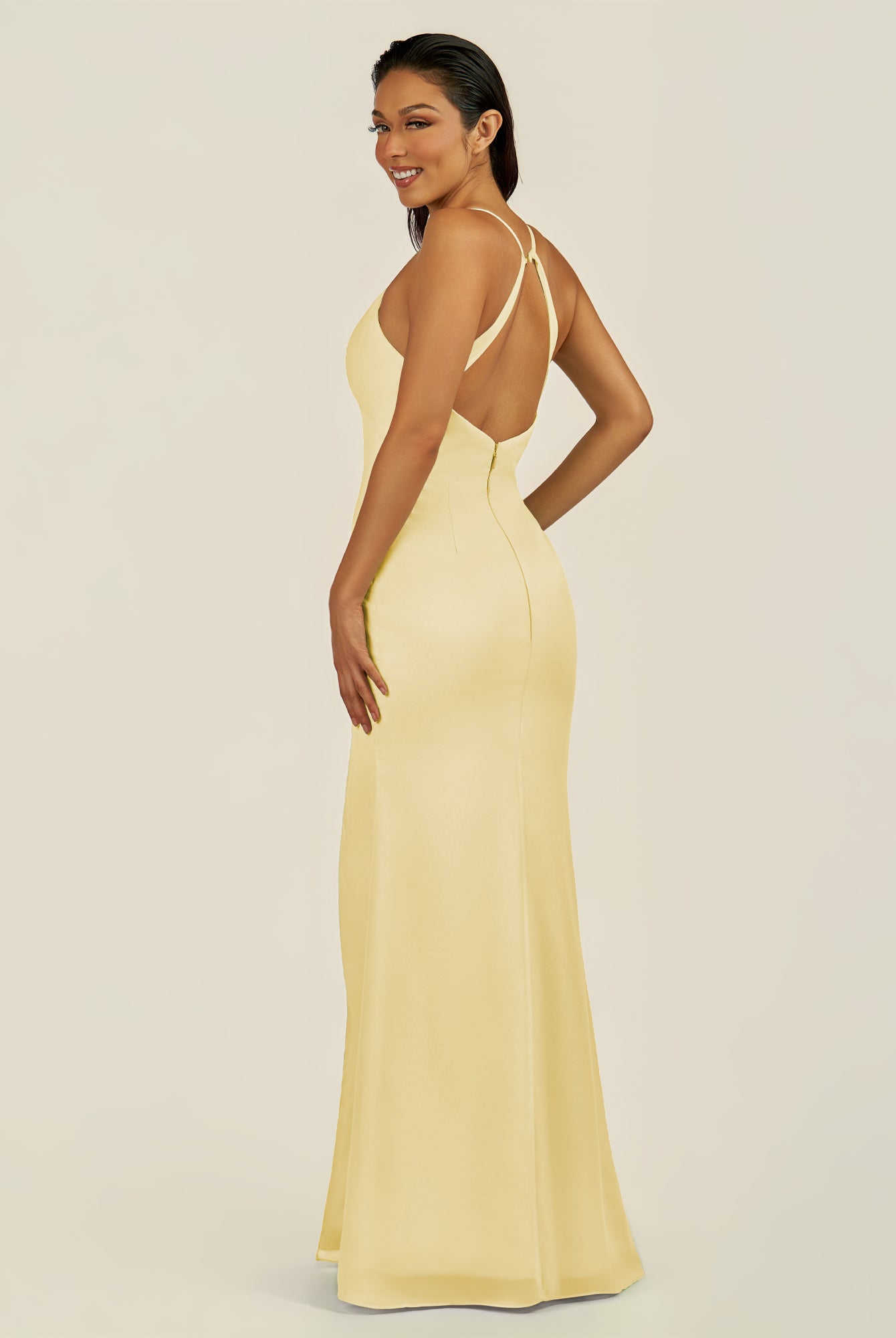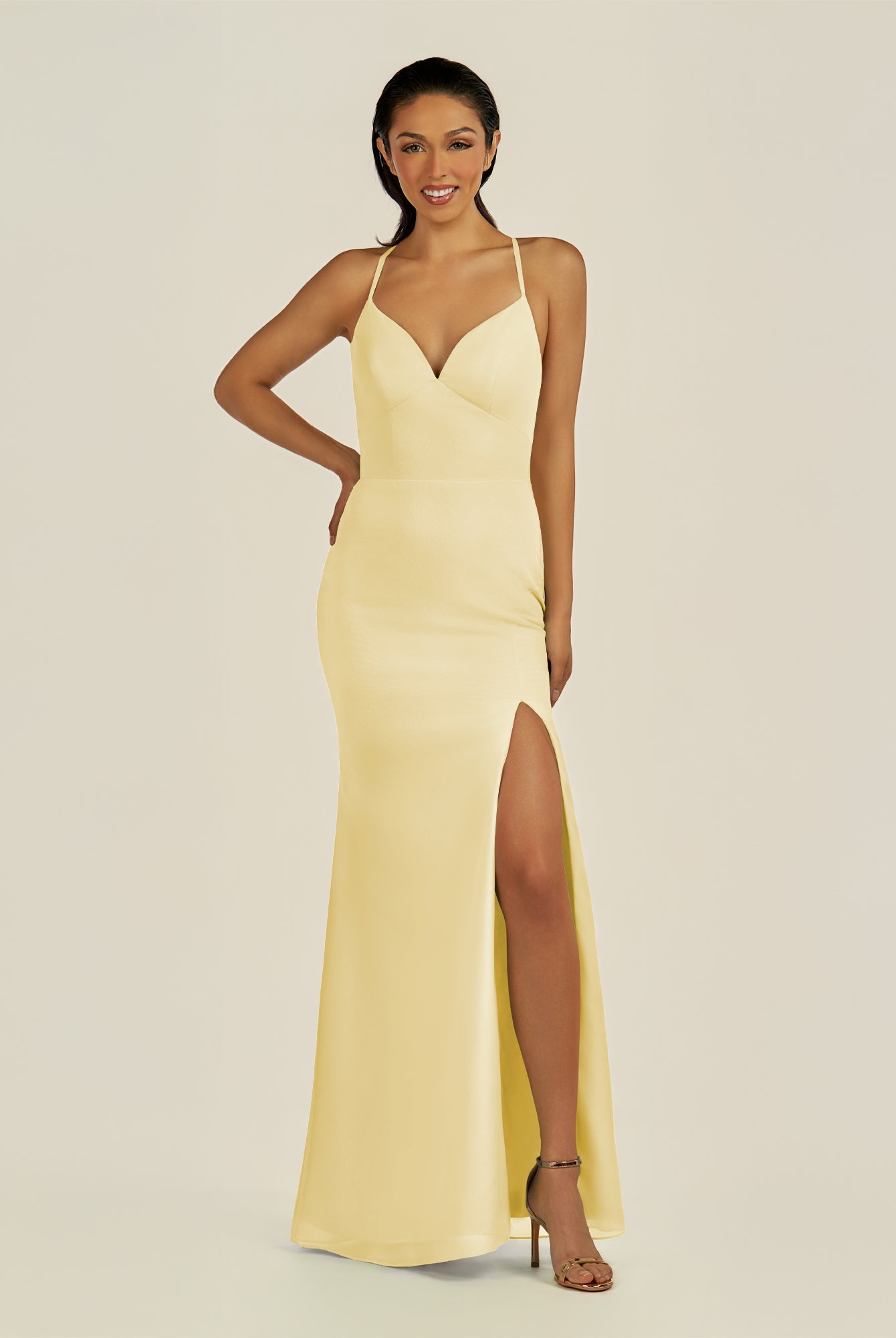 Zeryn | Pastel Yellow - Sheath V Neck Chiffon Long Bridesmaid Dress with Slit