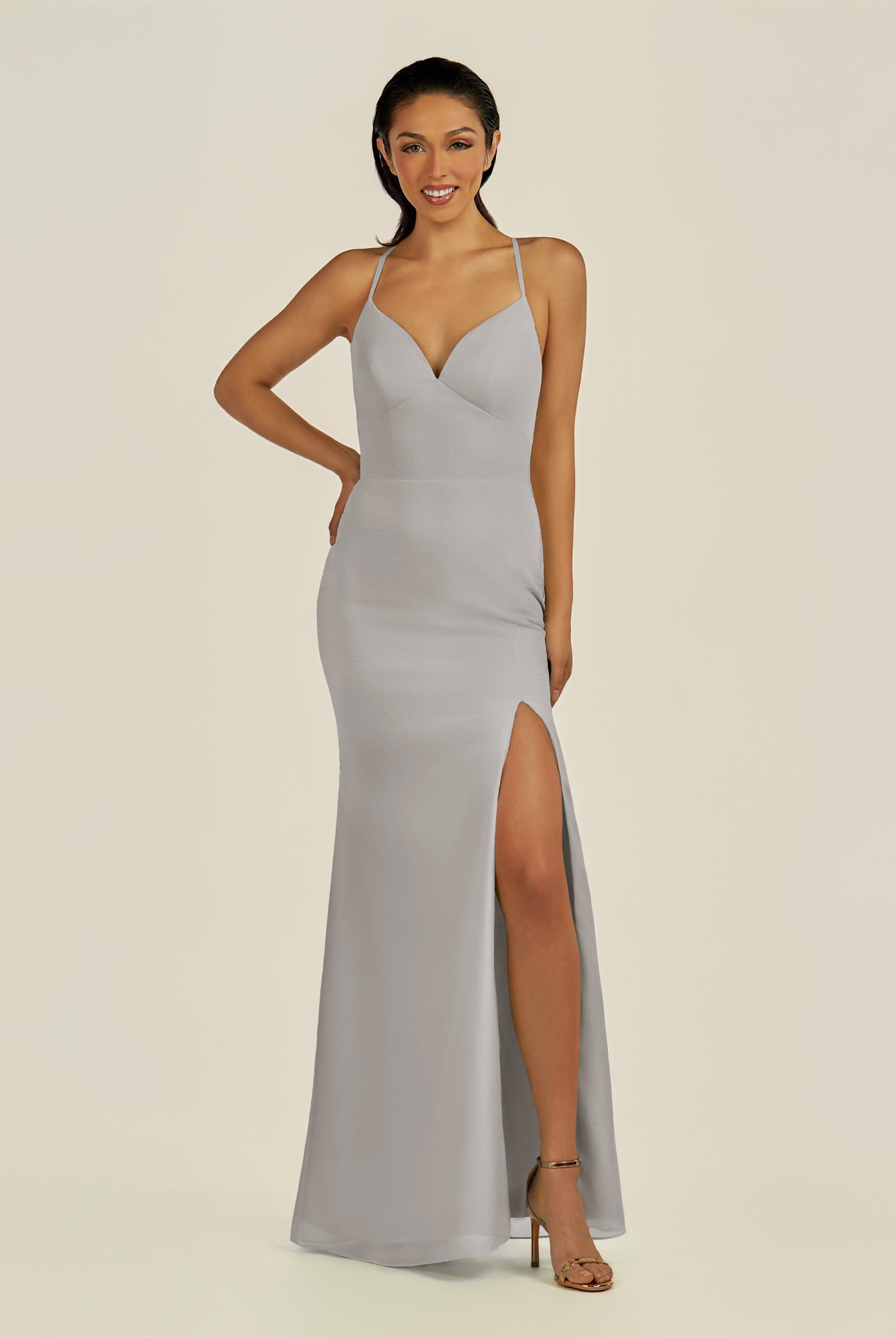 Zeryn | Frost - Sheath V Neck Chiffon Long Bridesmaid Dress with Slit