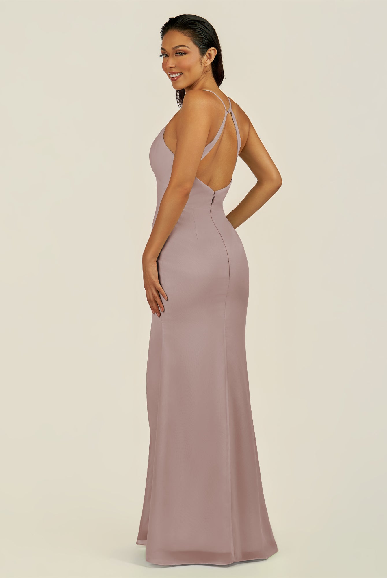 Zeryn | Vintage Mauve - Sheath V Neck Chiffon Long Bridesmaid Dress with Slit