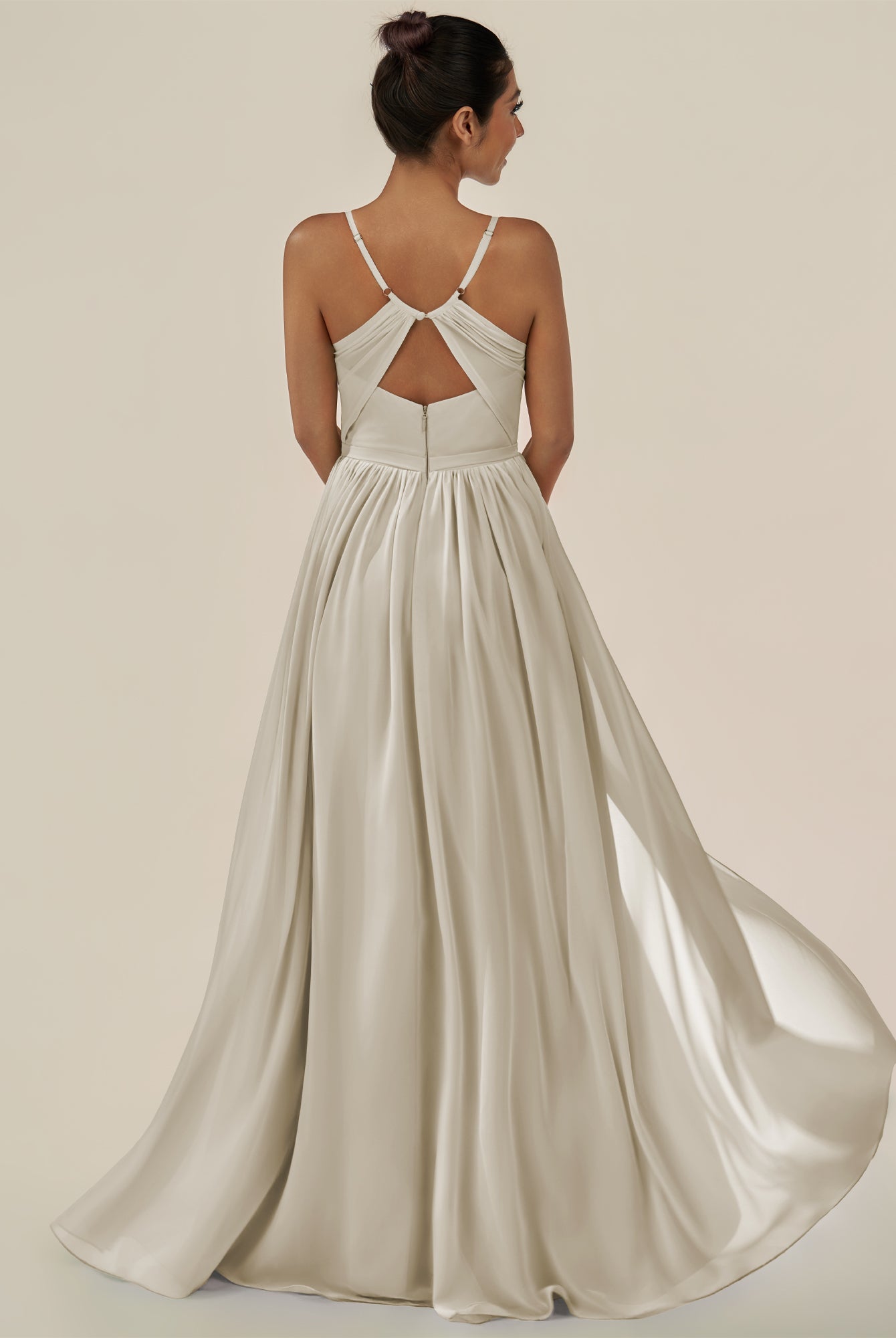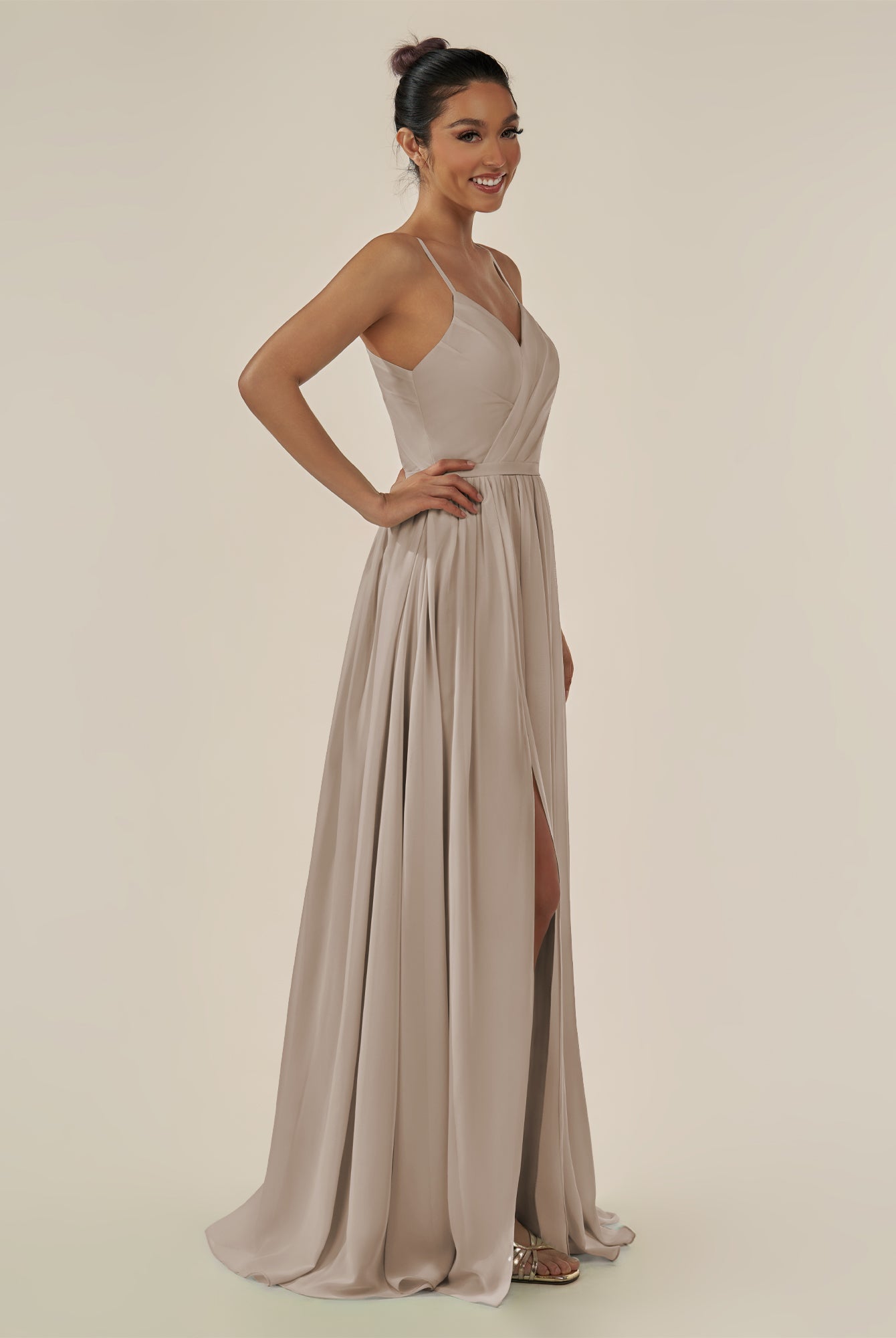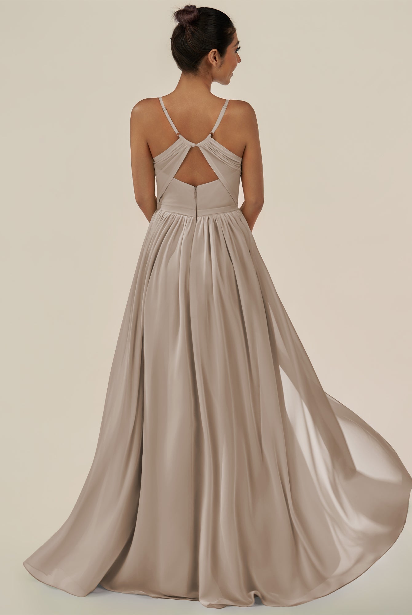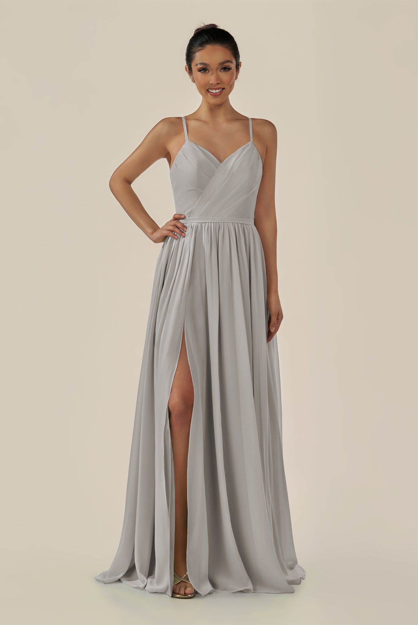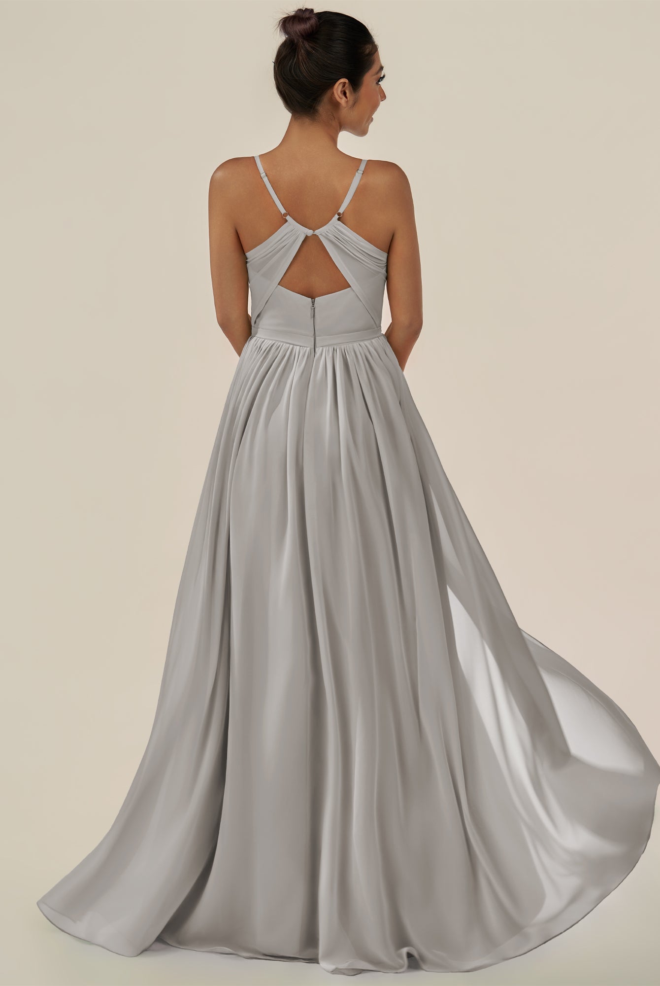 Irissa | Dove Gray - A Line Chiffon V Neck Pleated Long Bridesmaid Dress with Slit