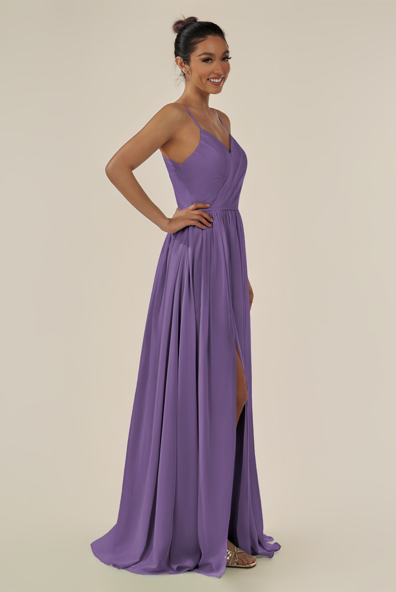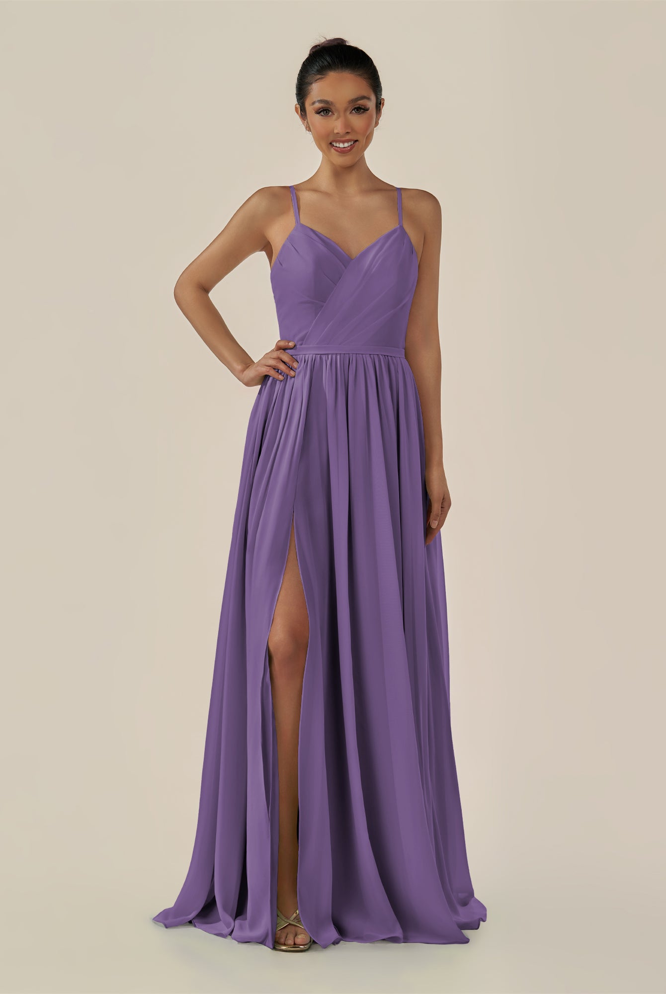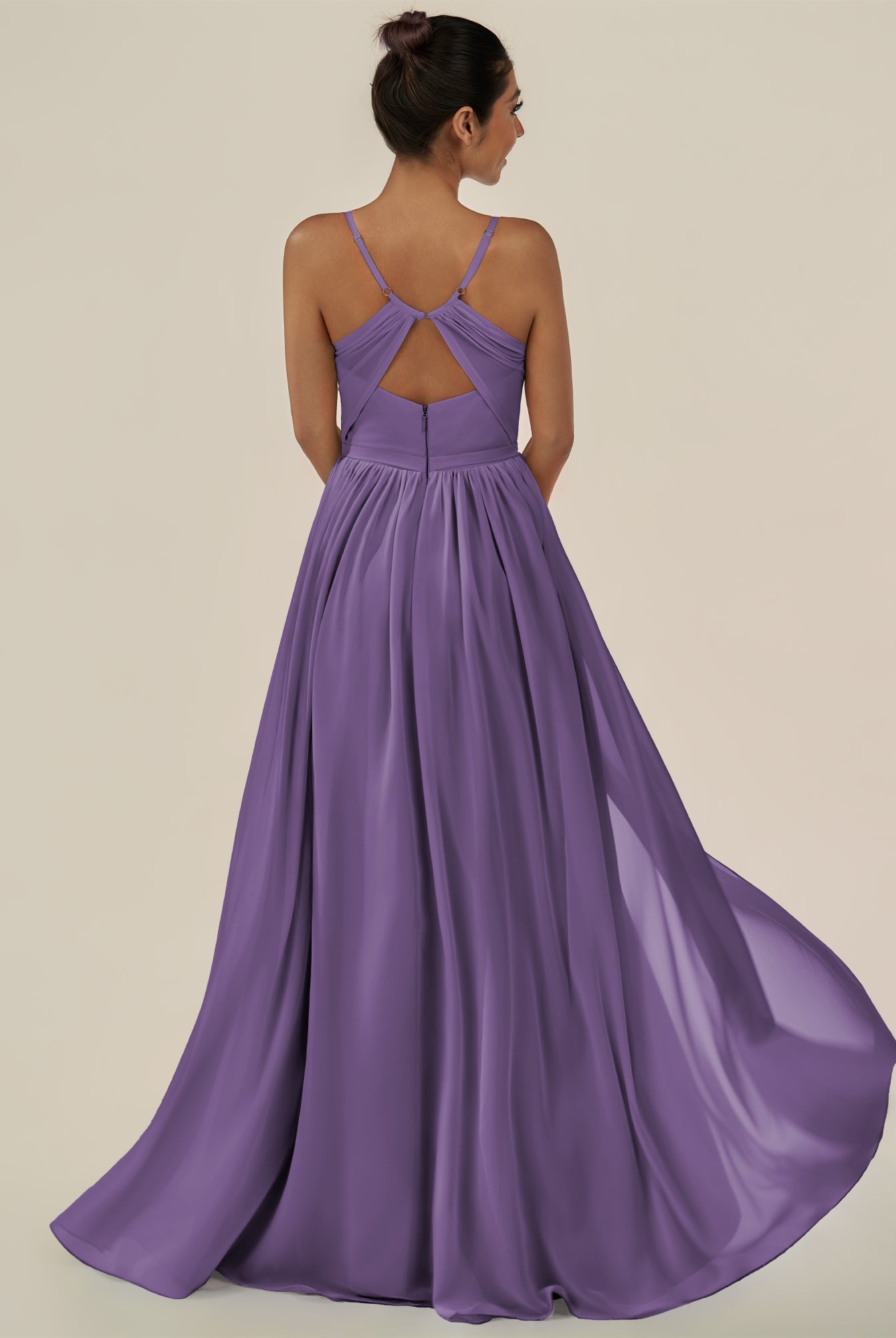 Irissa | Wisteria - A Line Chiffon V Neck Pleated Long Bridesmaid Dress with Slit