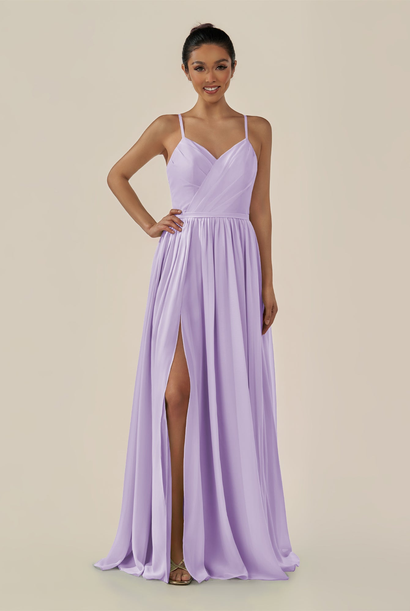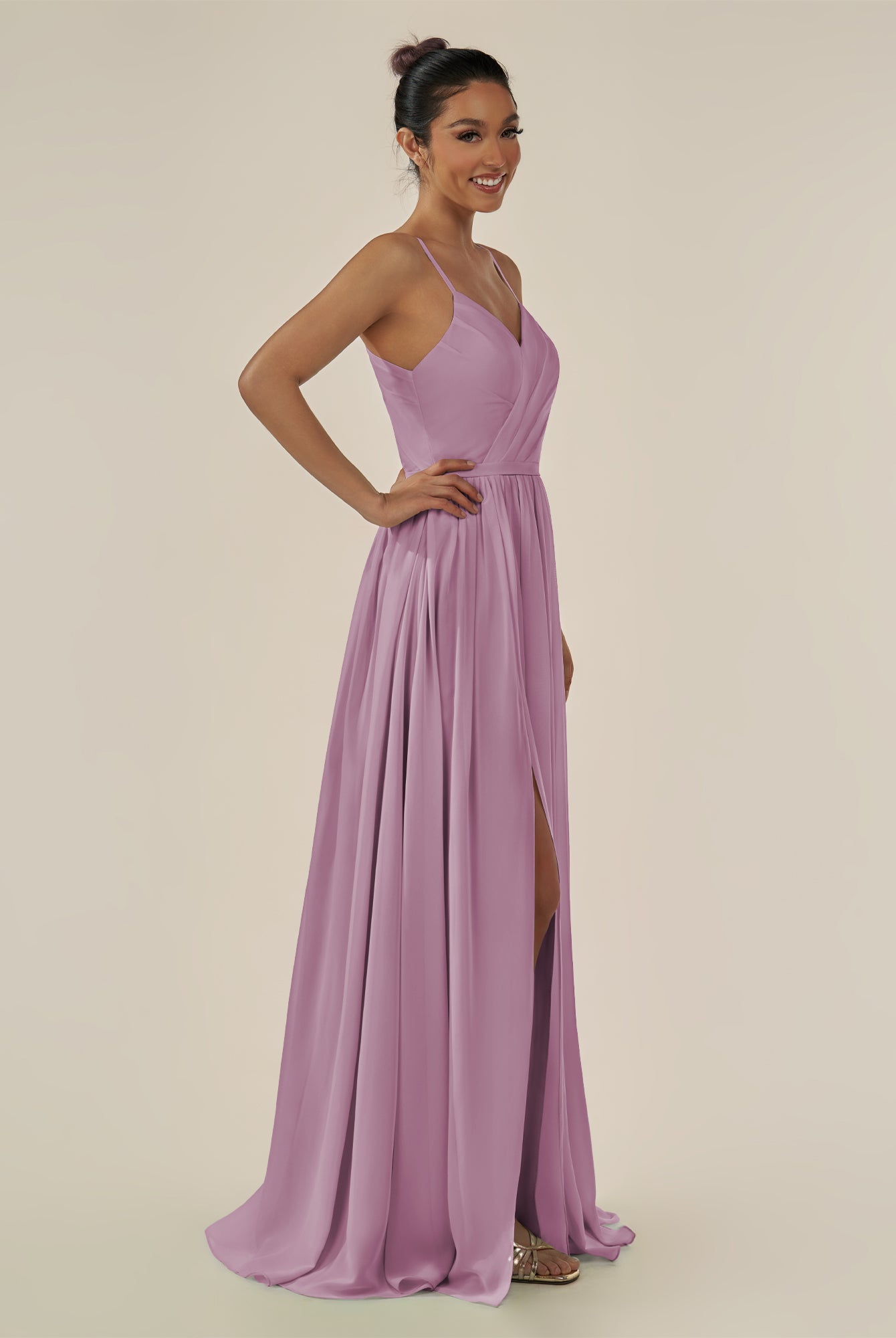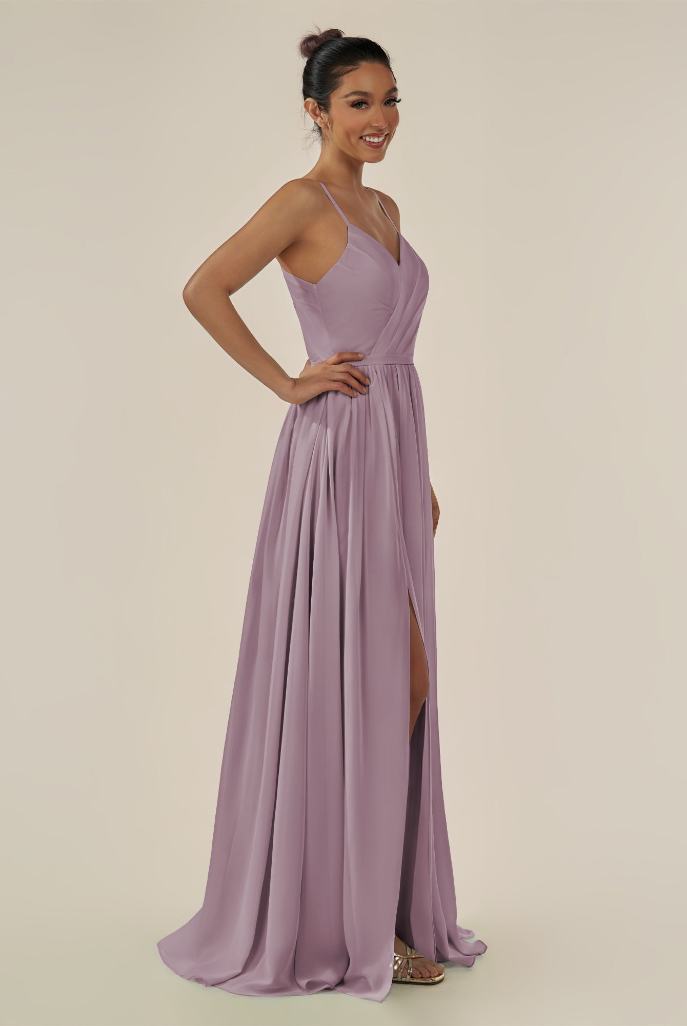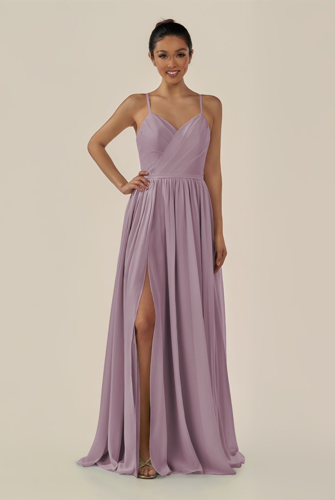 Irissa | Wisteria - A Line Chiffon V Neck Pleated Long Bridesmaid Dress with Slit