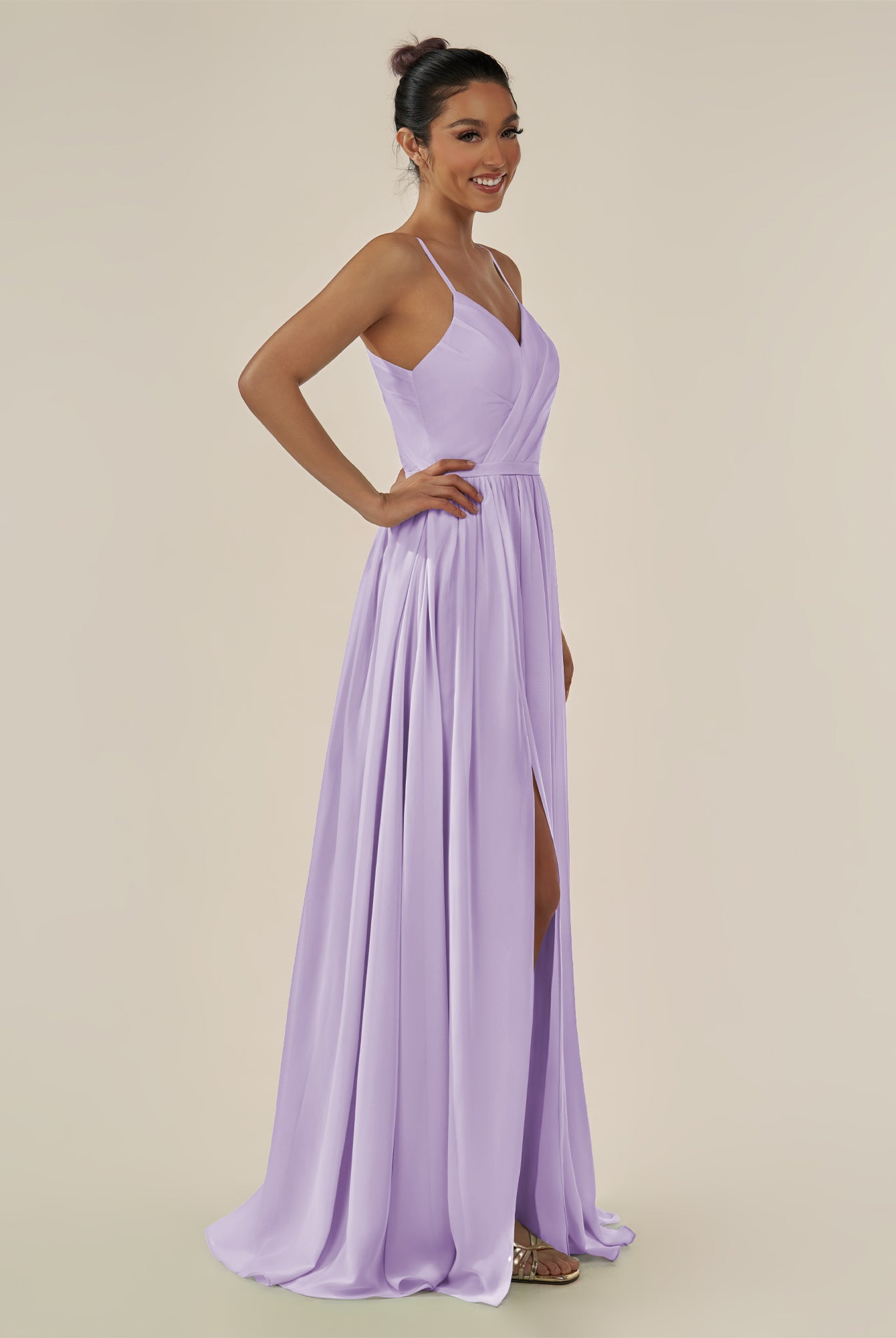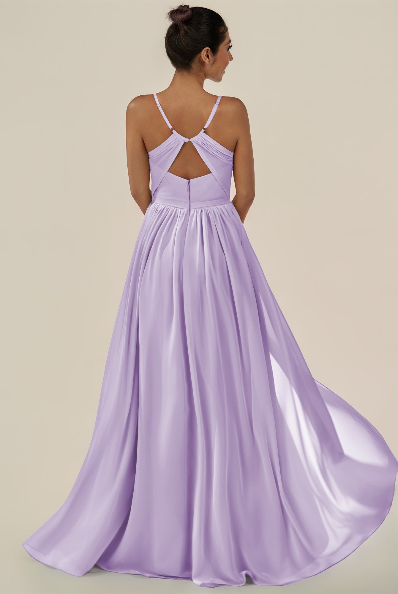 Irissa | Lavender - A Line Chiffon V Neck Pleated Long Bridesmaid Dress with Slit