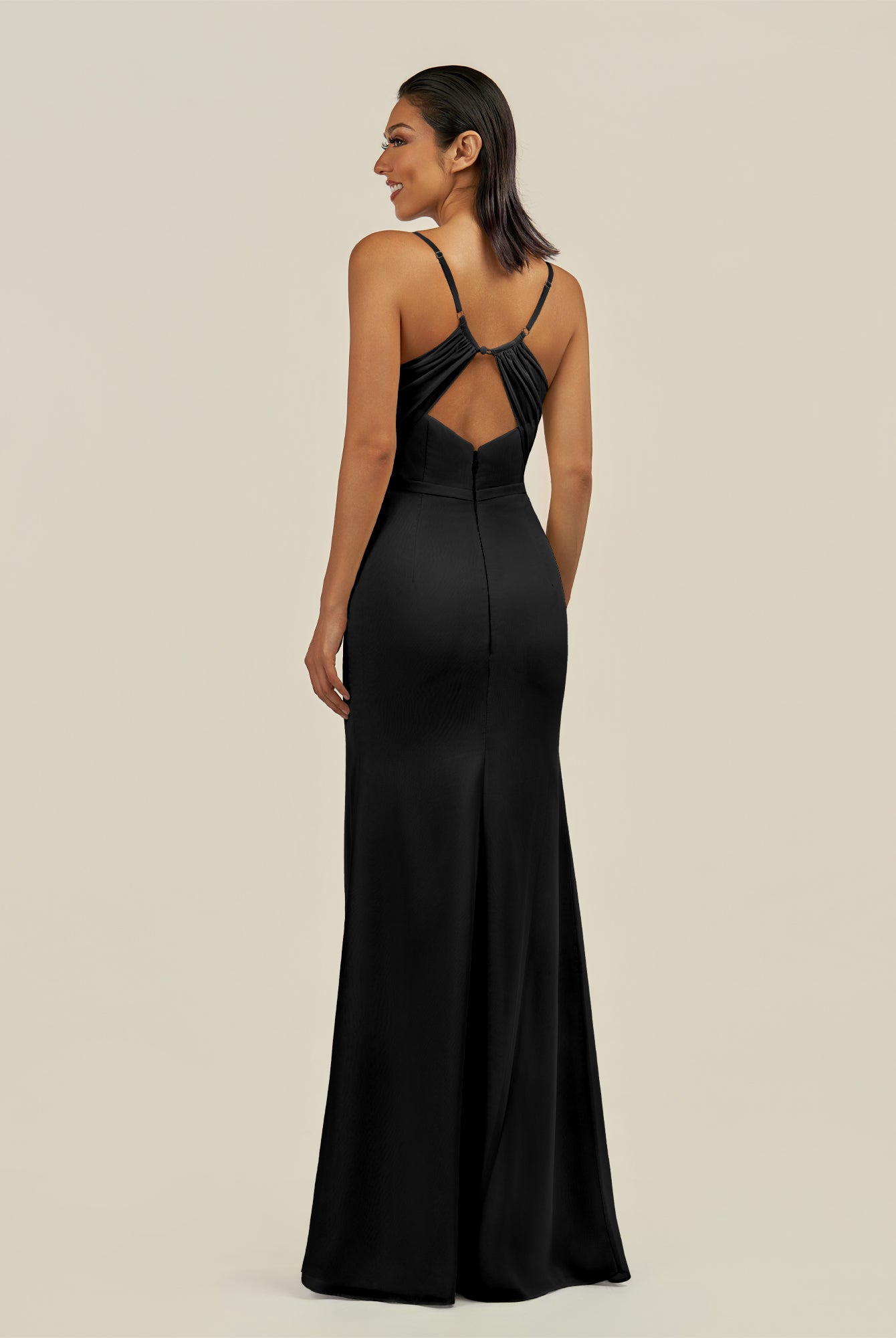 Kaelin | Black - Sheath Chiffon V Neck Long Bridesmaid Dress with Slit