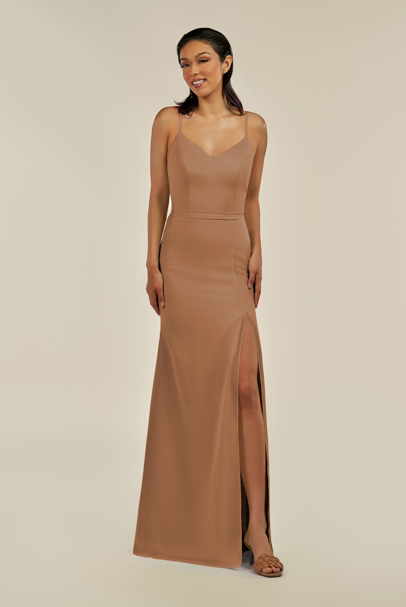 Kaelin | Toffee - Sheath Chiffon V Neck Long Bridesmaid Dress with Slit
