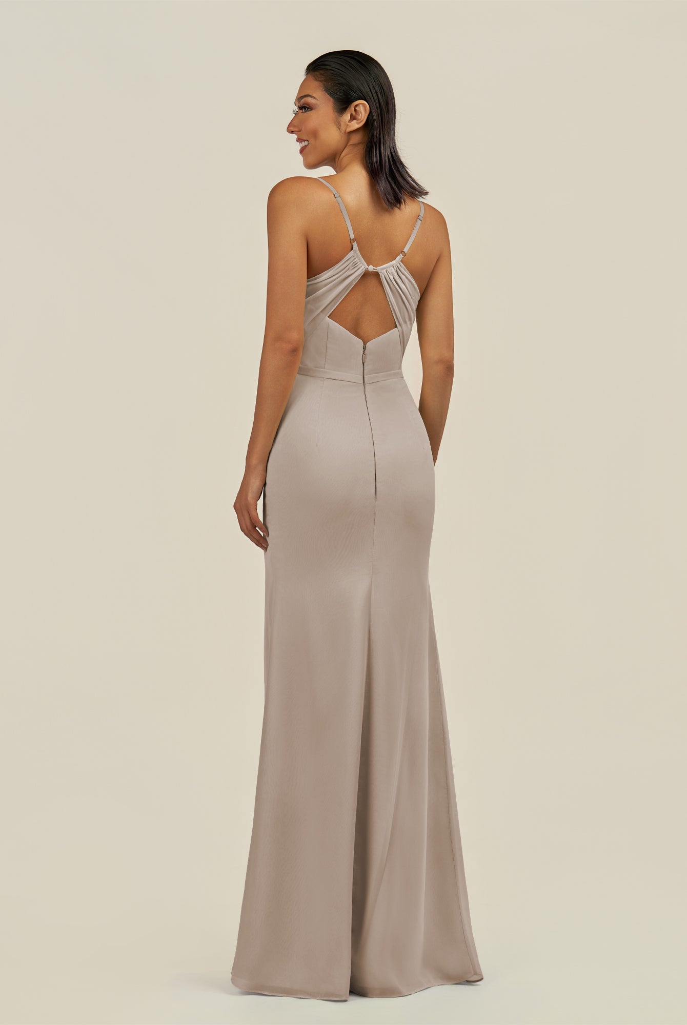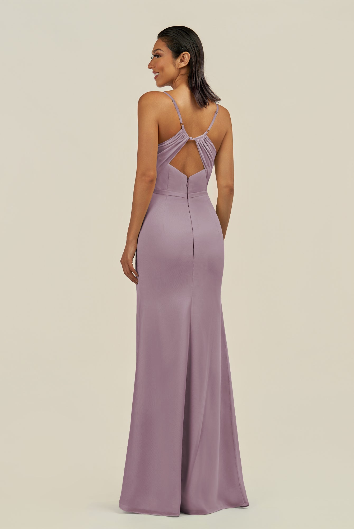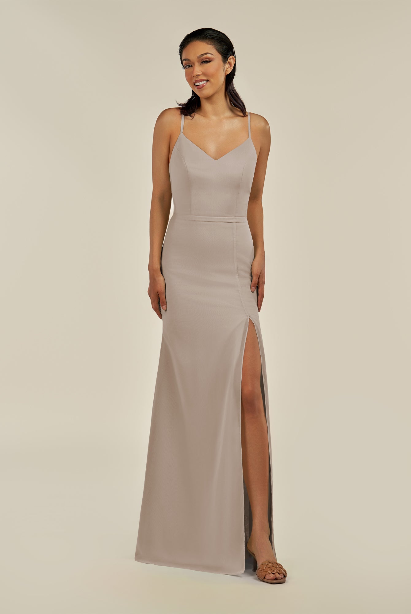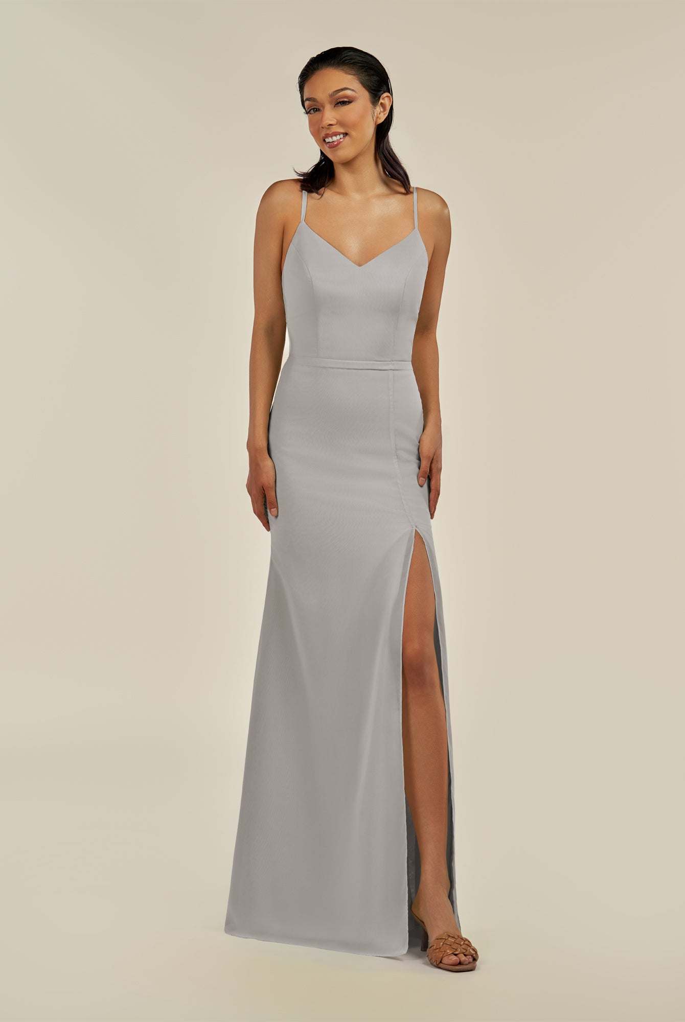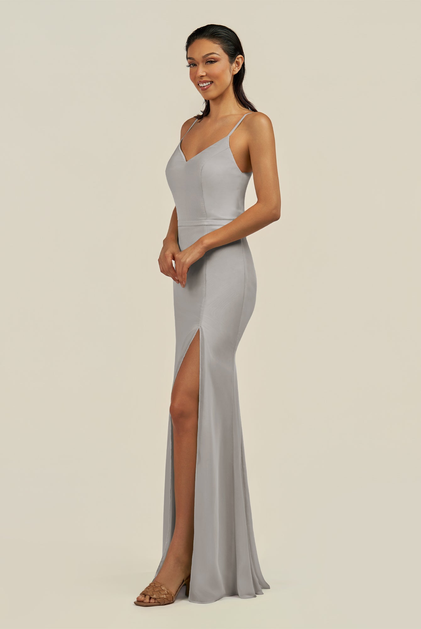 Kaelin | Frost - Sheath Chiffon V Neck Long Bridesmaid Dress with Slit