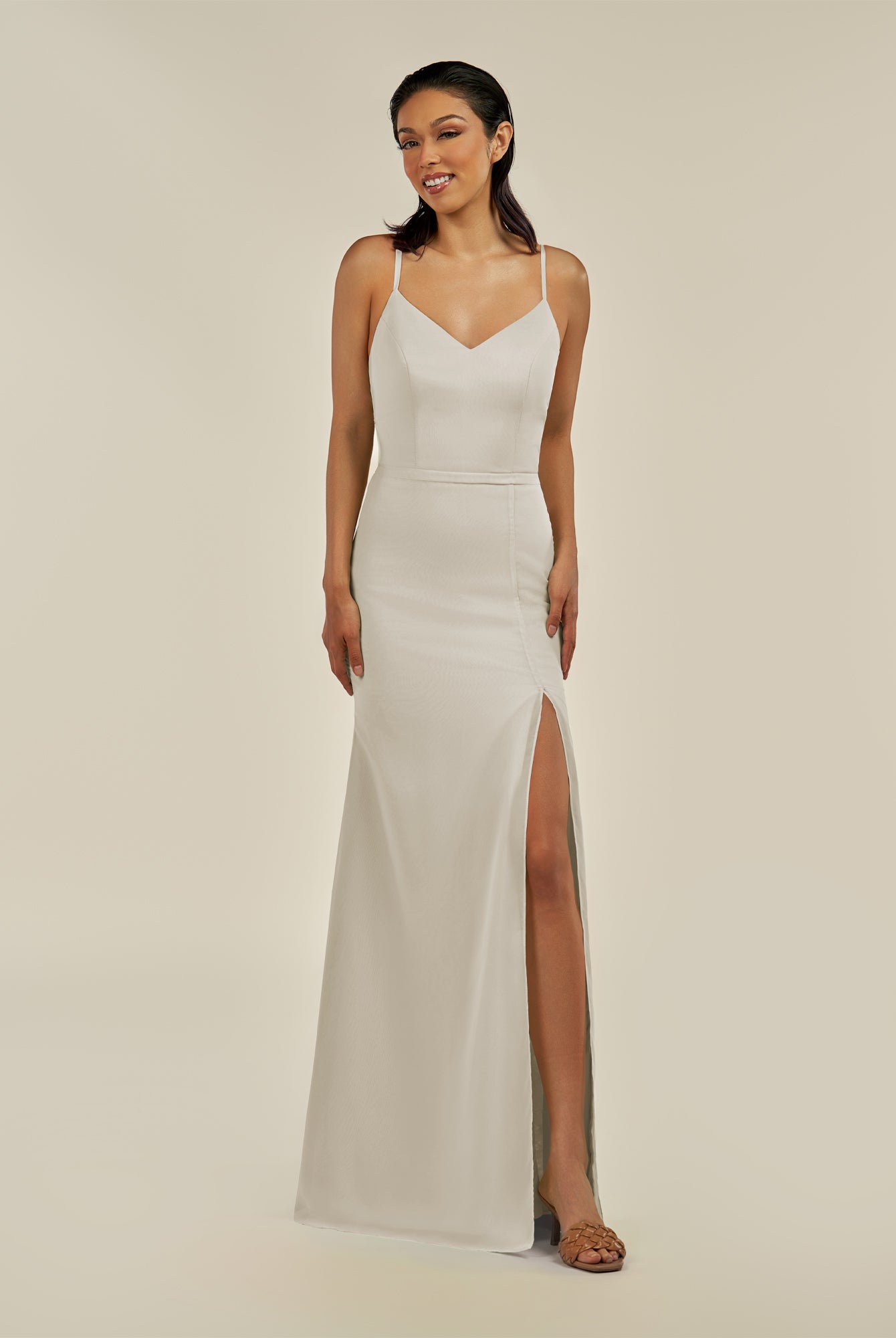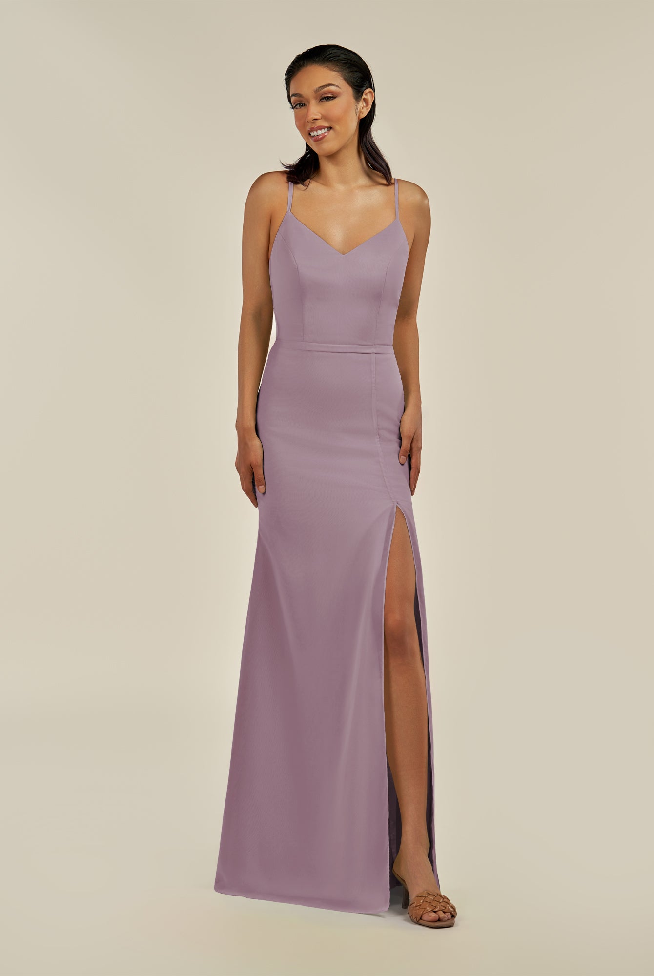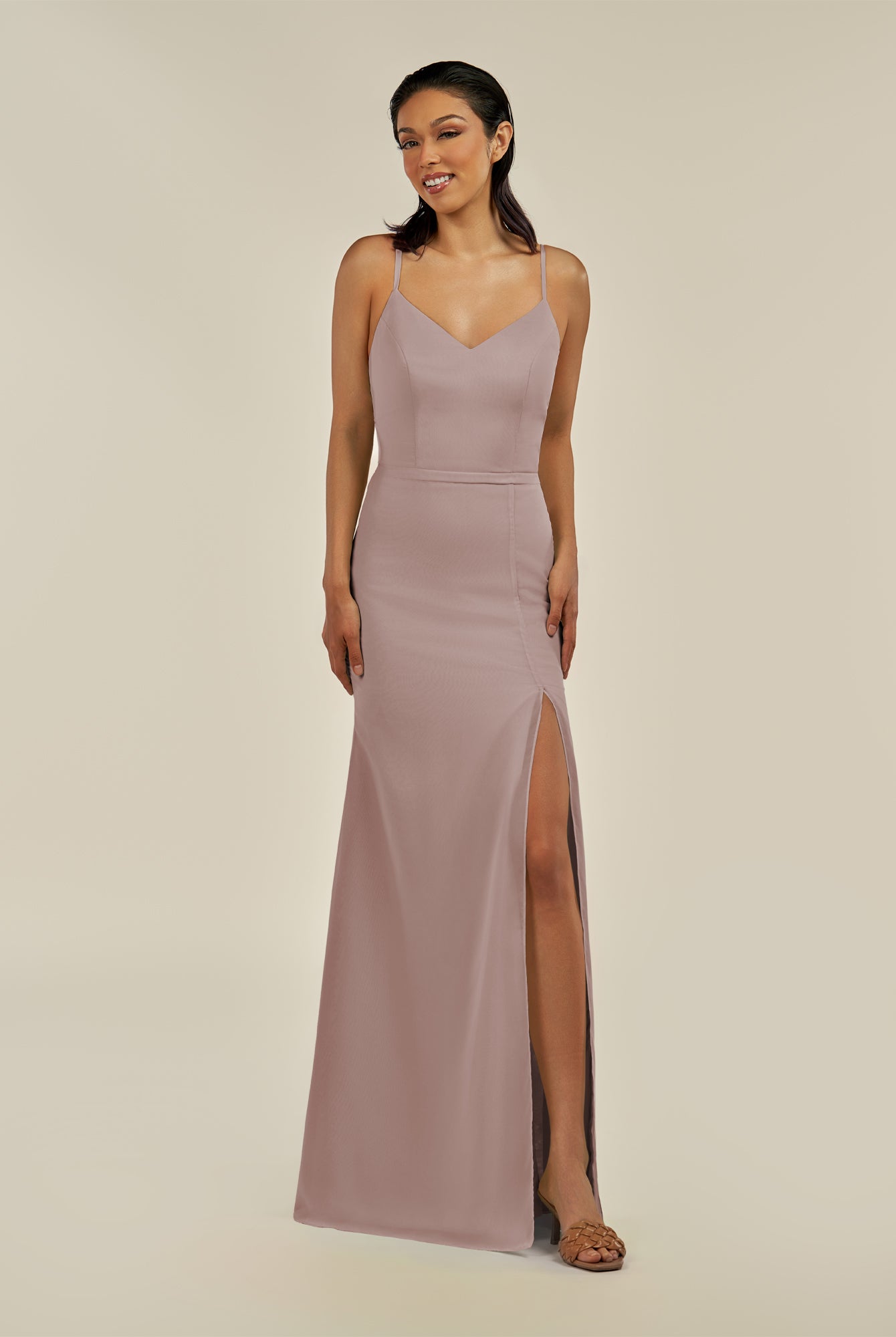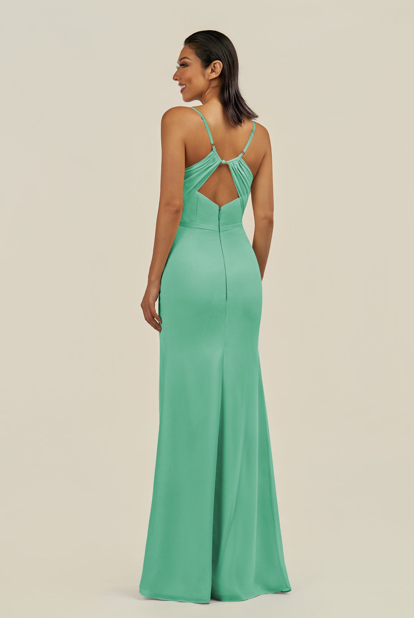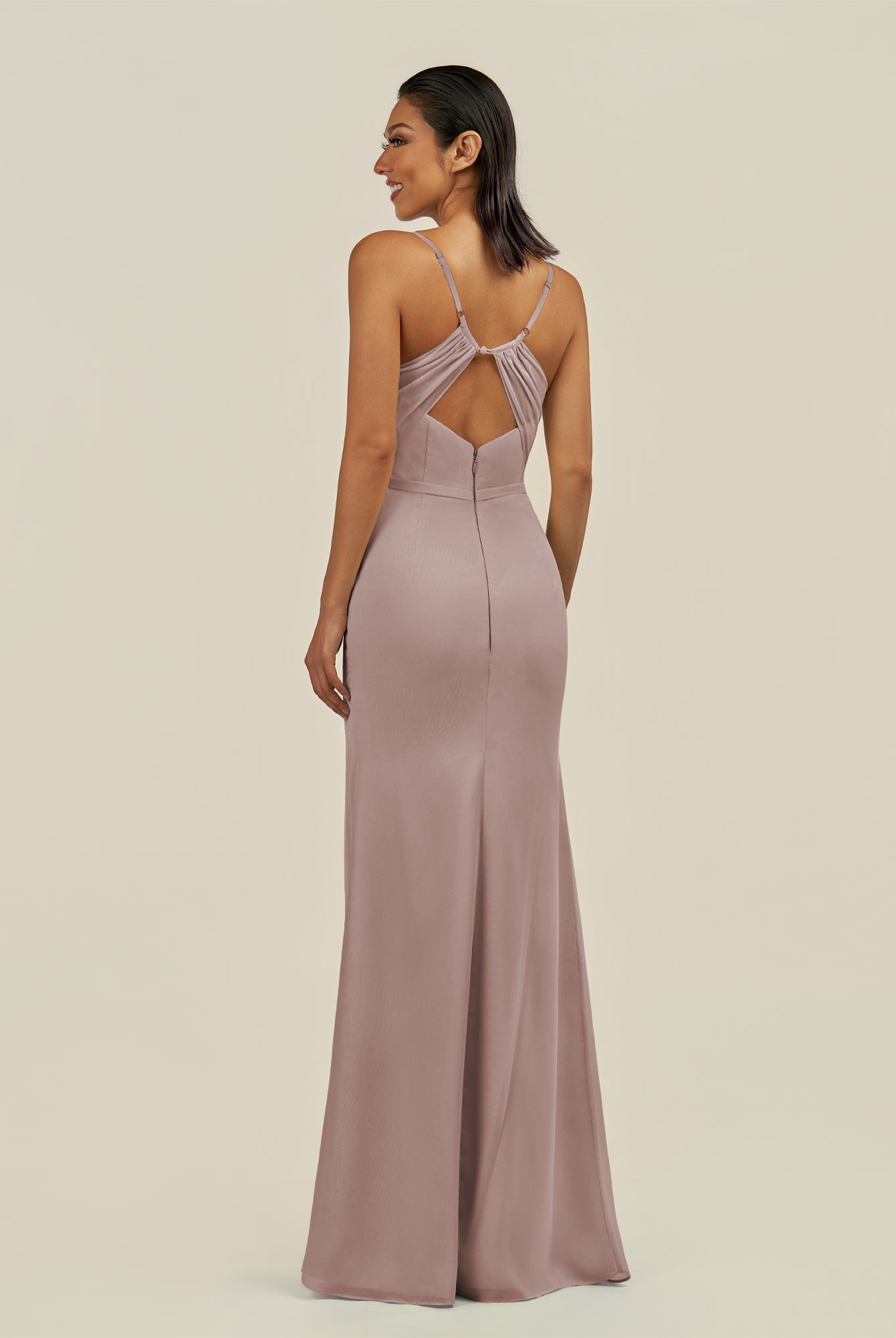 Kaelin | Frost - Sheath Chiffon V Neck Long Bridesmaid Dress with Slit
