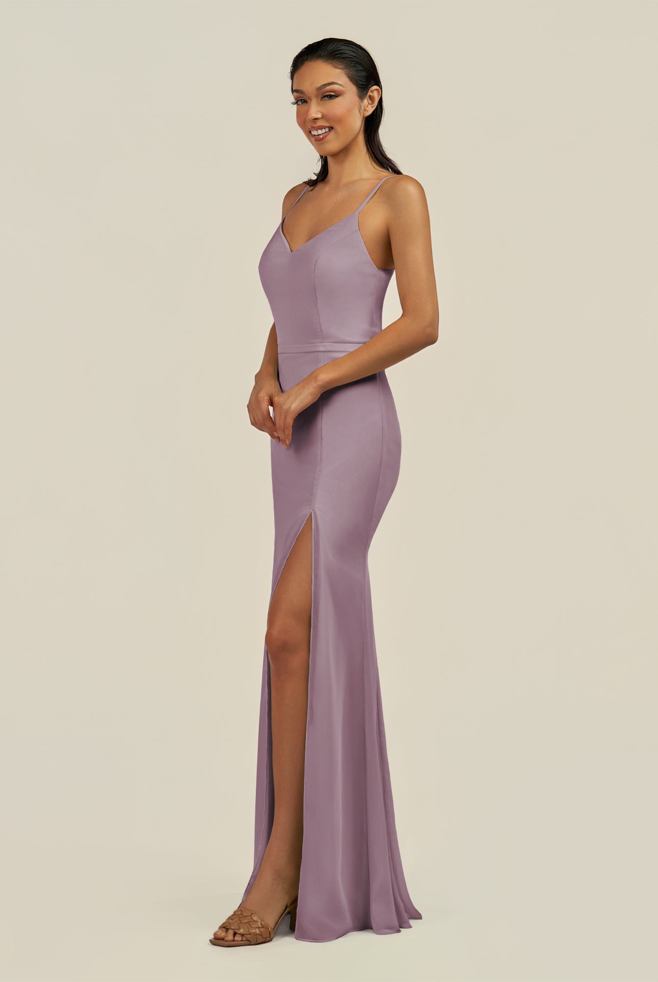 Kaelin | Dusk - Sheath Chiffon V Neck Long Bridesmaid Dress with Slit