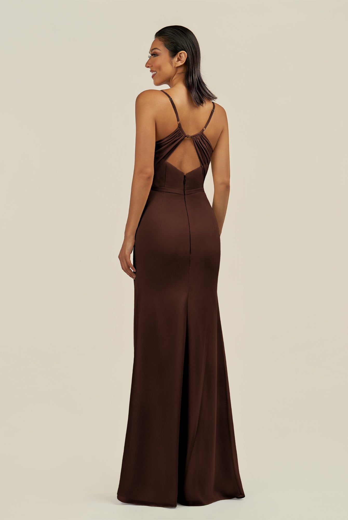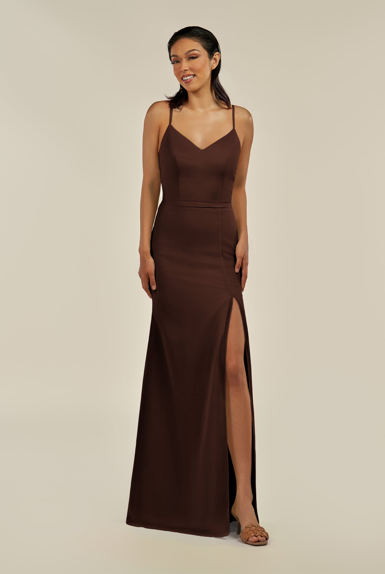 Kaelin | Espresso - Sheath Chiffon V Neck Long Bridesmaid Dress with Slit