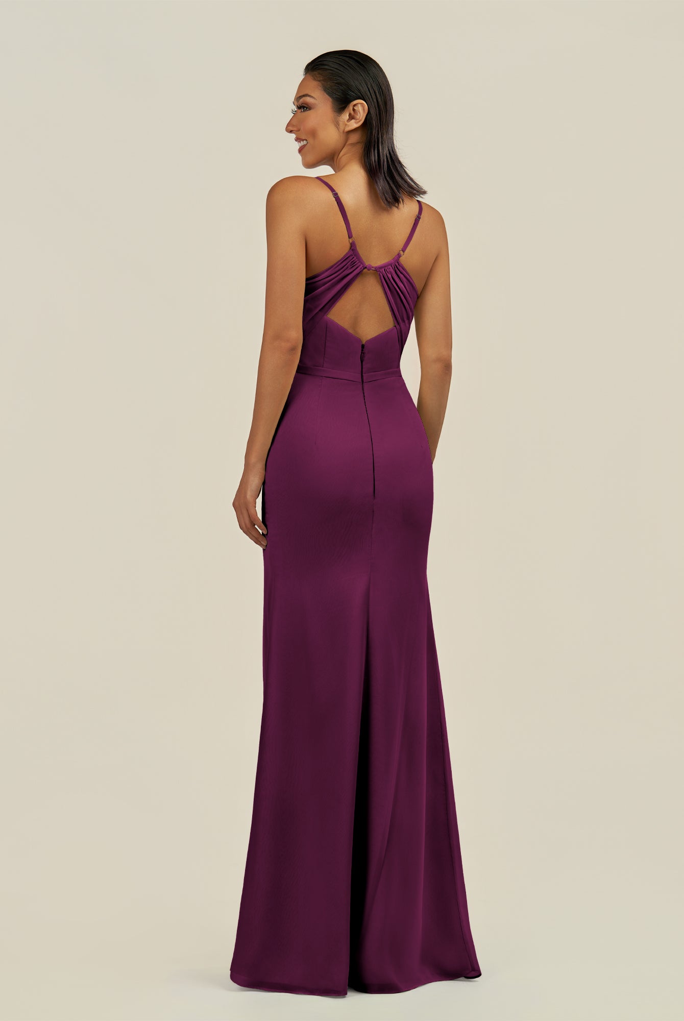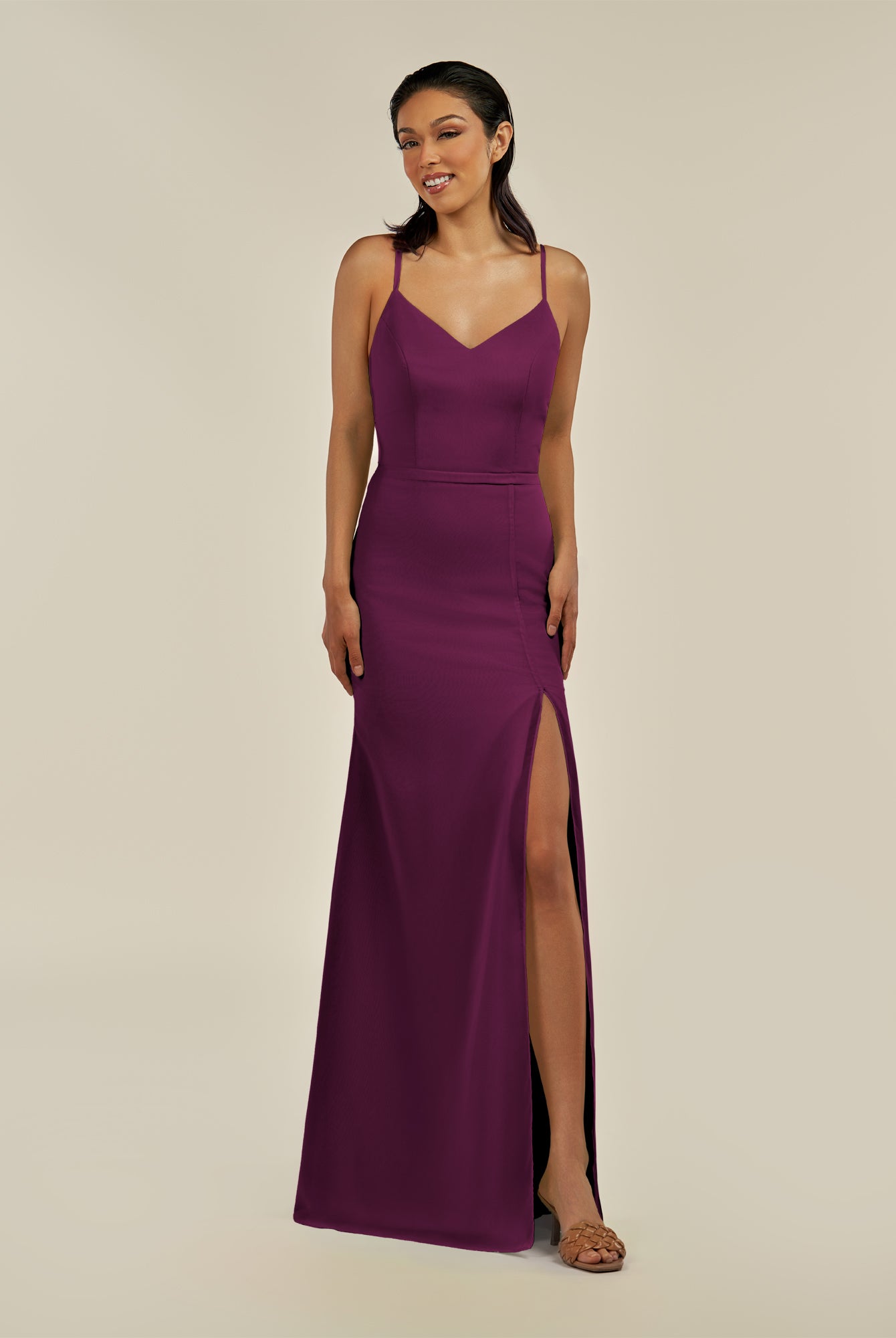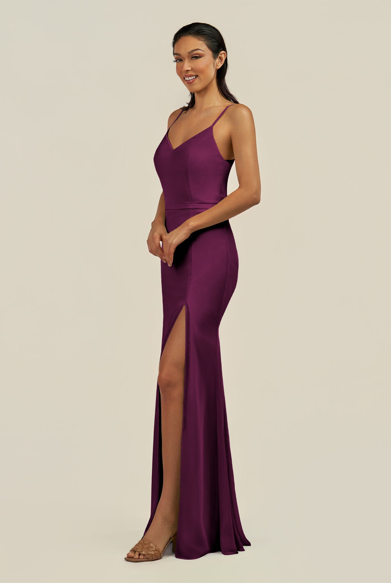 Kaelin | Fig - Sheath Chiffon V Neck Long Bridesmaid Dress with Slit