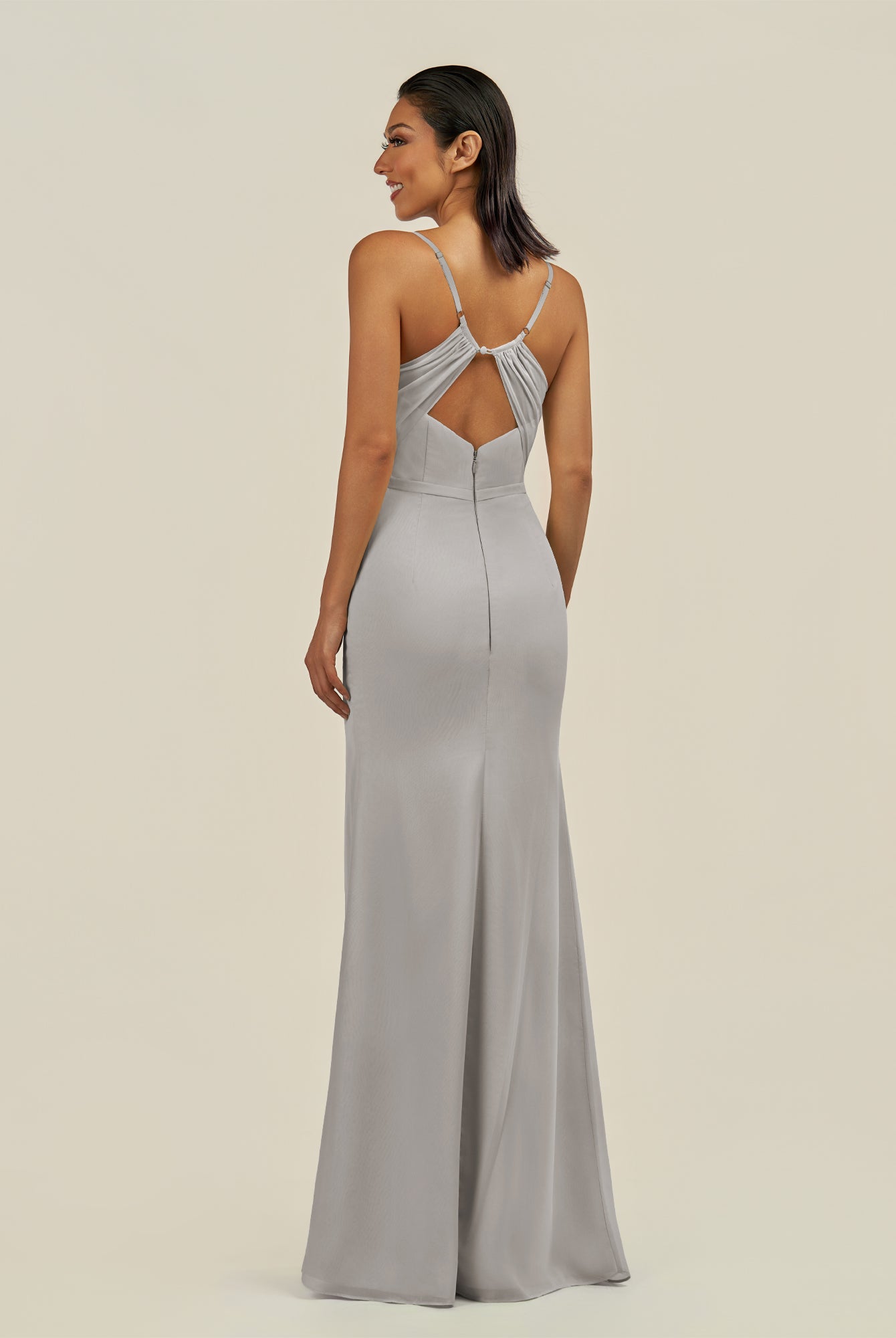 Kaelin | Silver - Sheath Chiffon V Neck Long Bridesmaid Dress with Slit