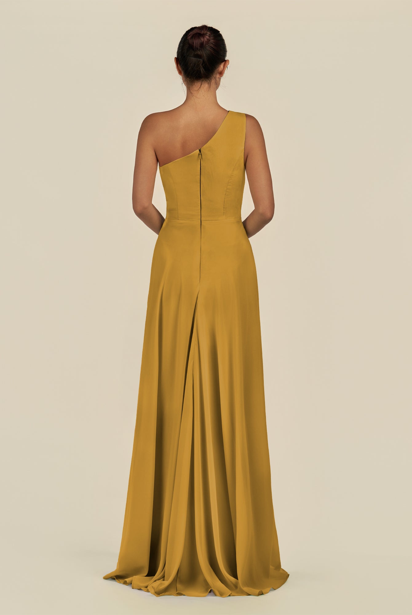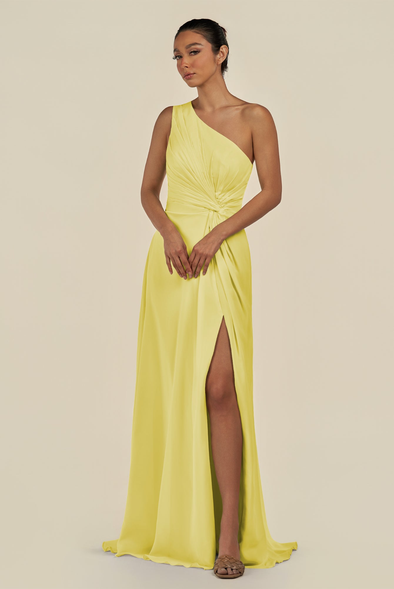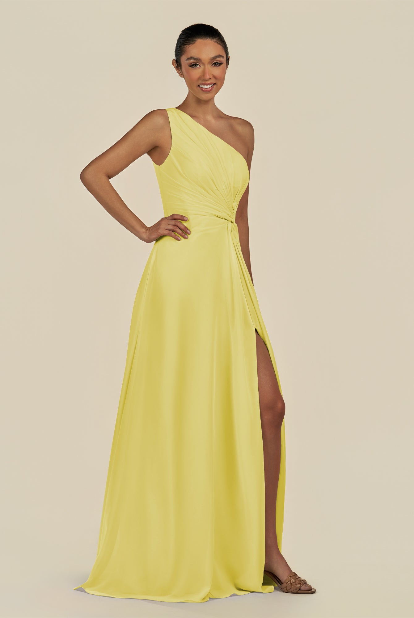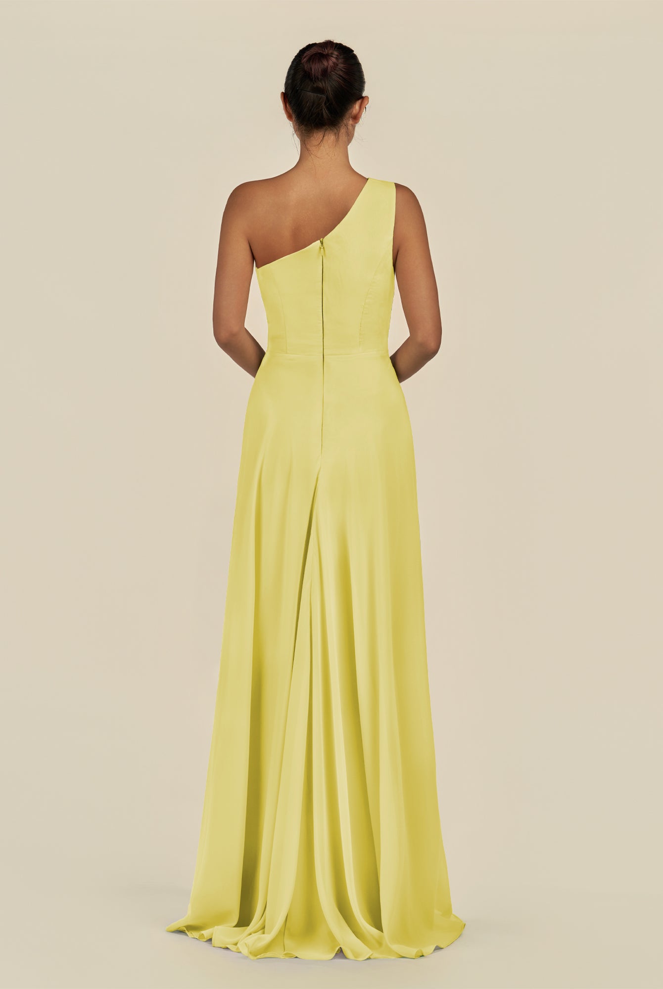 Gaela | Buttercup - A Line One Shoulder Chiffon Pleated Long Bridesmaid Dress with Slit