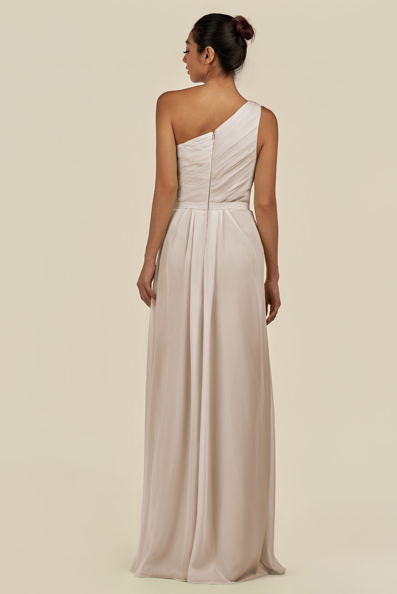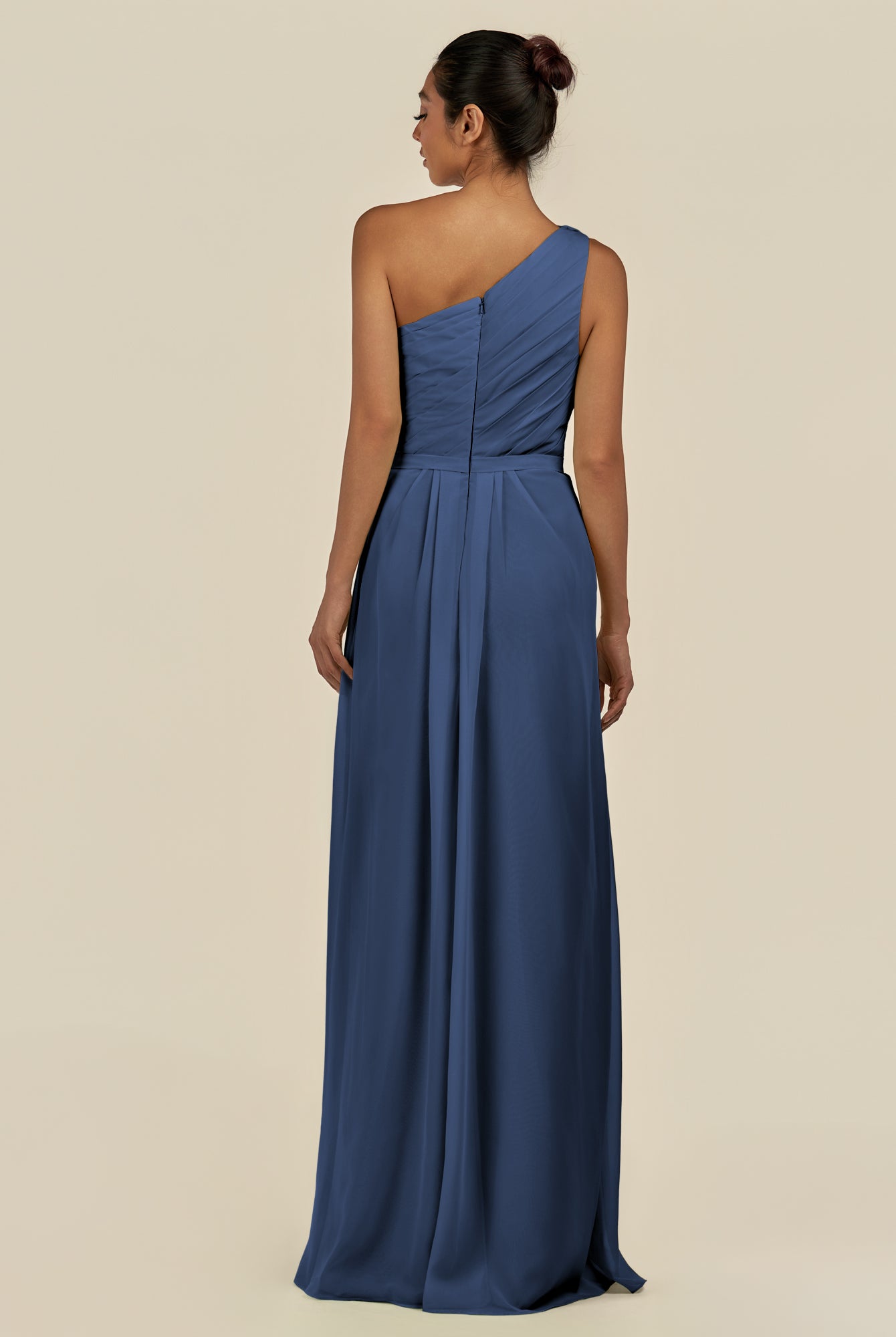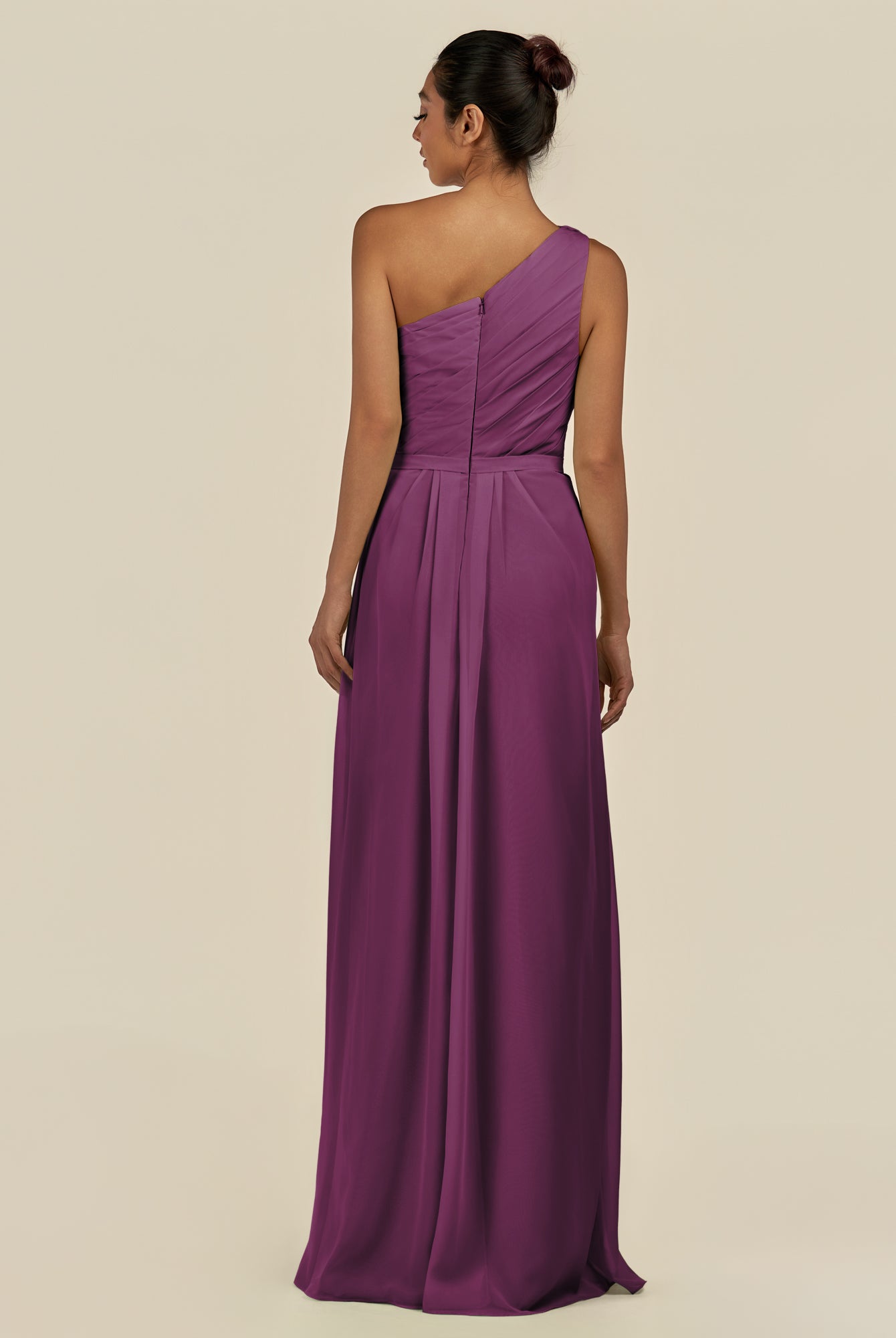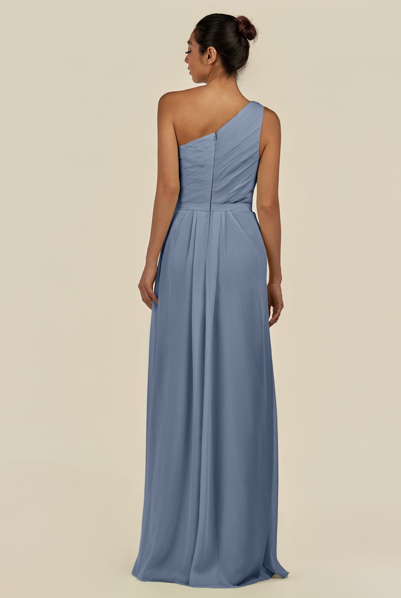 Assou | Fig - A Line One Shoulder Chiffon Pleated Ruffles Long Bridesmaid Dress with Slit