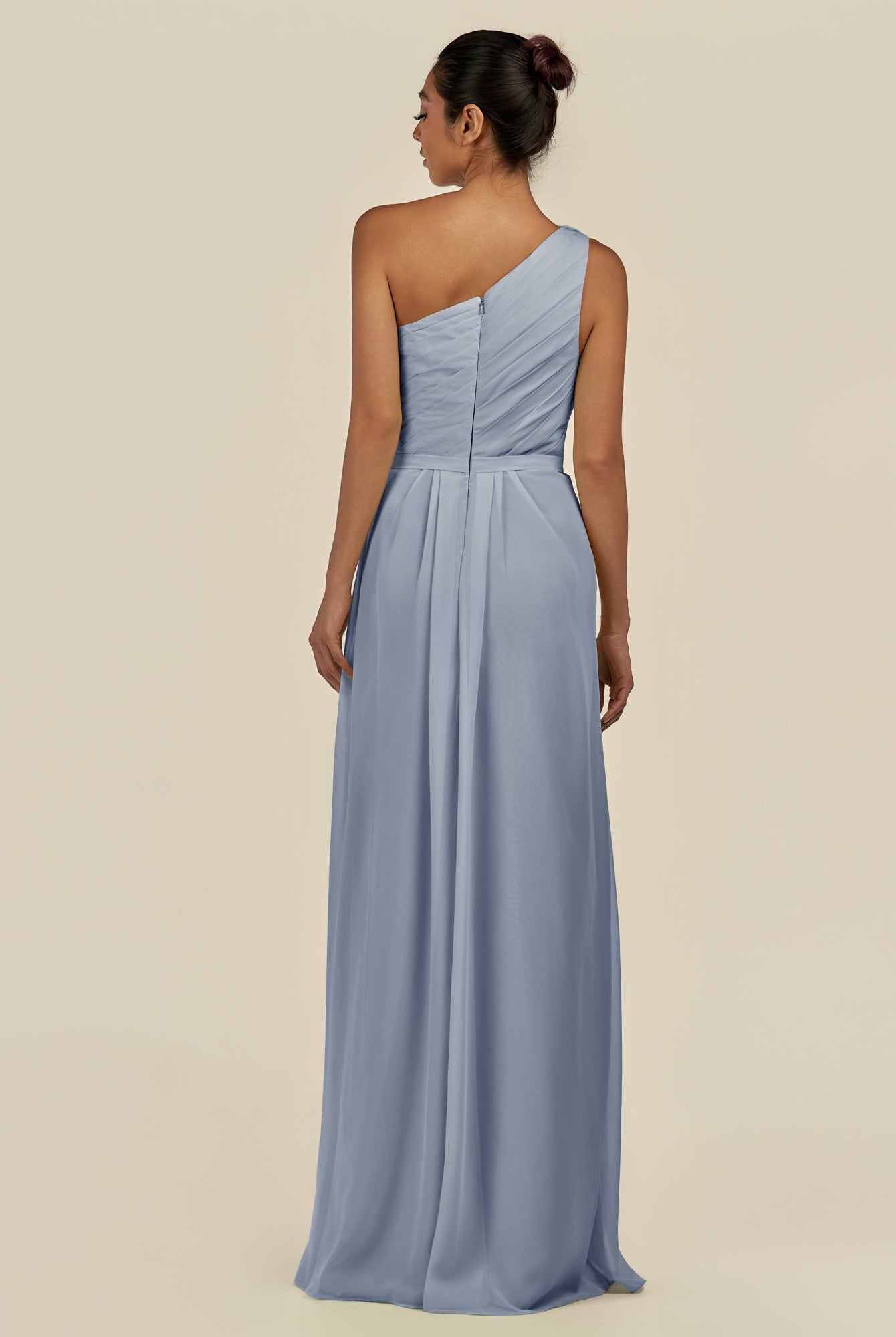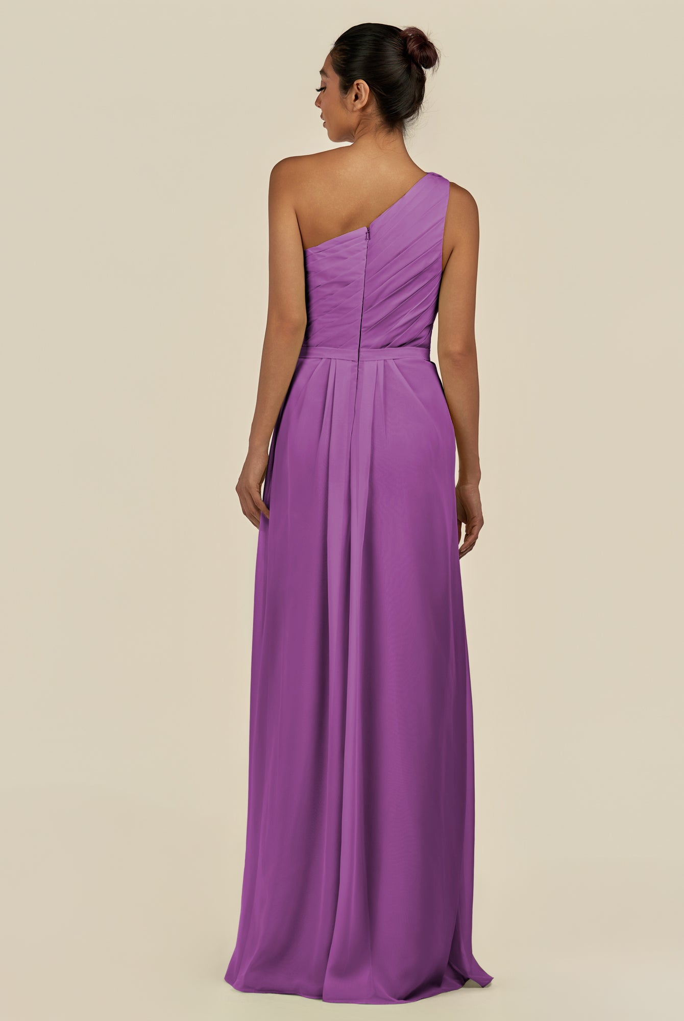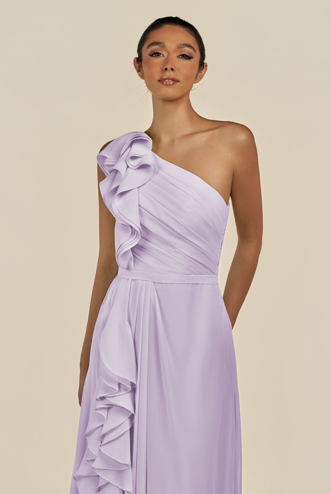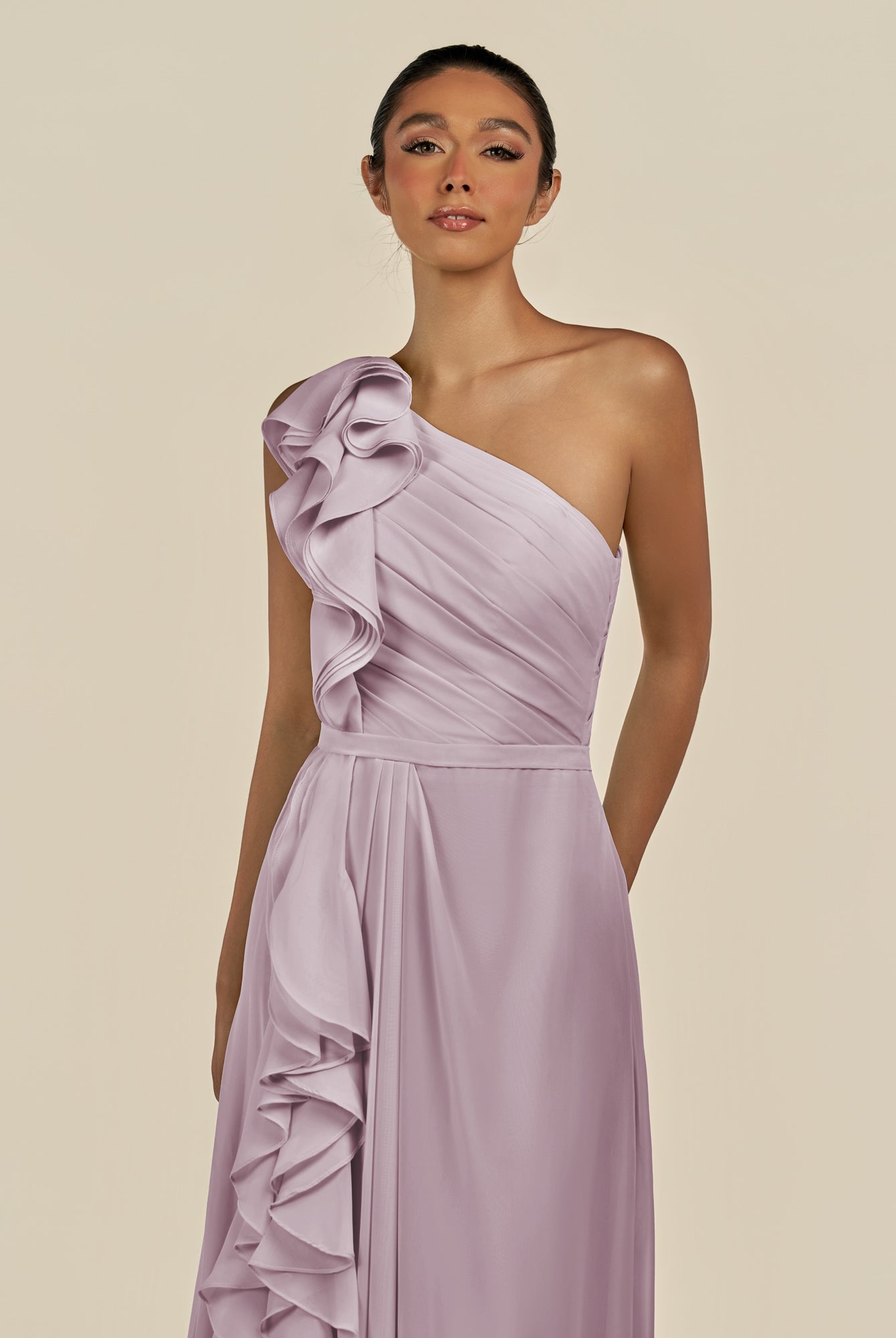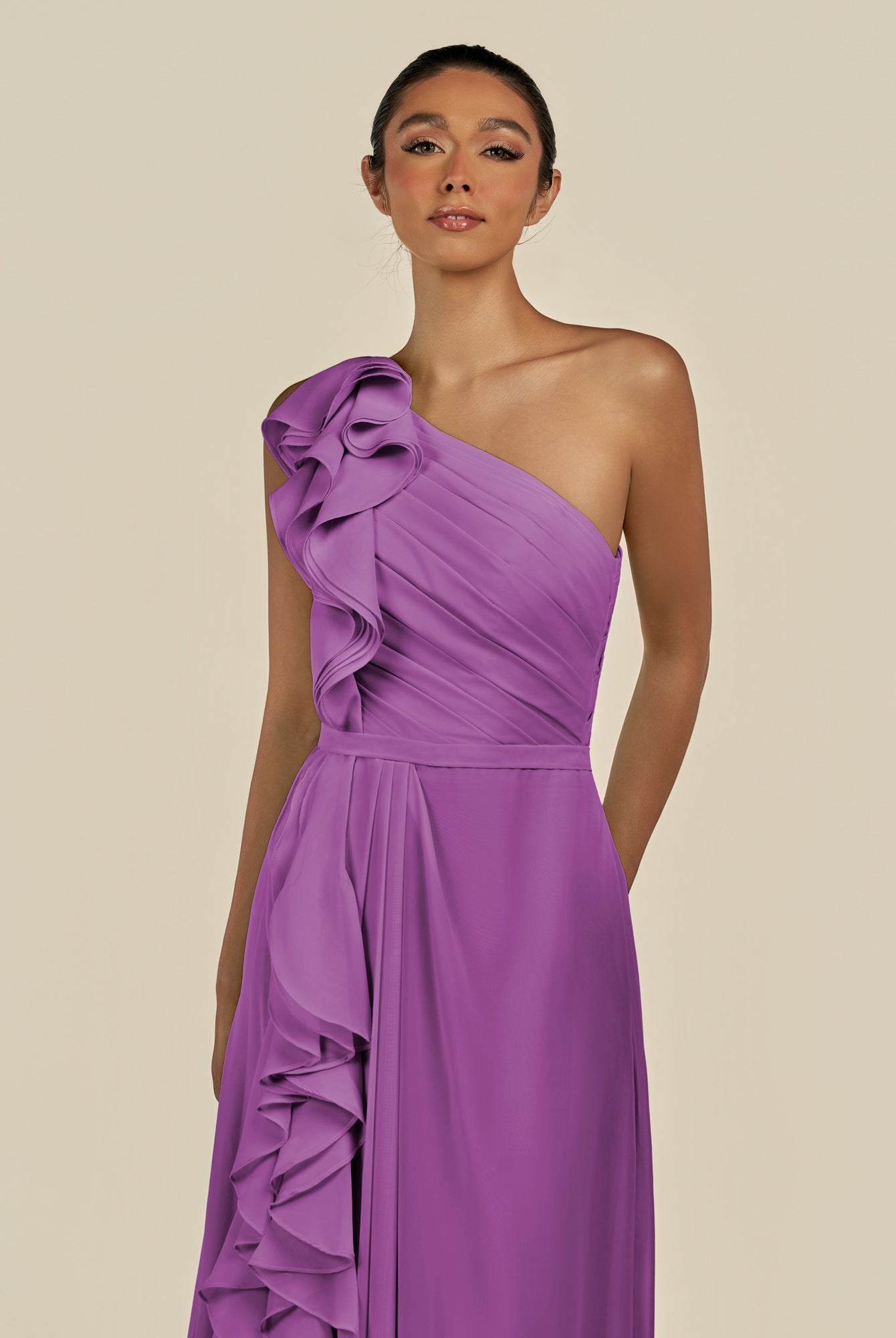 Assou | Wisteria - A Line One Shoulder Chiffon Pleated Ruffles Long Bridesmaid Dress with Slit