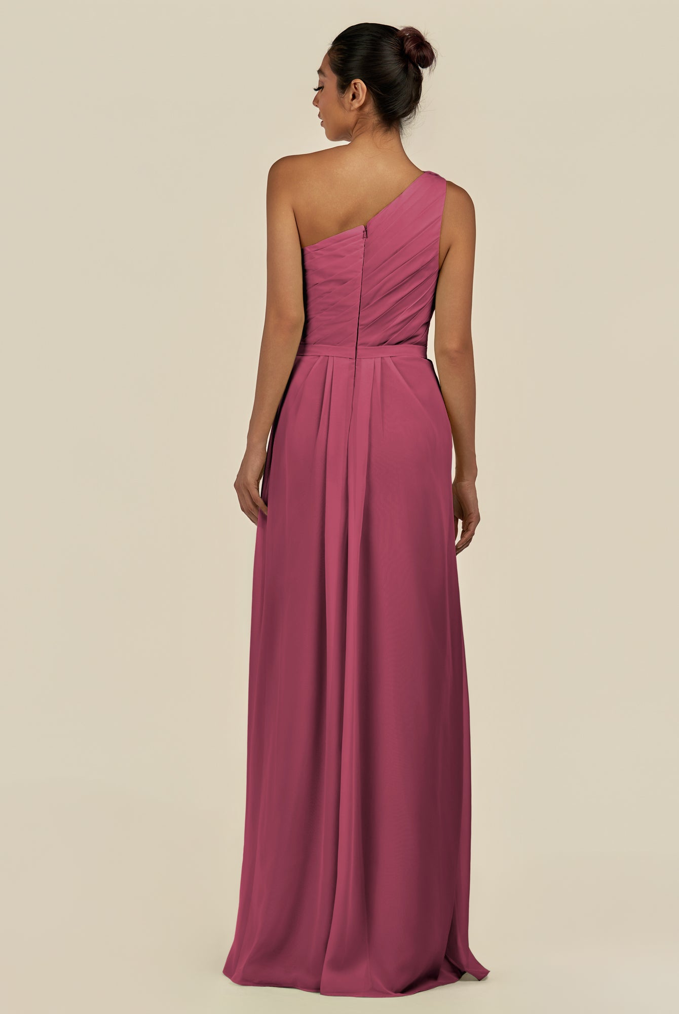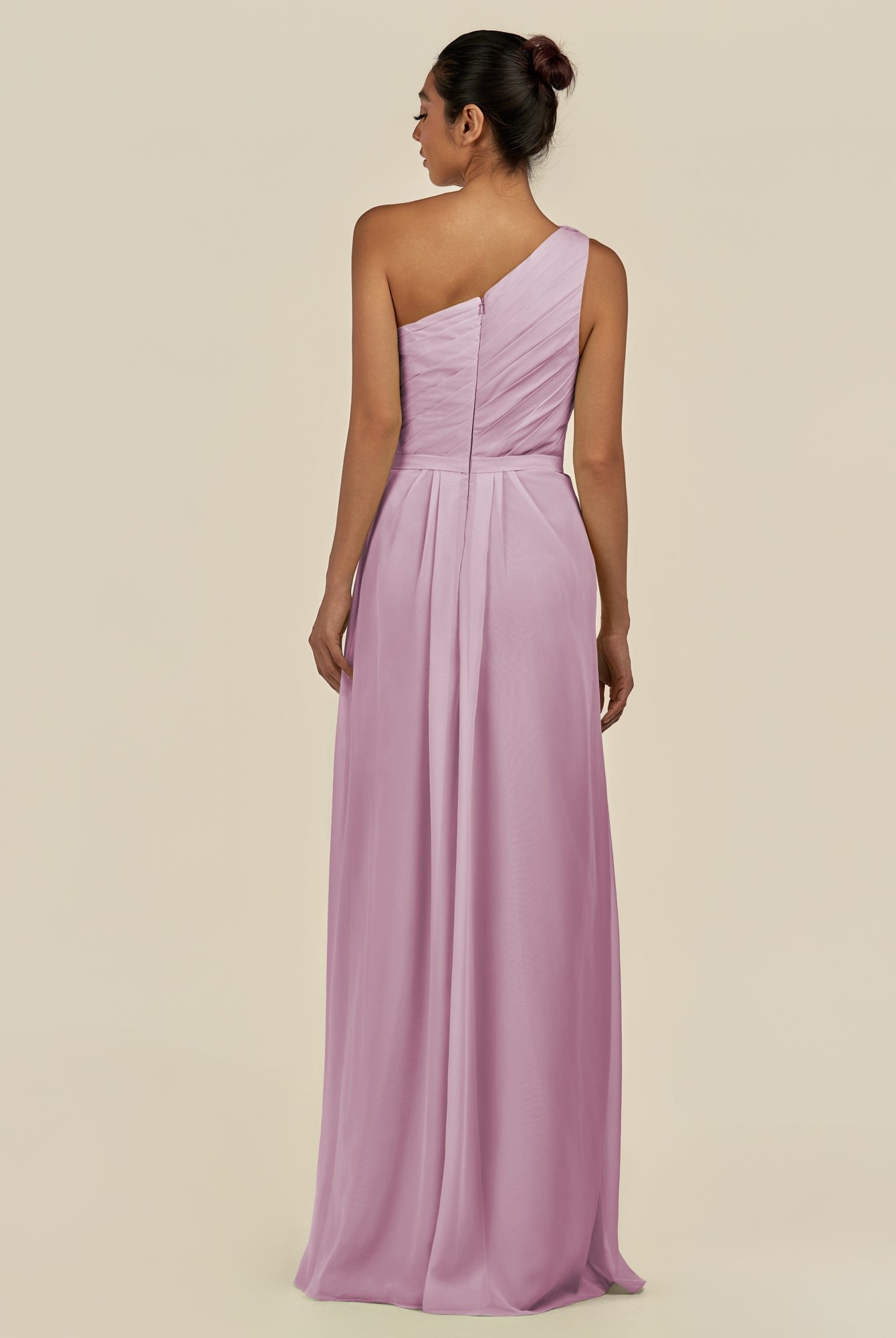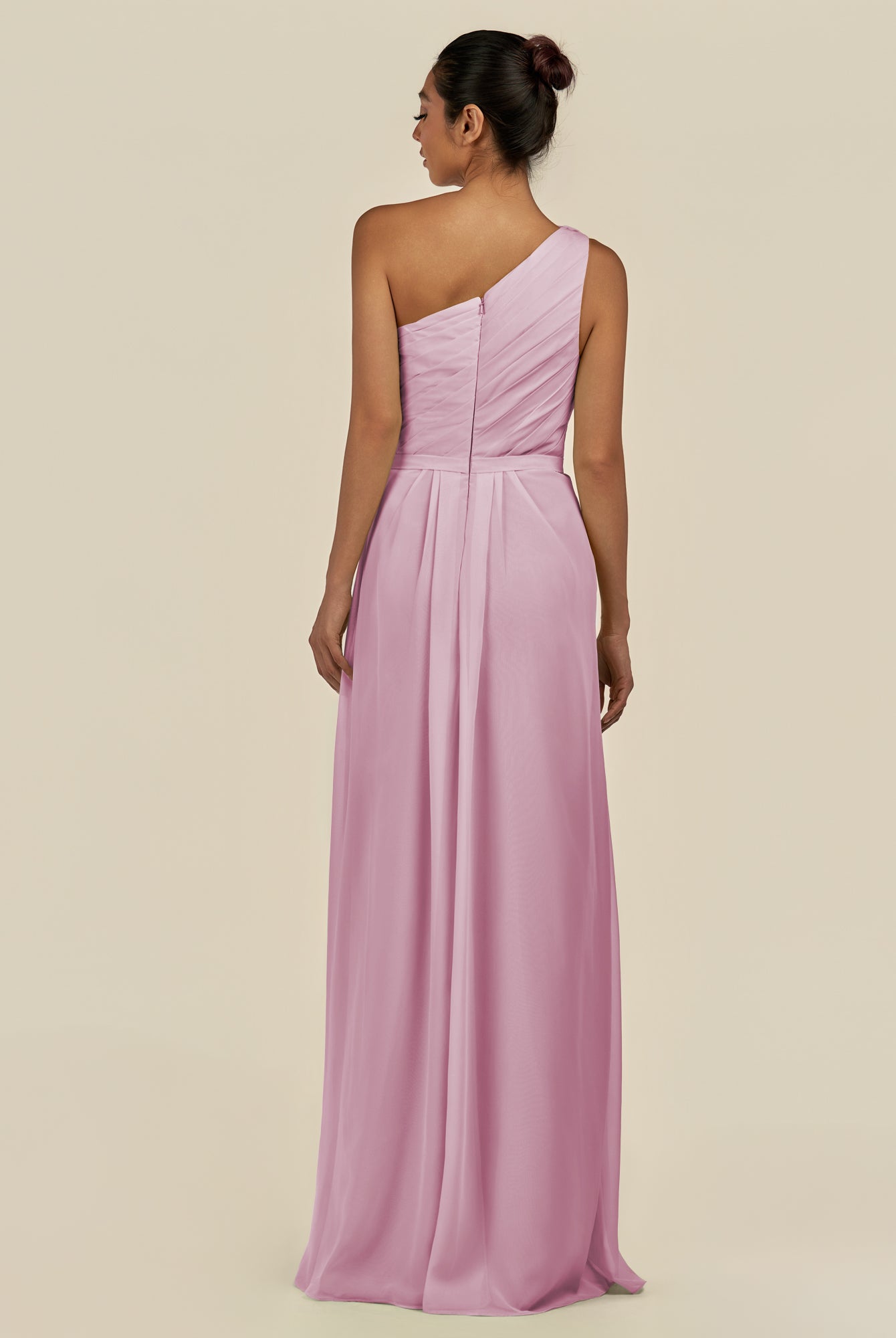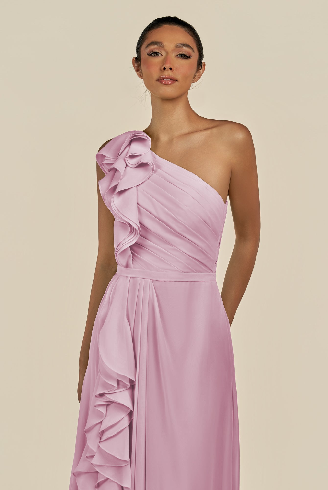 Assou | Desert Rose - A Line One Shoulder Chiffon Pleated Ruffles Long Bridesmaid Dress with Slit