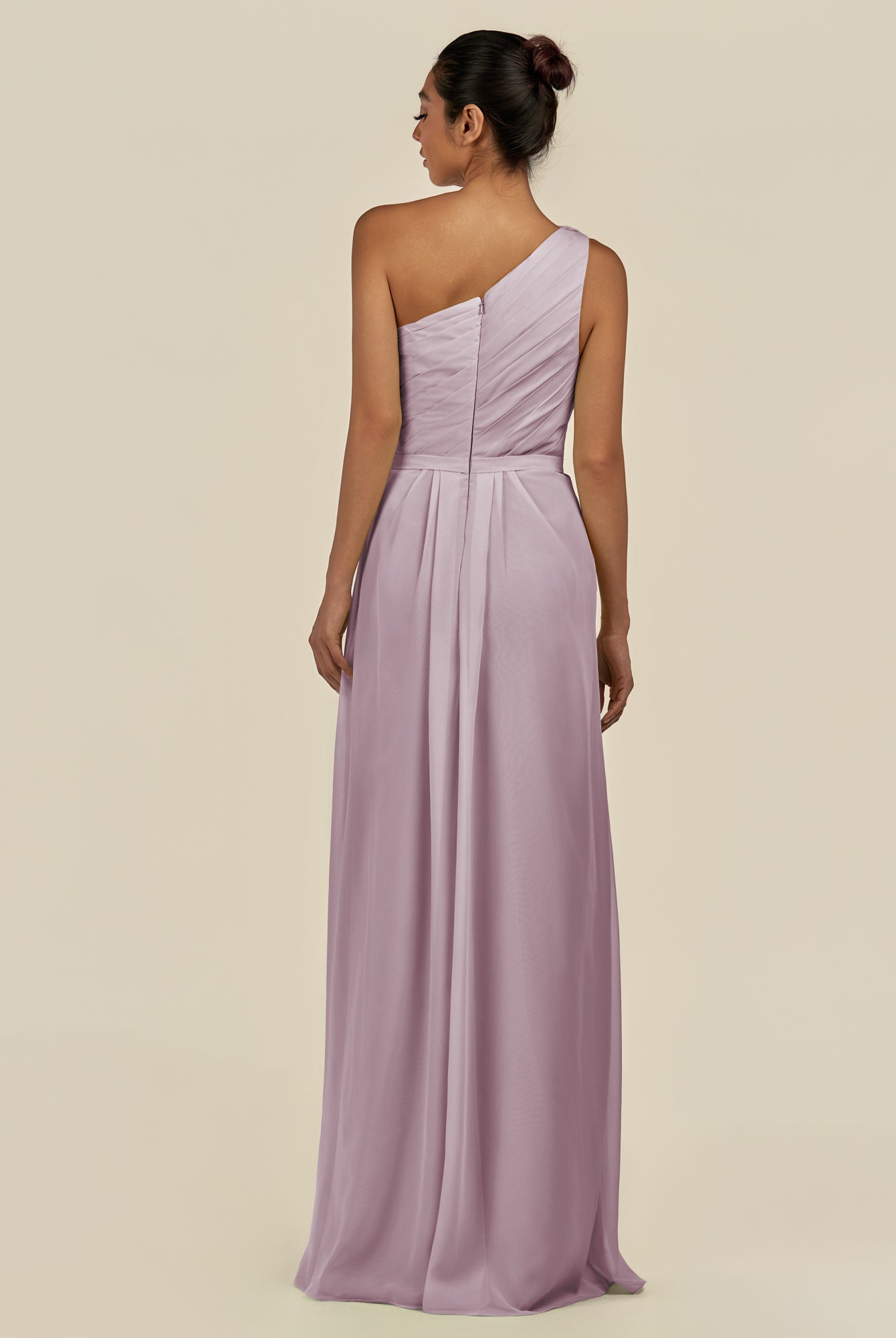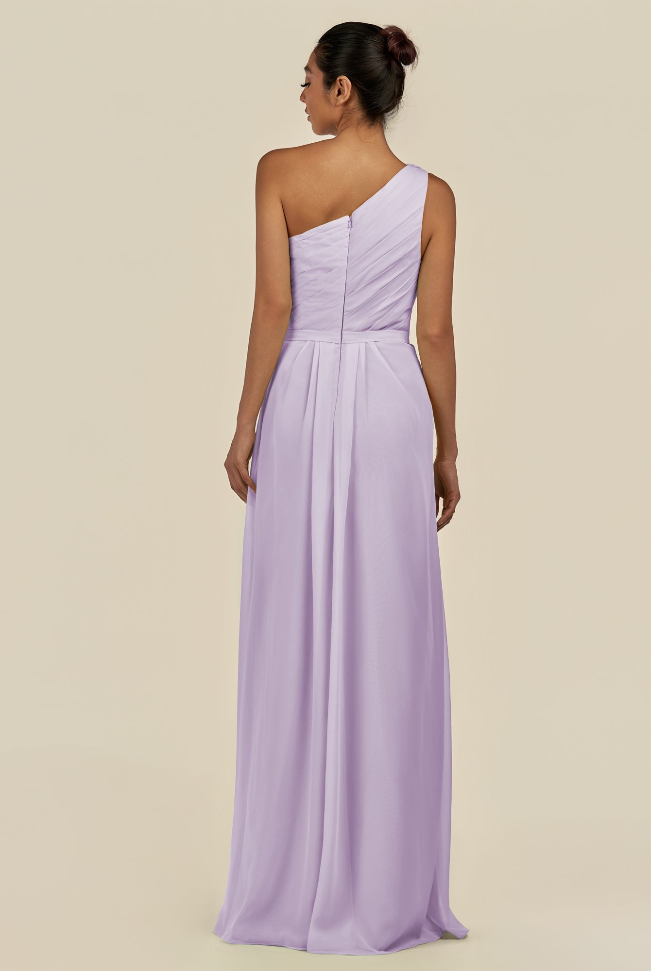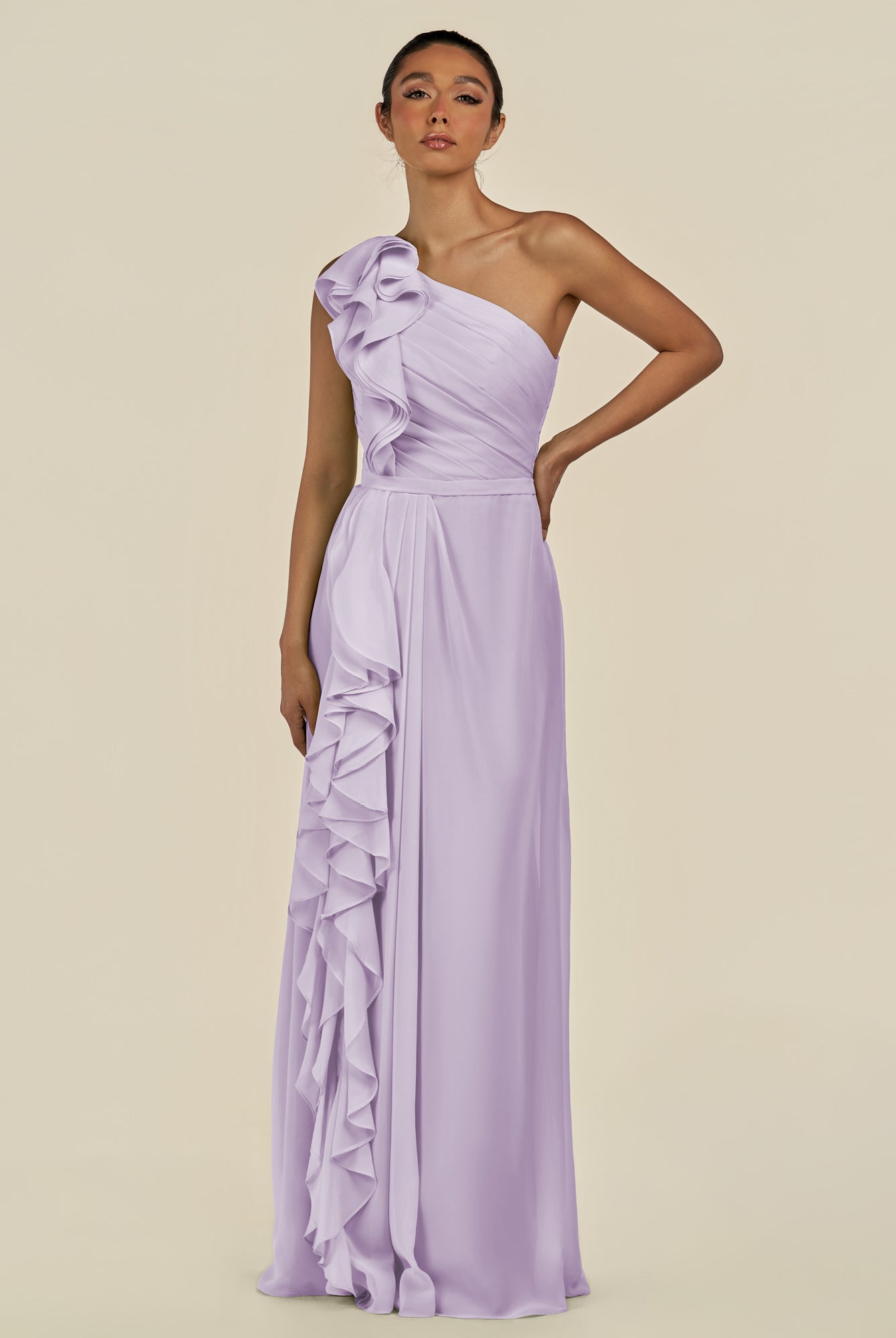 Assou | Lavender - A Line One Shoulder Chiffon Pleated Ruffles Long Bridesmaid Dress with Slit