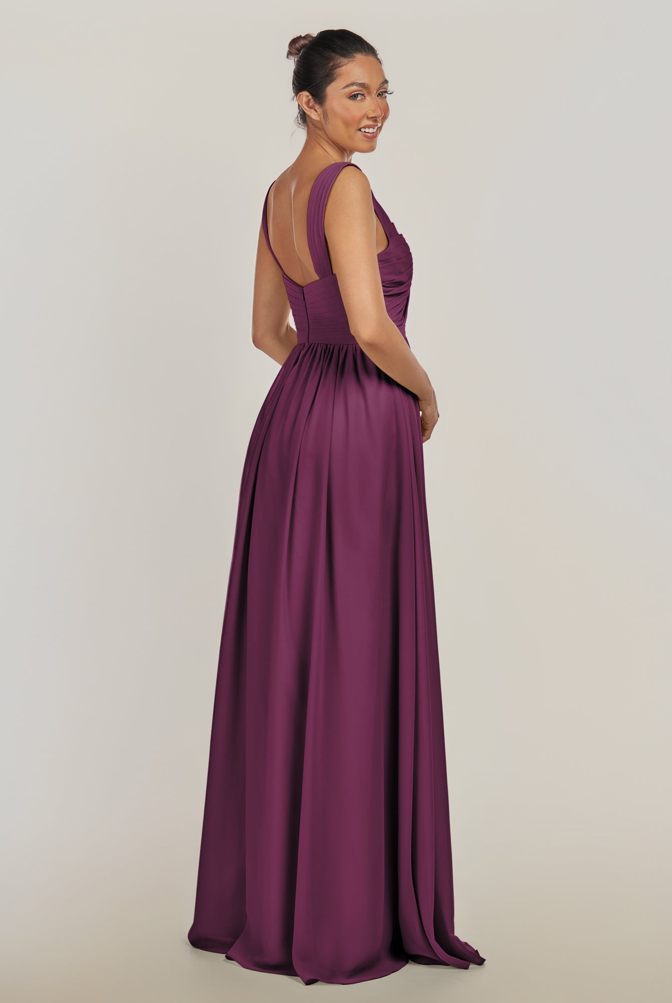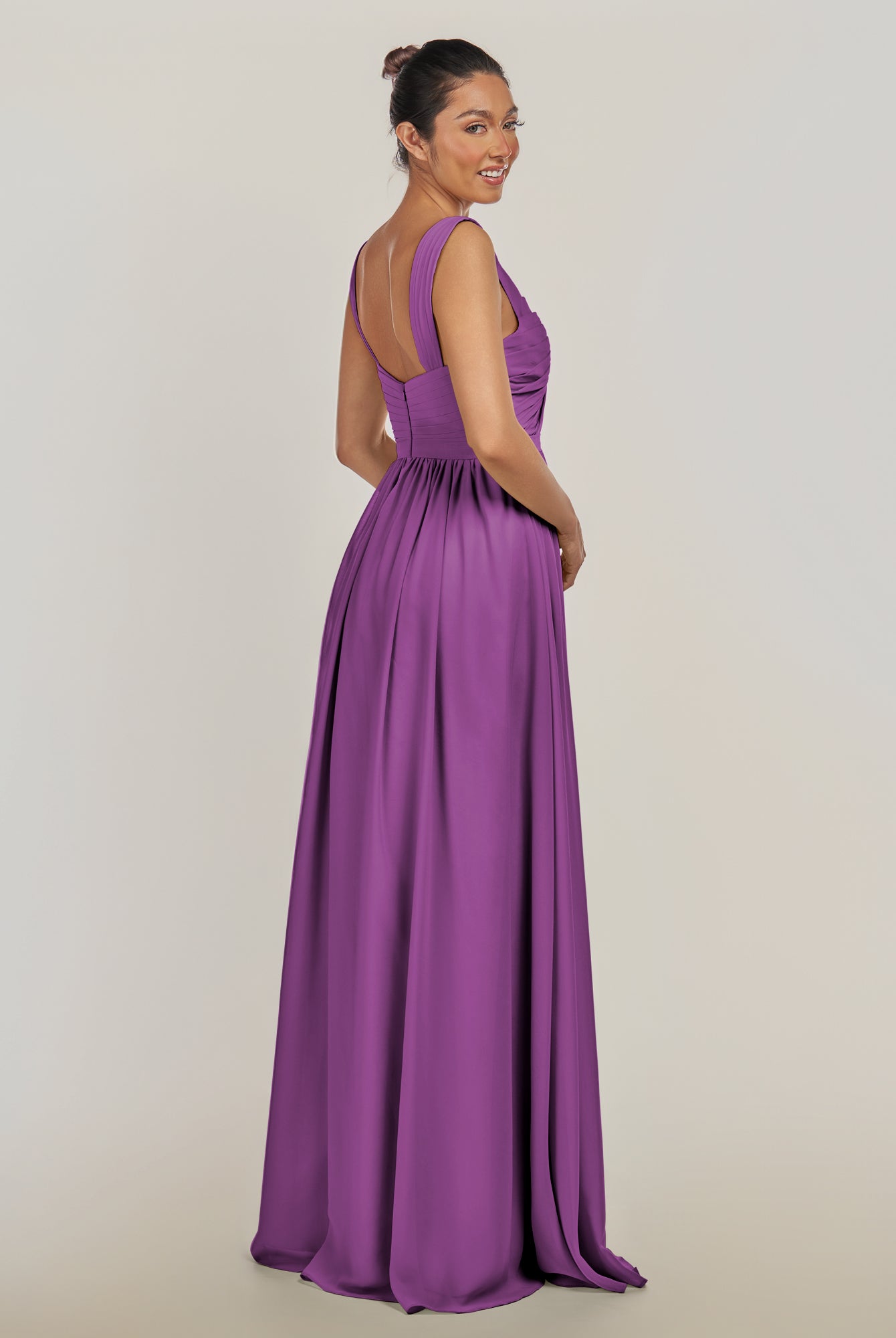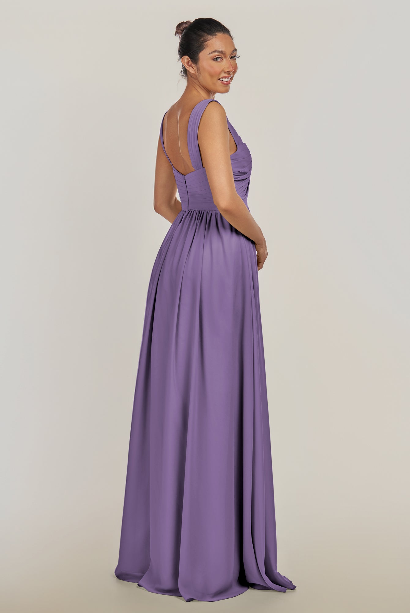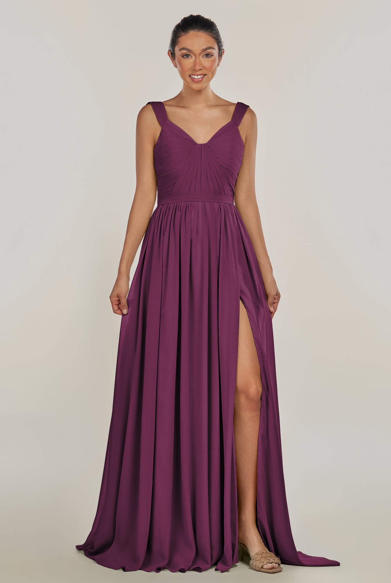 Fira | Amethyst - A Line Chiffon V Neck Pleated Long Bridesmaid Dress with Slit